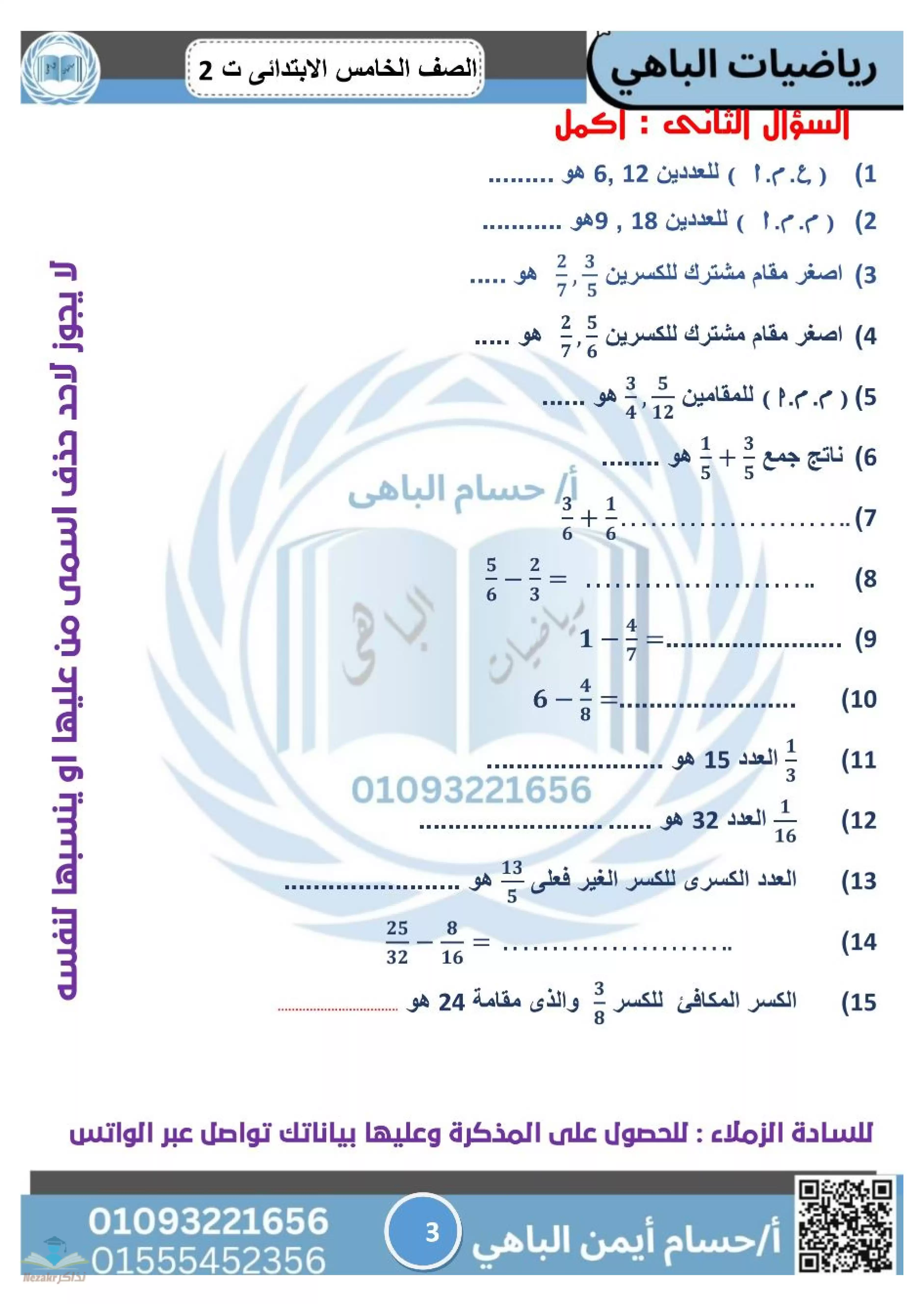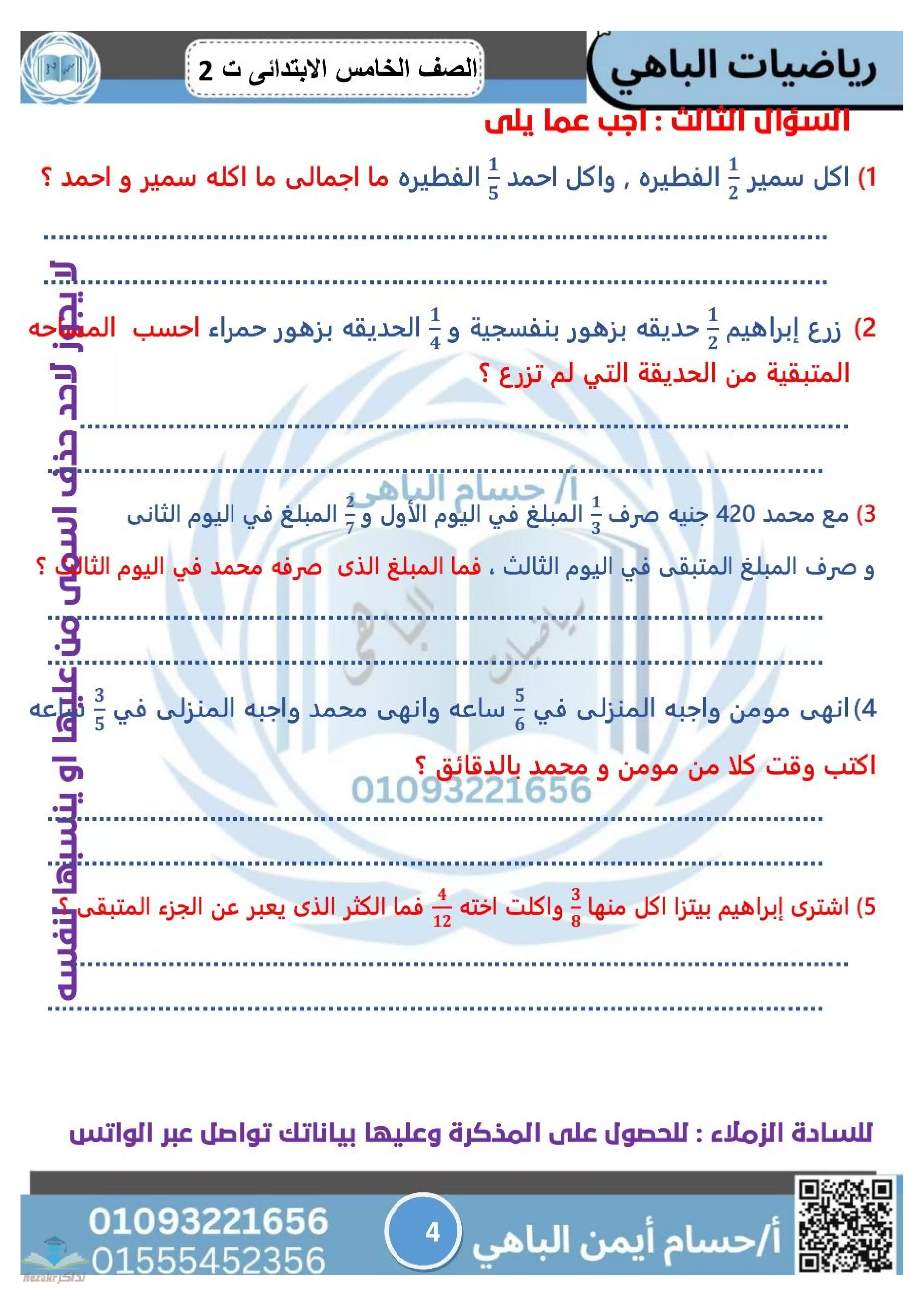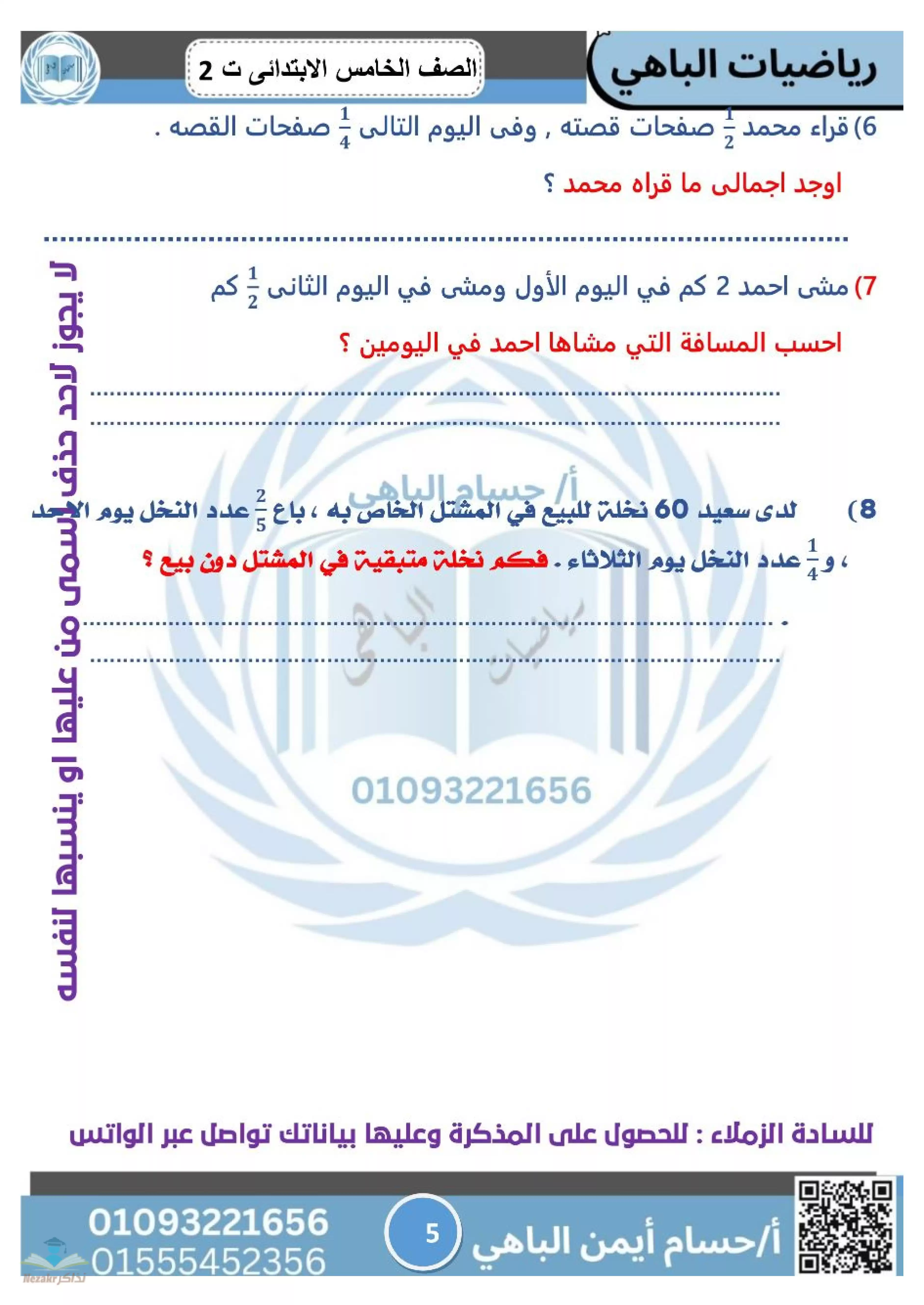 • مراجعة الباهي النهائية في الرياضيات الصف الخامس الابتدائي ترم ثاني