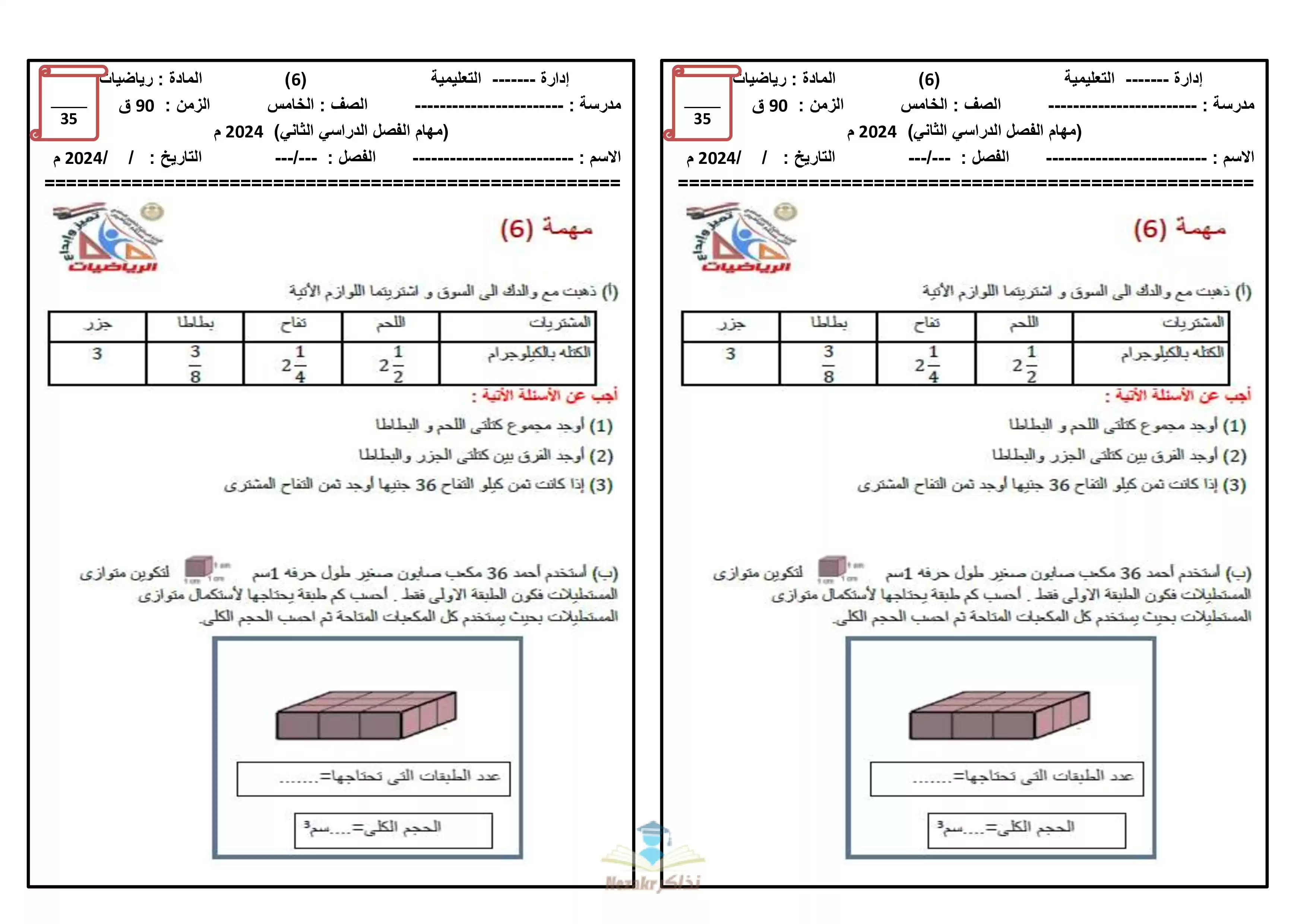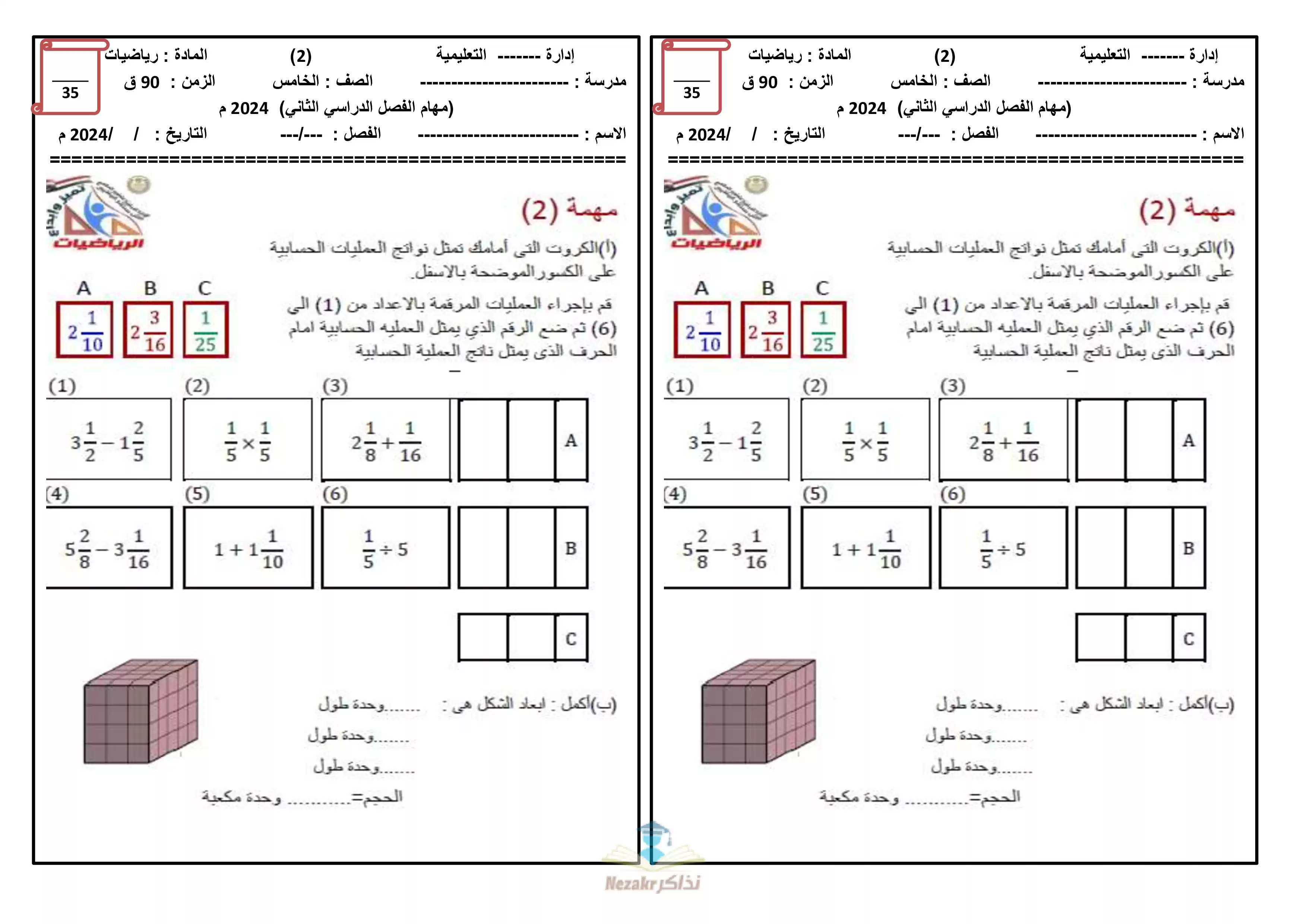 | بيانات الملف: (المهام الآدائية الرسمية في الرياضيات من وزارة التربية والتعليم للصف الخامس الابتدائي الترم الثاني - Nezakr) | |