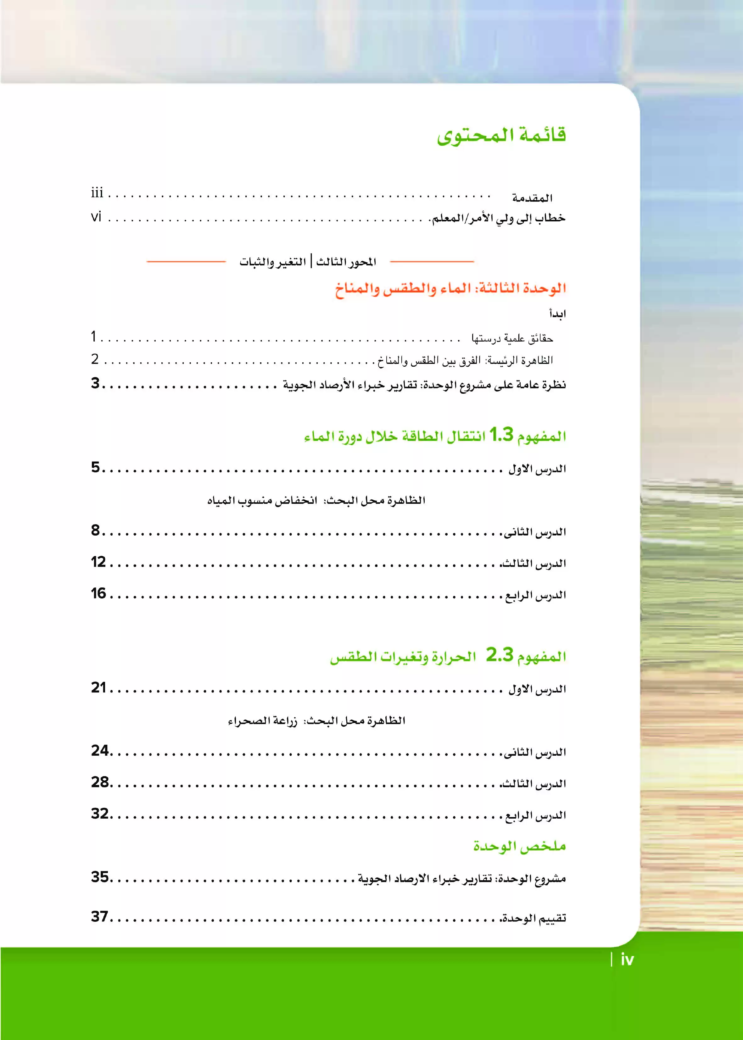 1- الوحدة الثالثة «المياه والطقس والمناخ» وتضم: