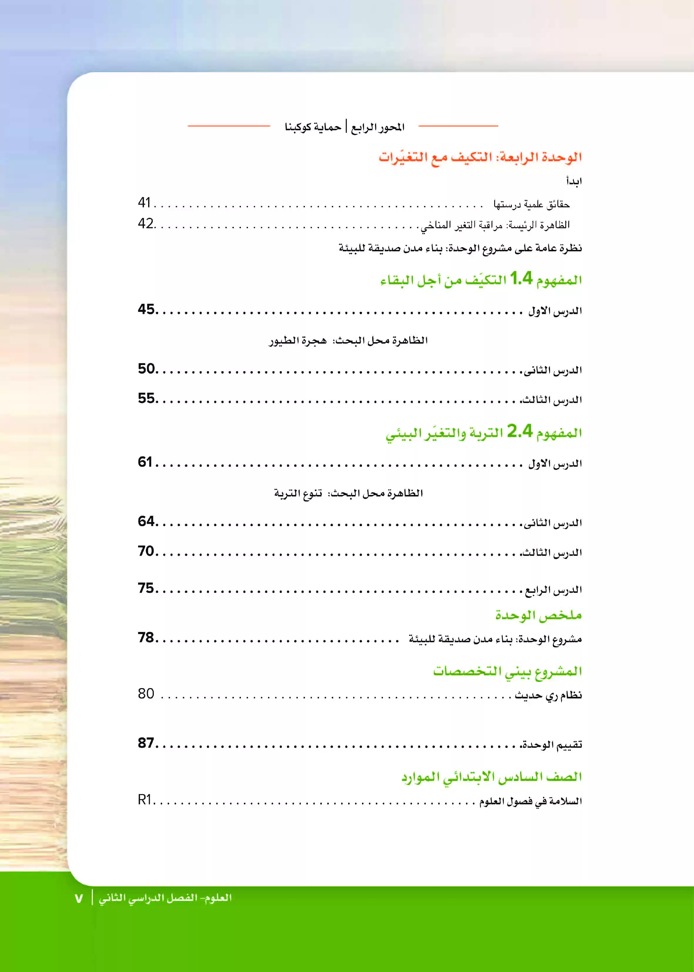 وعن محتوى منهج العلوم للصف السادس الابتدائي للفصل الدراسي الثاني فقد تم تضمين الموضوعات التالية ضمن المنهج الجديد لمادة العلوم لساتة ابتدائي وهي: