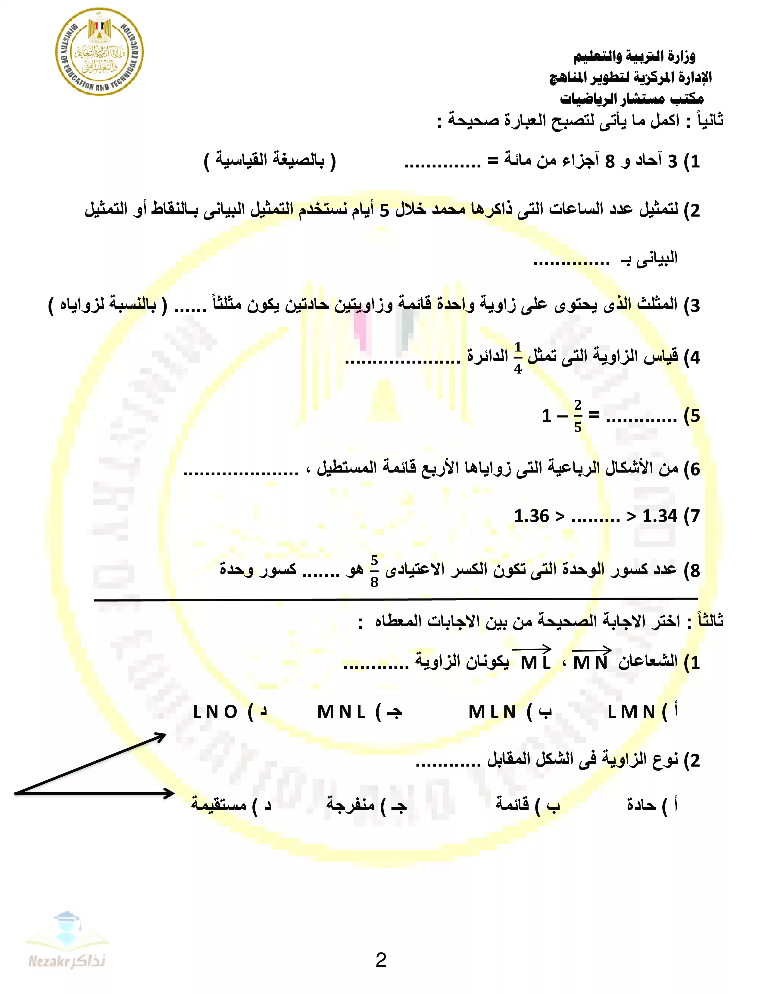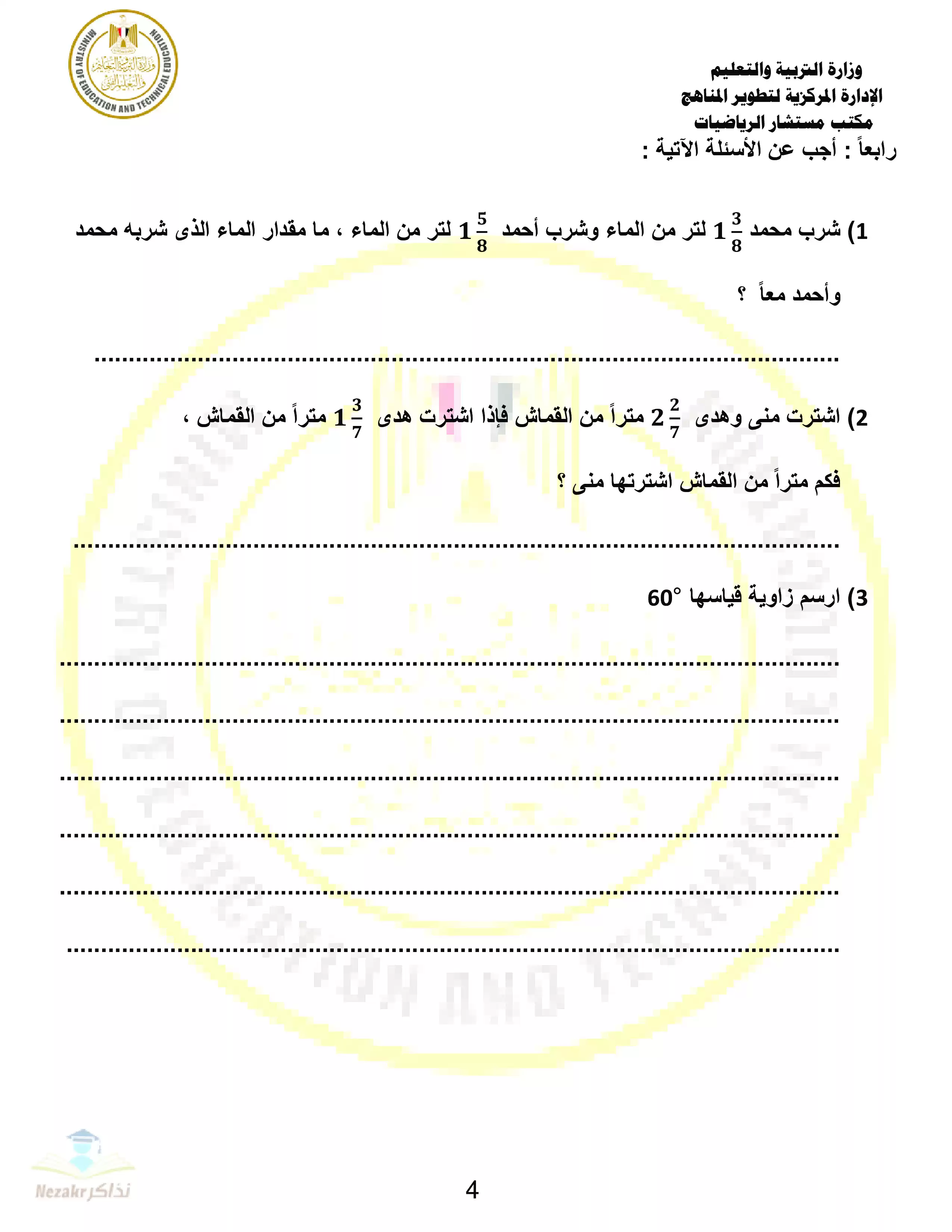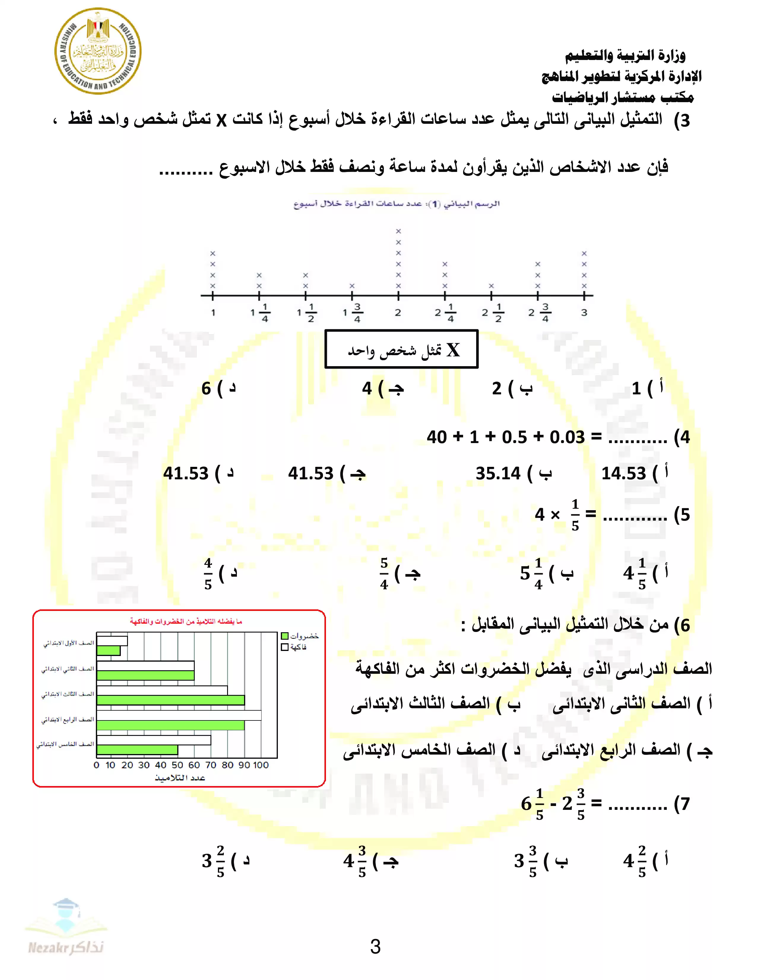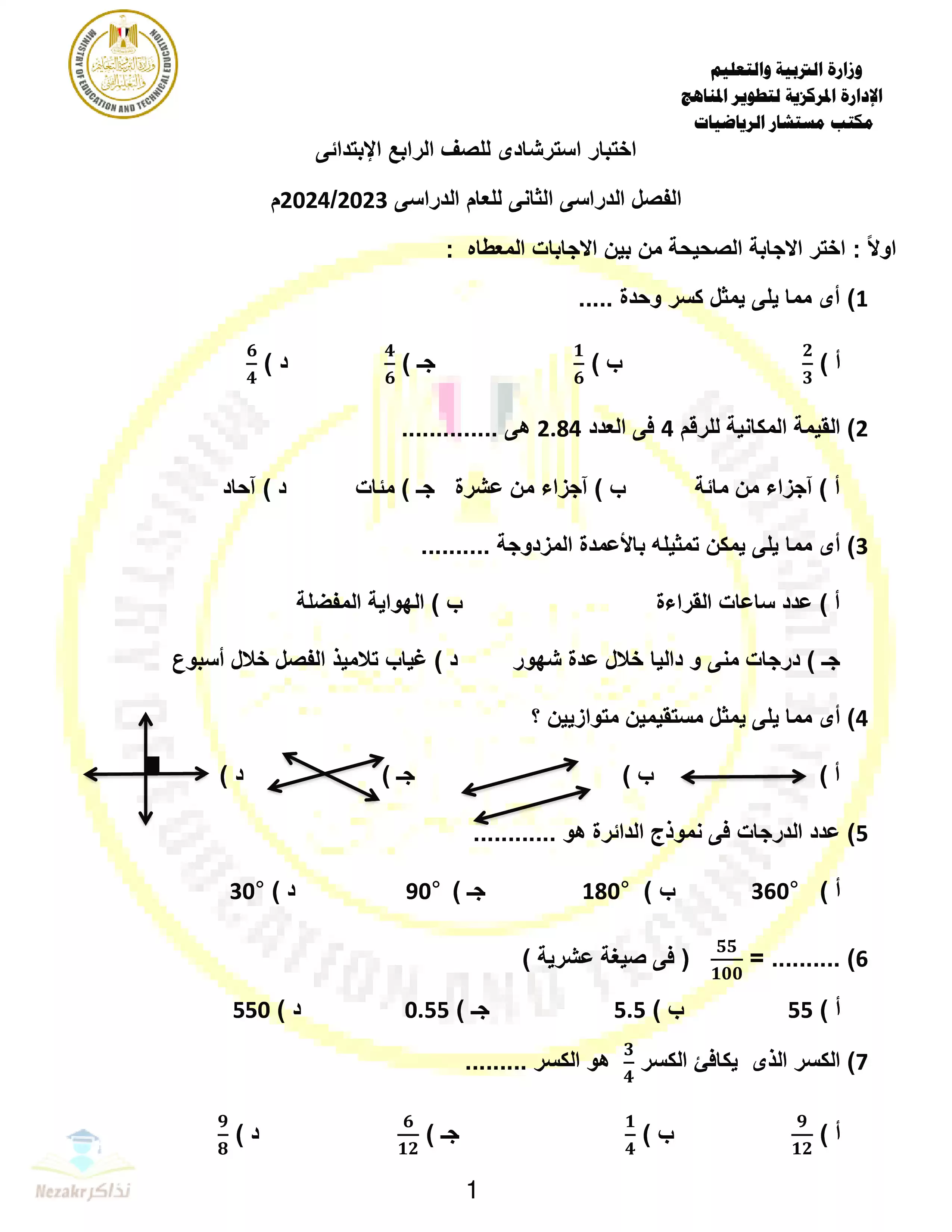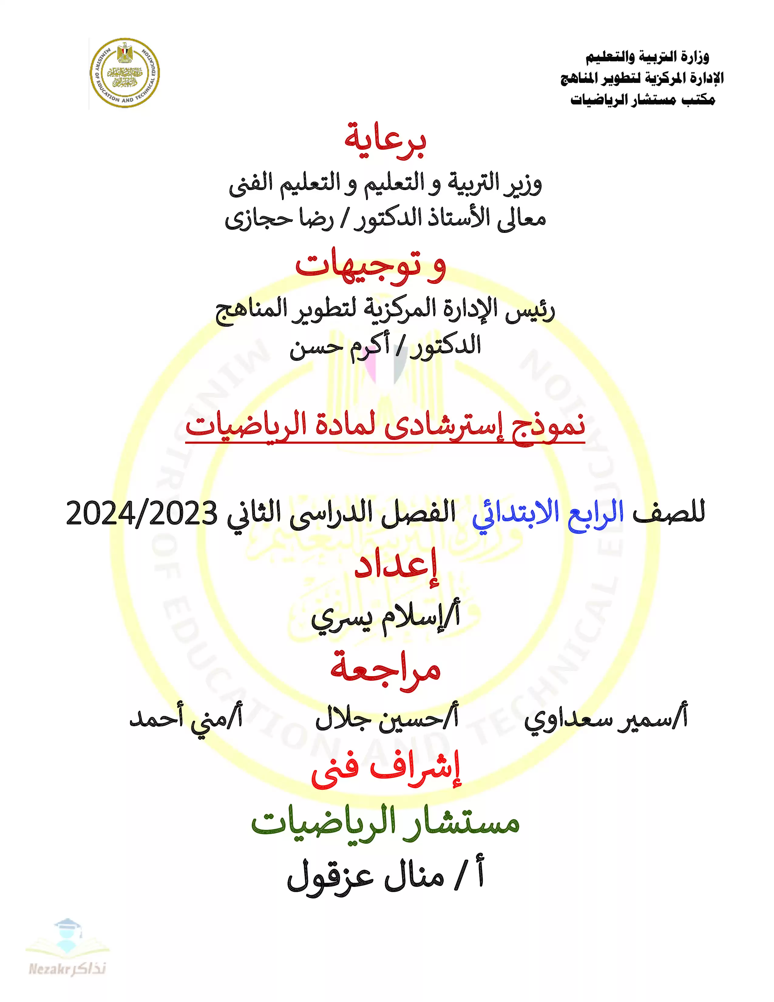 | بيانات الملف: (نموذج امتحان الوزارة الاسترشادي في مادة الرياضيات للصف الرابع الابتدائي الفصل الدراسي الثانى) | |