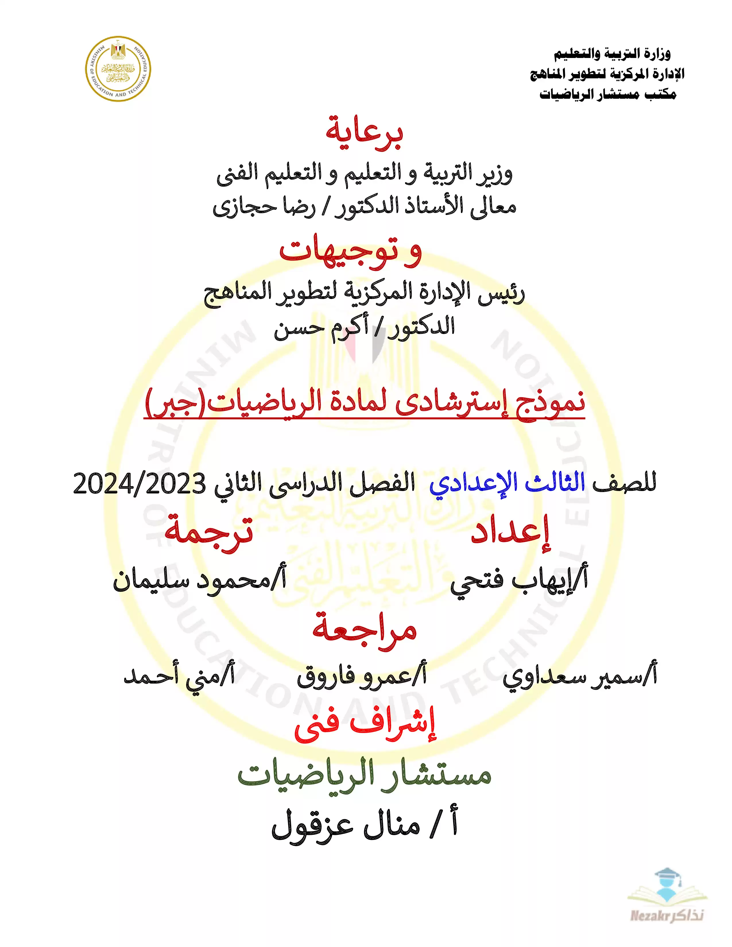 | بيانات الملف: (نموذج الوزارة الرسمي في Algebra للصف الثالث الإعدادي الترم الثاني 2024 - نذاكر) | |