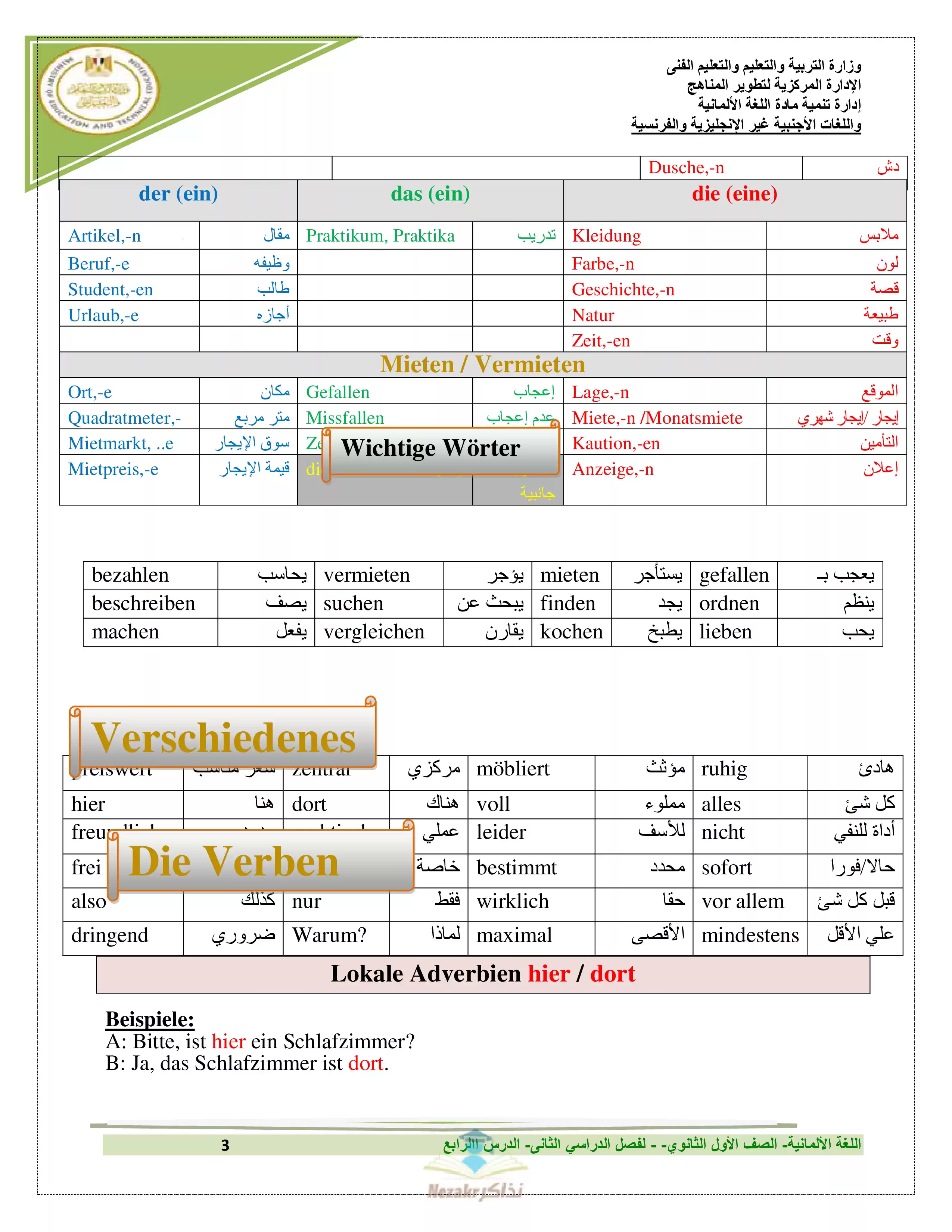 يحتوى الملف المرفق في المقال على ملف شرح من وزارة التربية والتعليم مادة اللغة الألمانية للصف الأول الثانوي الترم الثاني (الدرس الرابع)، حيث يحتوي ملخصات ومفاهيم وأسئلة هامة على الدرس ومراجعة شاملة للدرس ضمن منهج الترم الثاني ألماني أولى ثانوي، وذلك لتتمكن من تشغيله على جهاز الموبايل أو من خلال جهاز الكمبيوتر أو عبر اللابتوب أو التابلت لضمان سهولة الوصول الى الملف والمذاكرة عليه وقراءة محتوياته.
