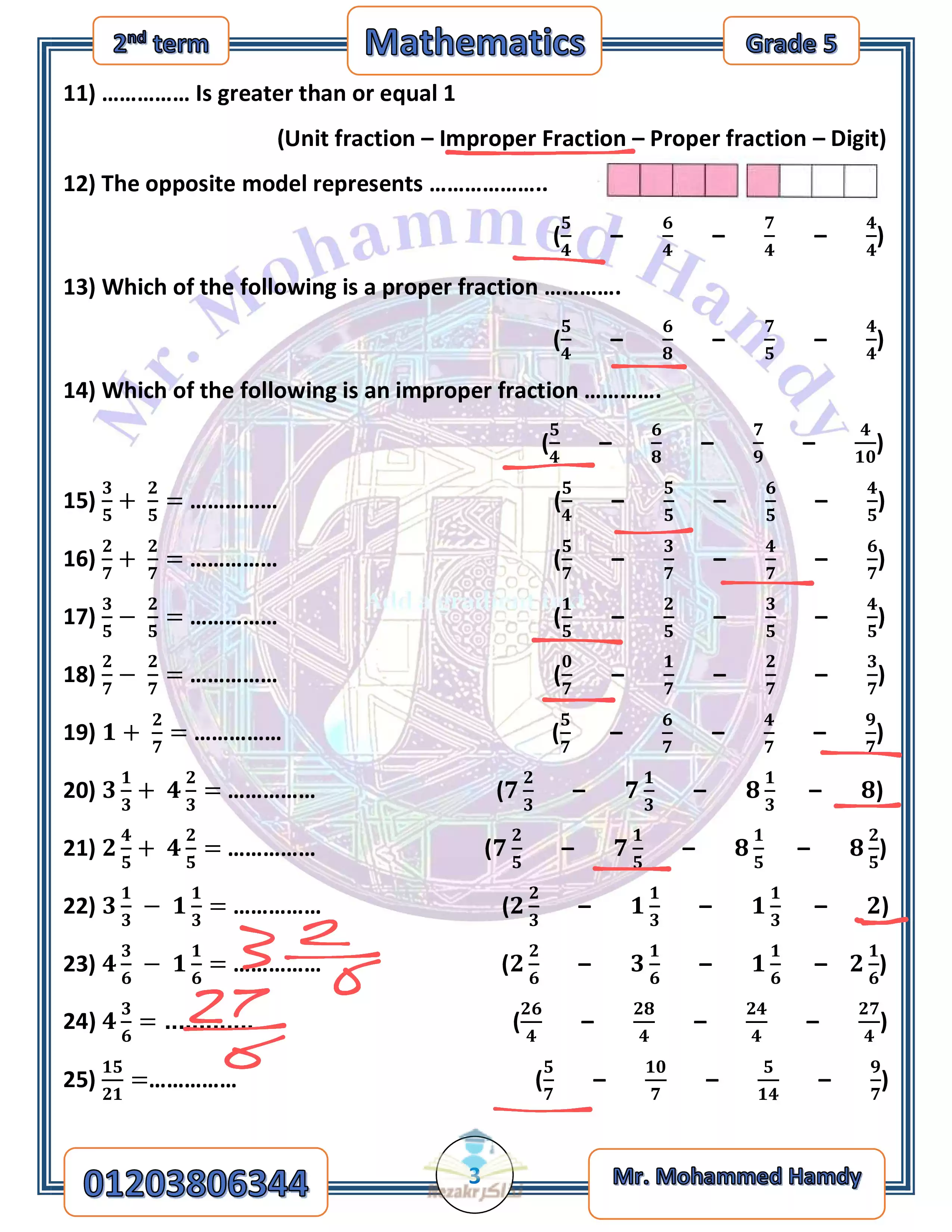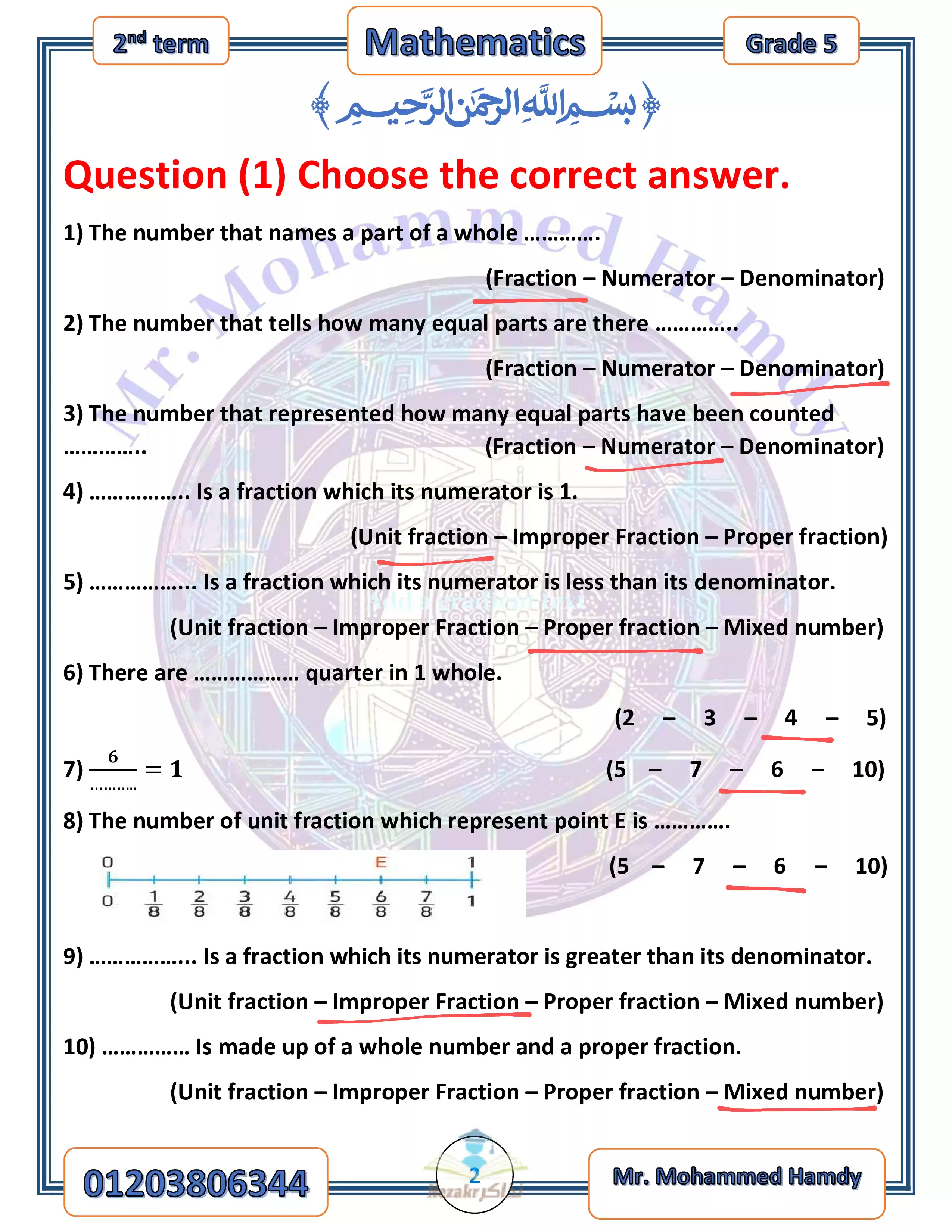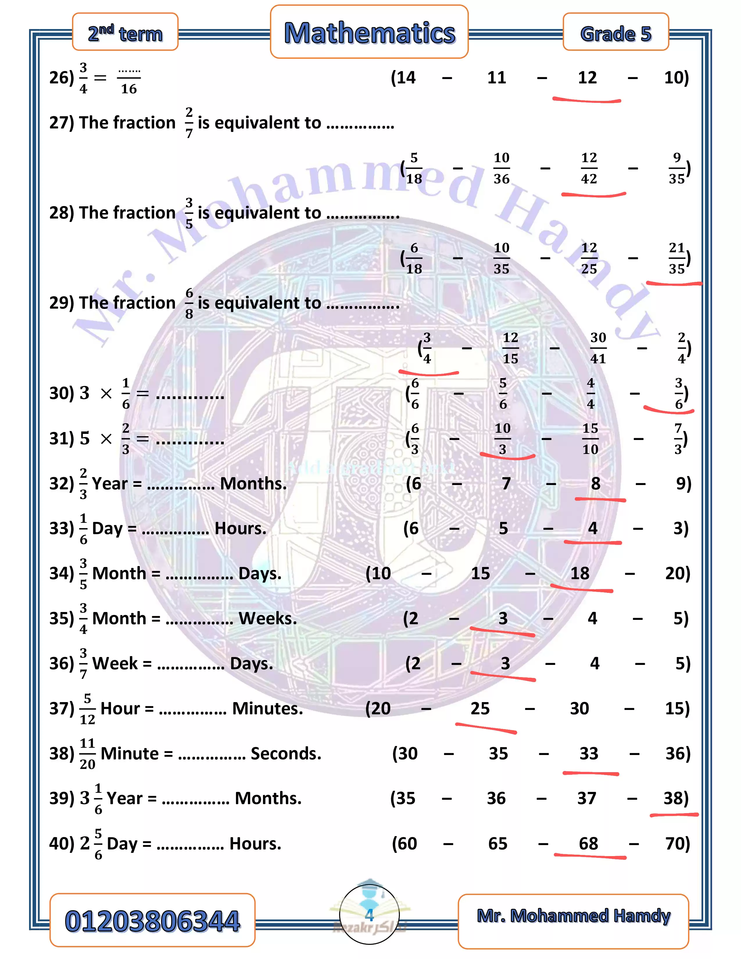 - مراجعة الماث النهائية خامسة ابتدائي الفصل الدراسي الثاني 2024
