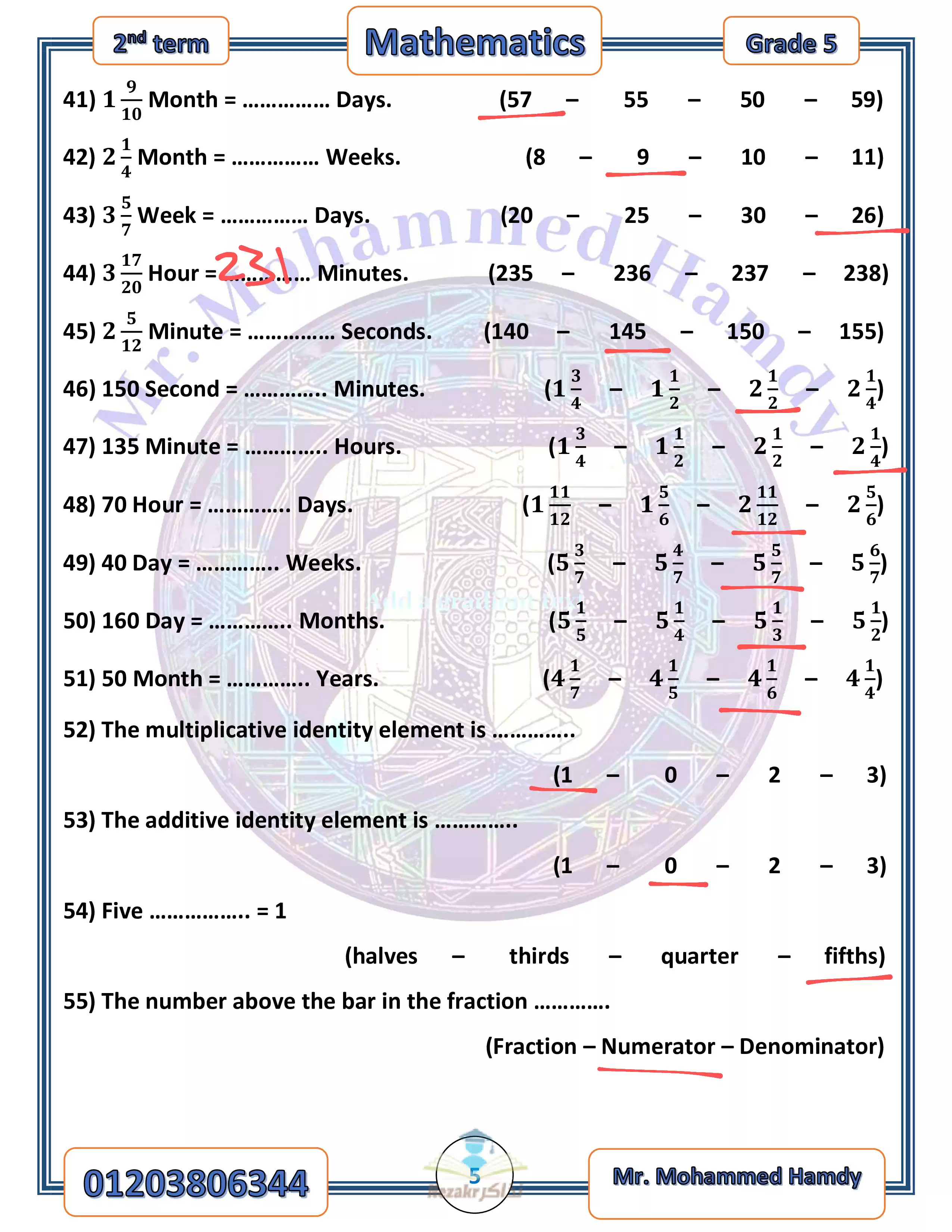 - مراجعة الرياضيات للغات للصف الخامس الابتدائي