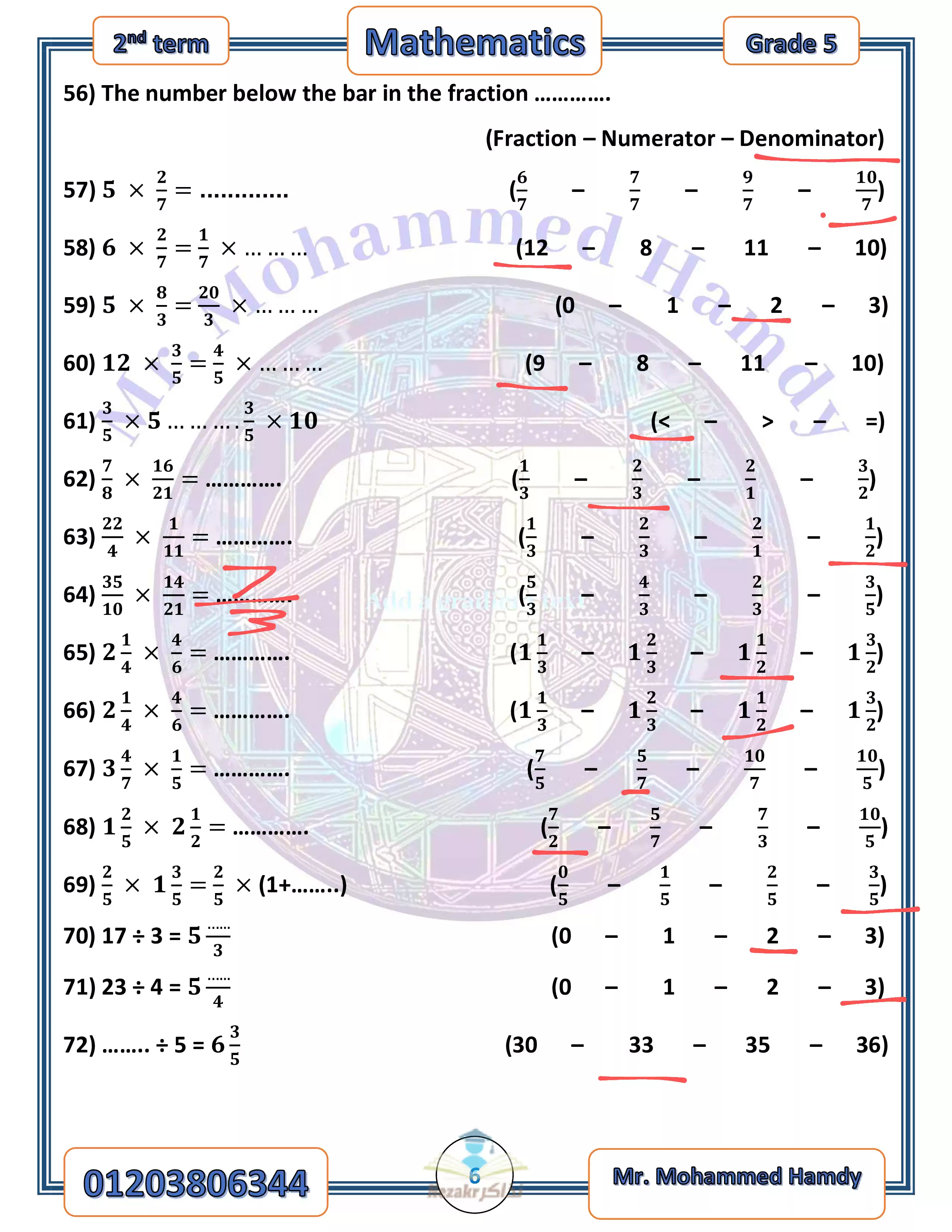 صفحة 6 من 46 صفحة من ملف: مذكرة مراجعة نهائية رياضيات لغات للصف الخامس الابتدائي الفصل الدراسي الثاني - Nezakr