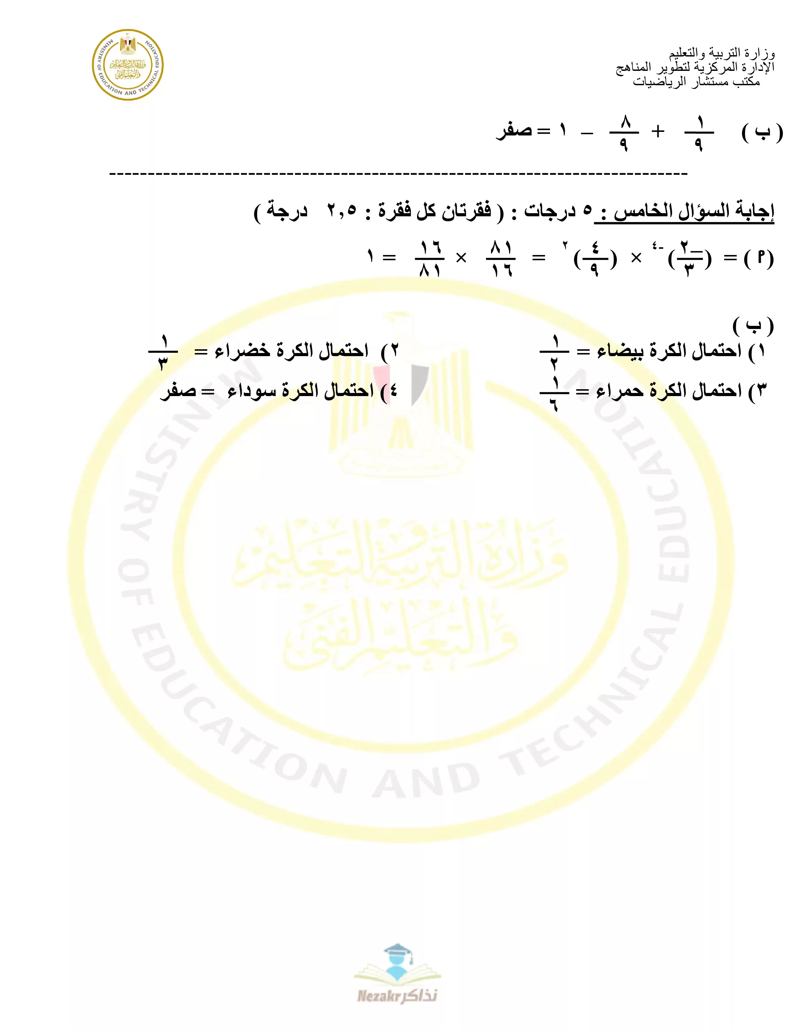 صفحة 5 من 11 صفحة من ملف: نموذج امتحان الوزارة الرسمي في الرياضيات للصف الأول الإعدادي الترم الثاني 2024 - نذاكر