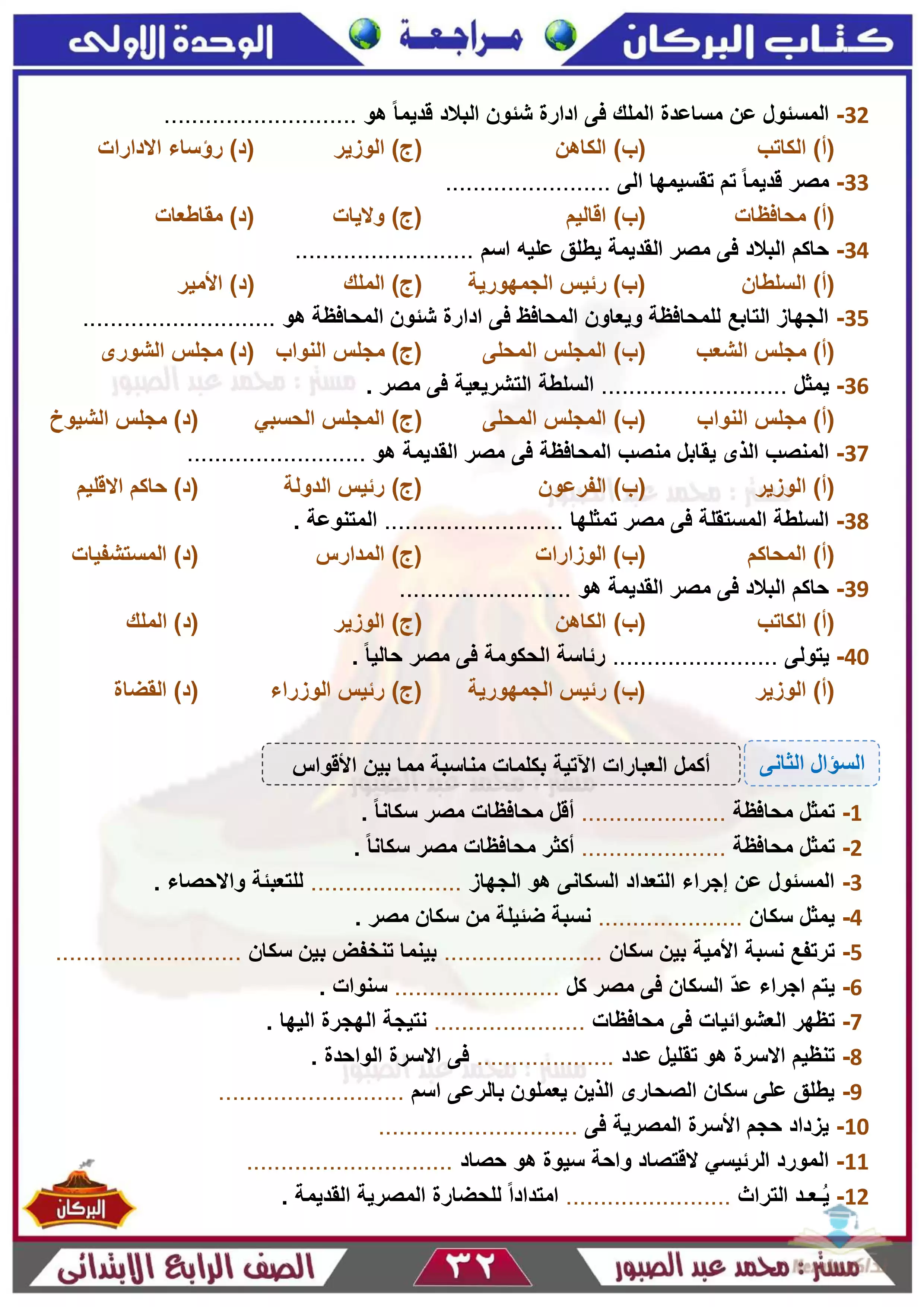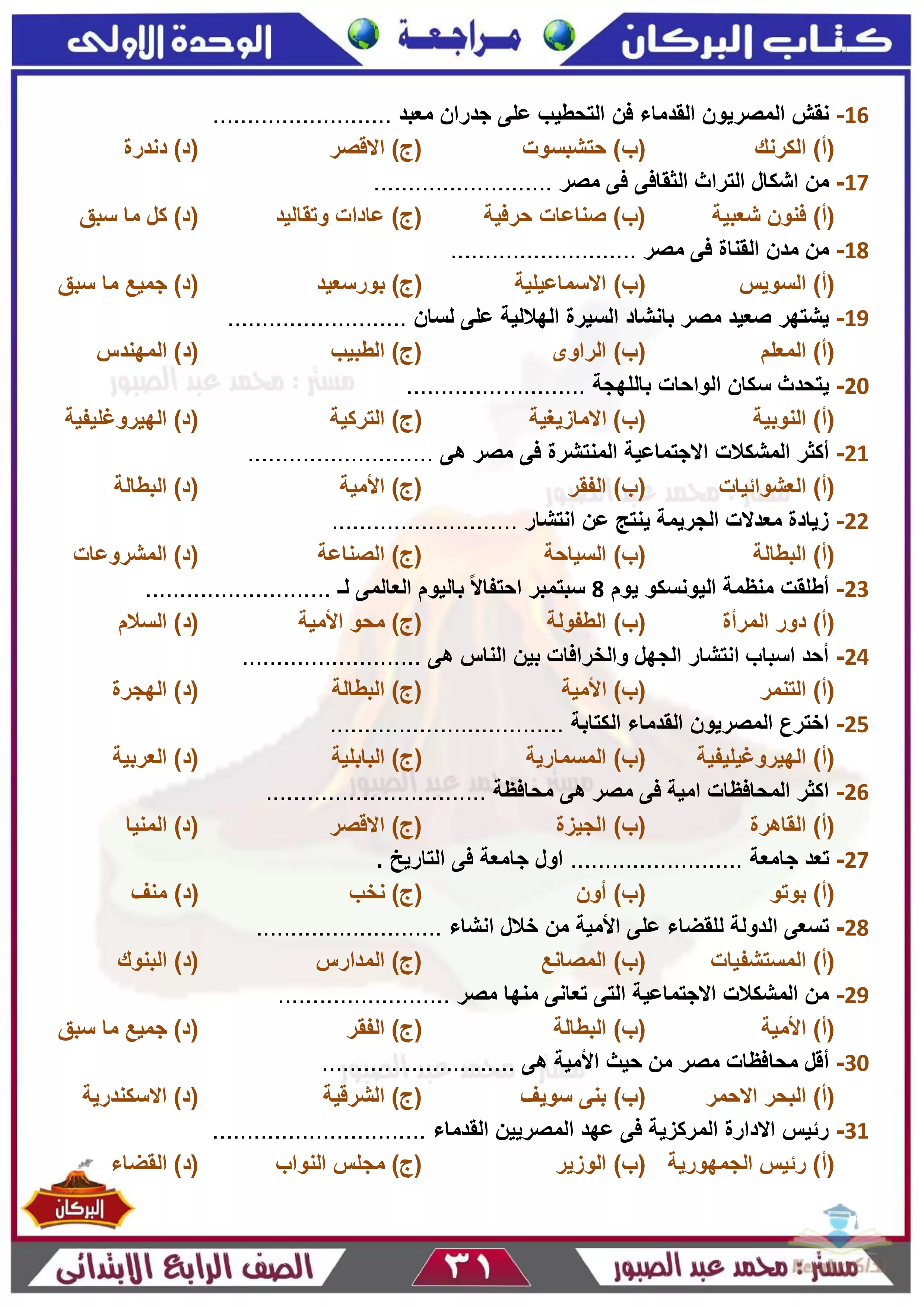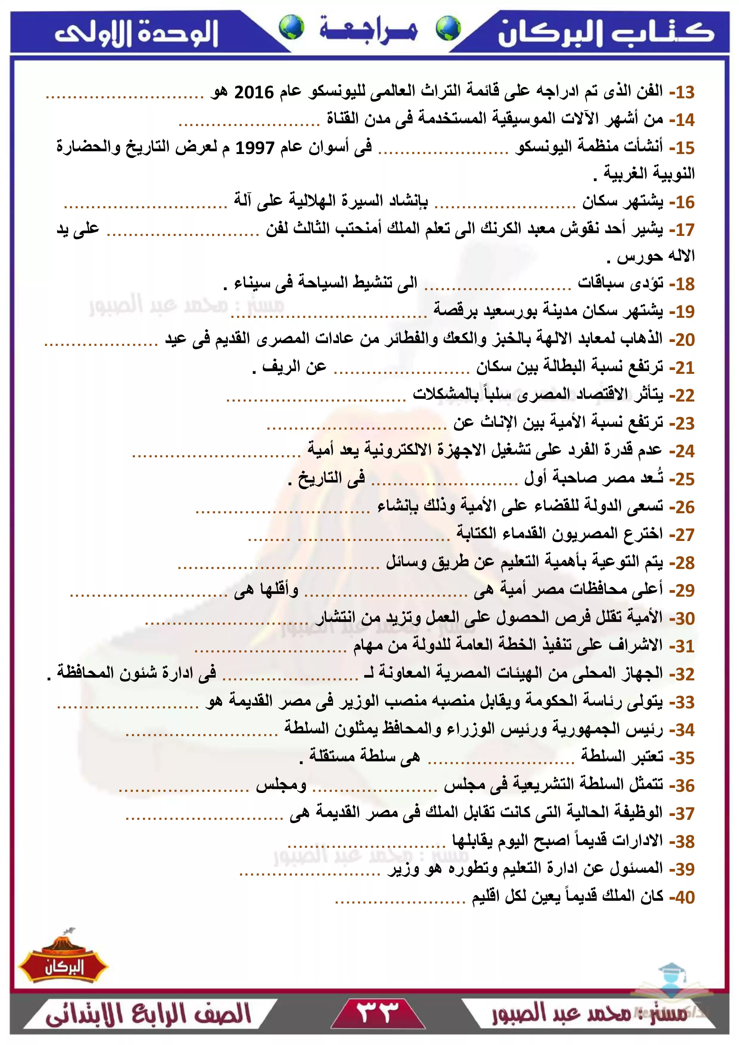 | بيانات الملف: (مذكرة كتاب البركان في مراجعة الدراسات للصف الرابع الابتدائي ترم 2 - Nezakr) | |