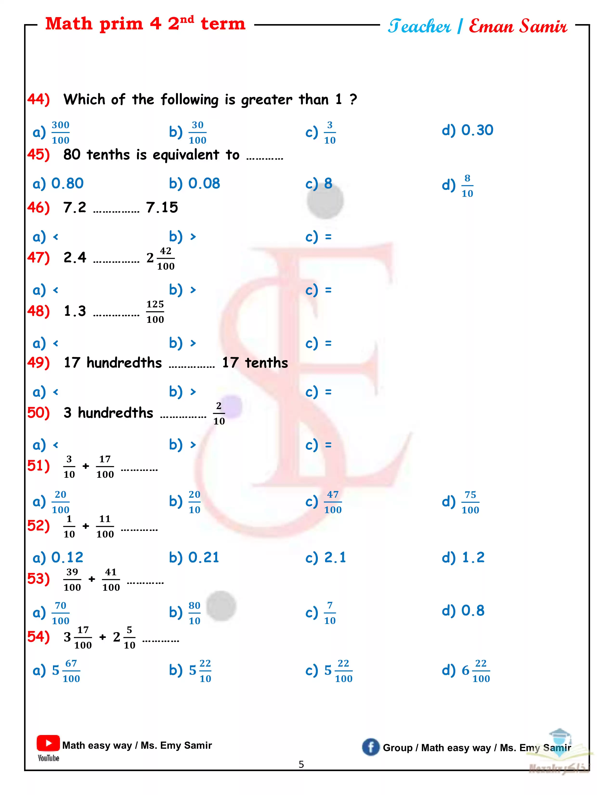 صفحة 5 من 28 صفحة من ملف: مذكرة مراجعة Math للصف الرابع الابتدائي الترم الثاني - Nezakr