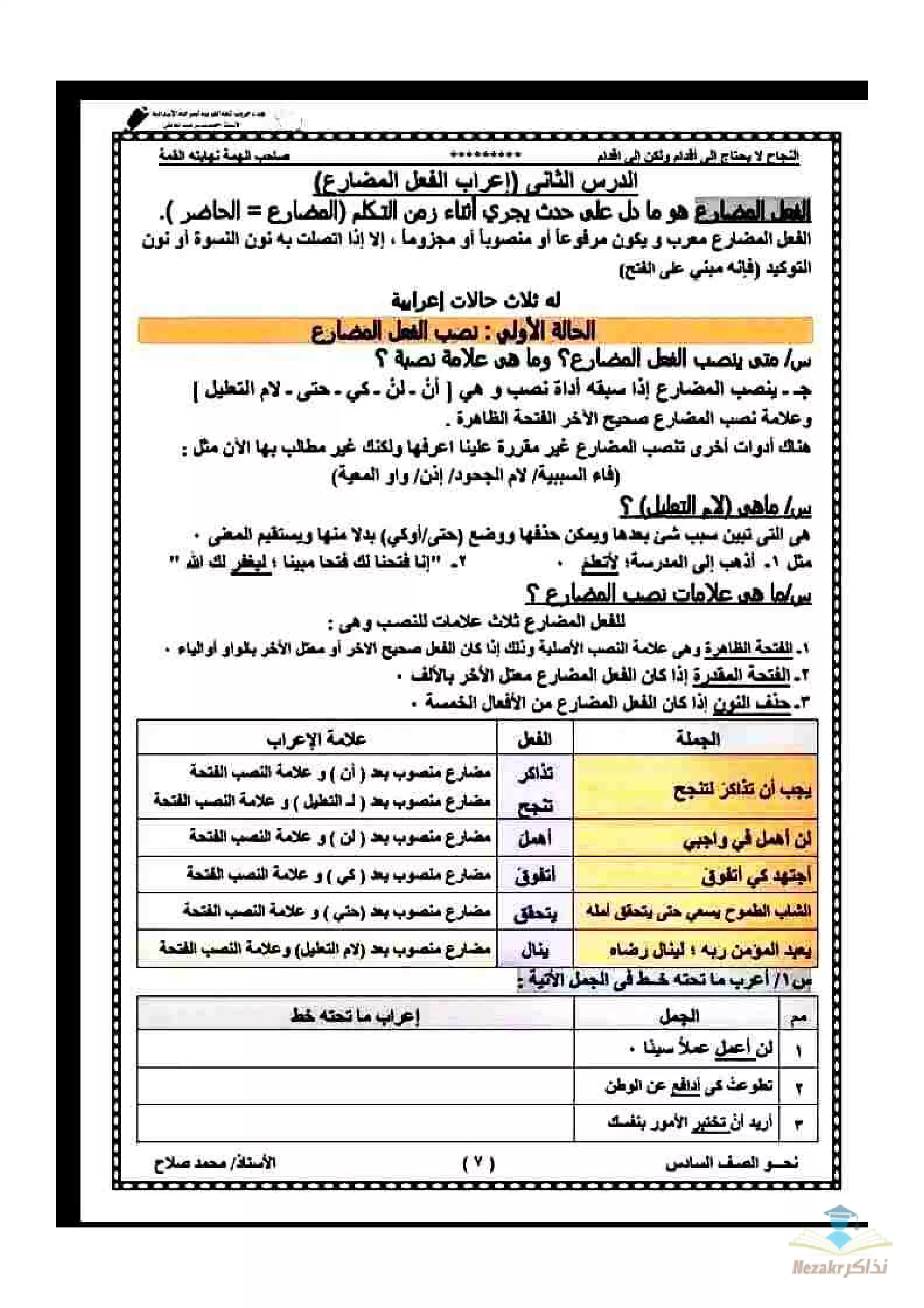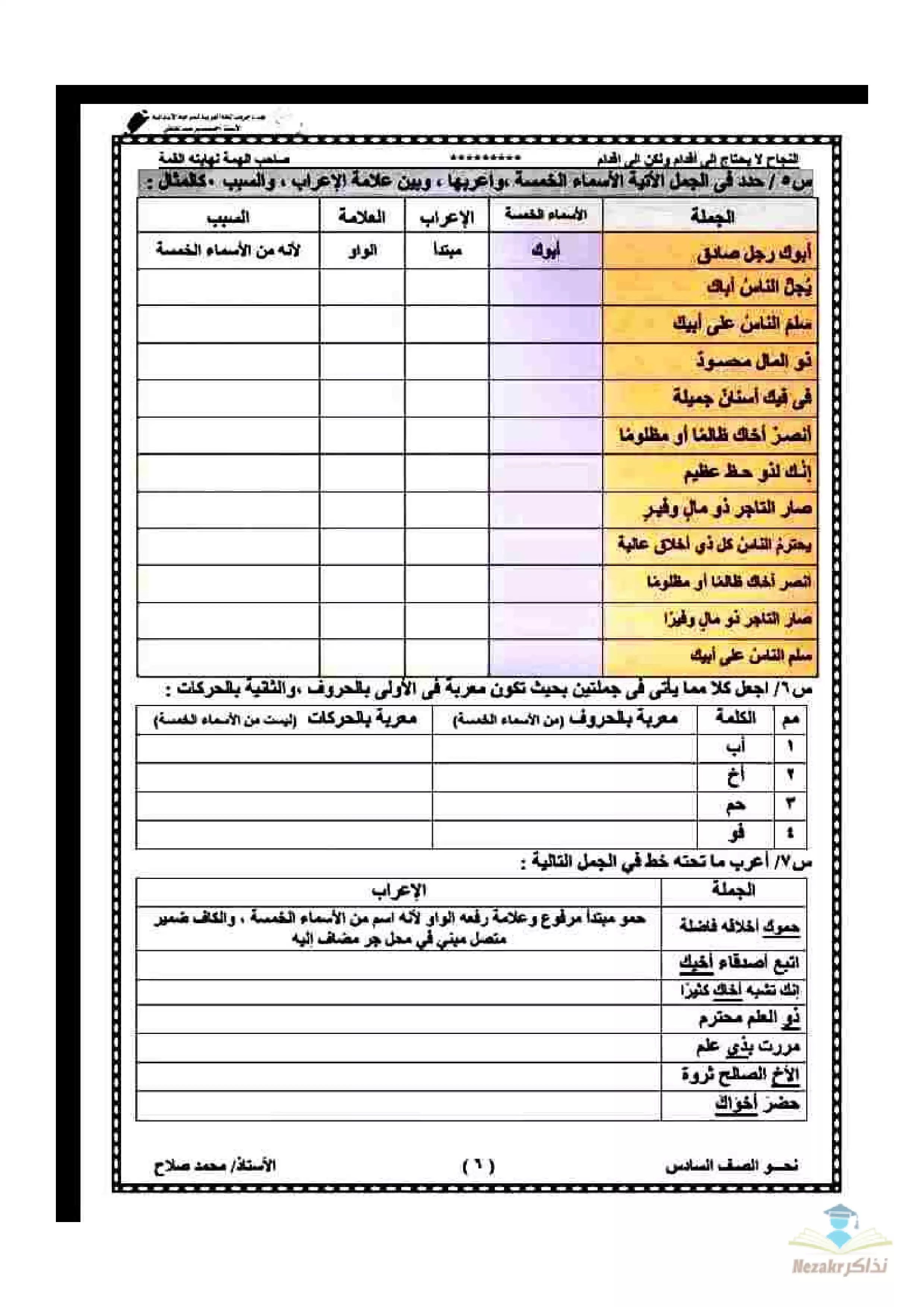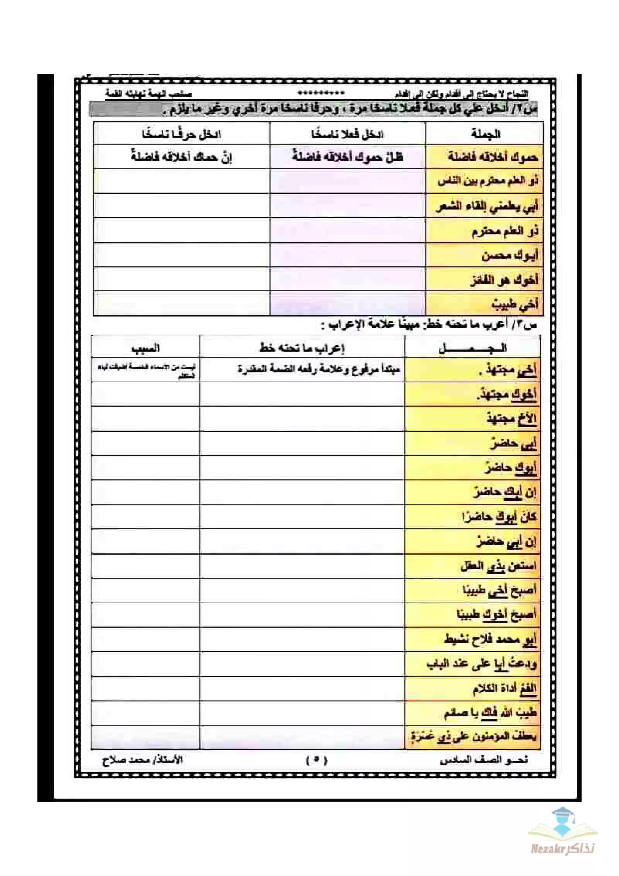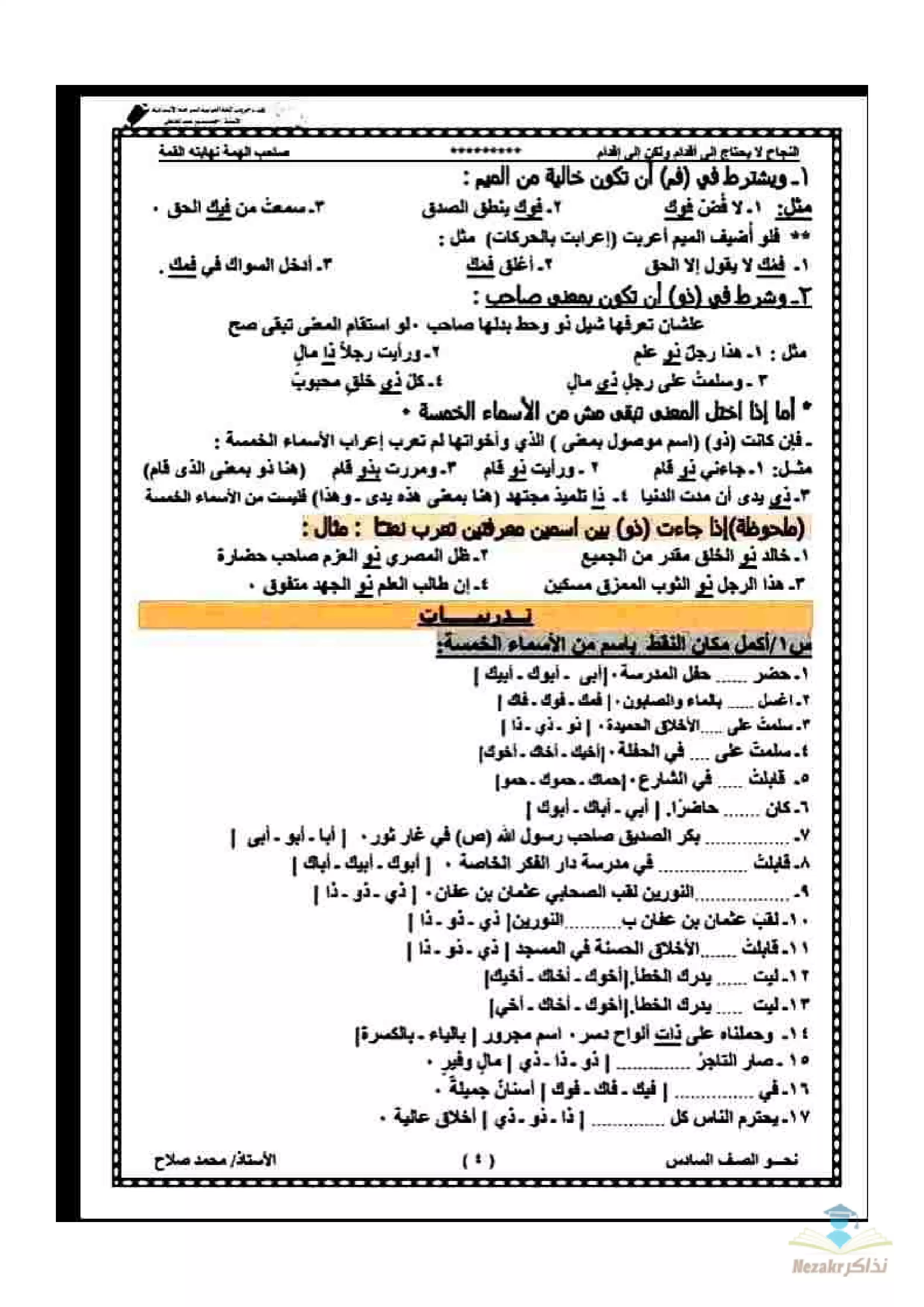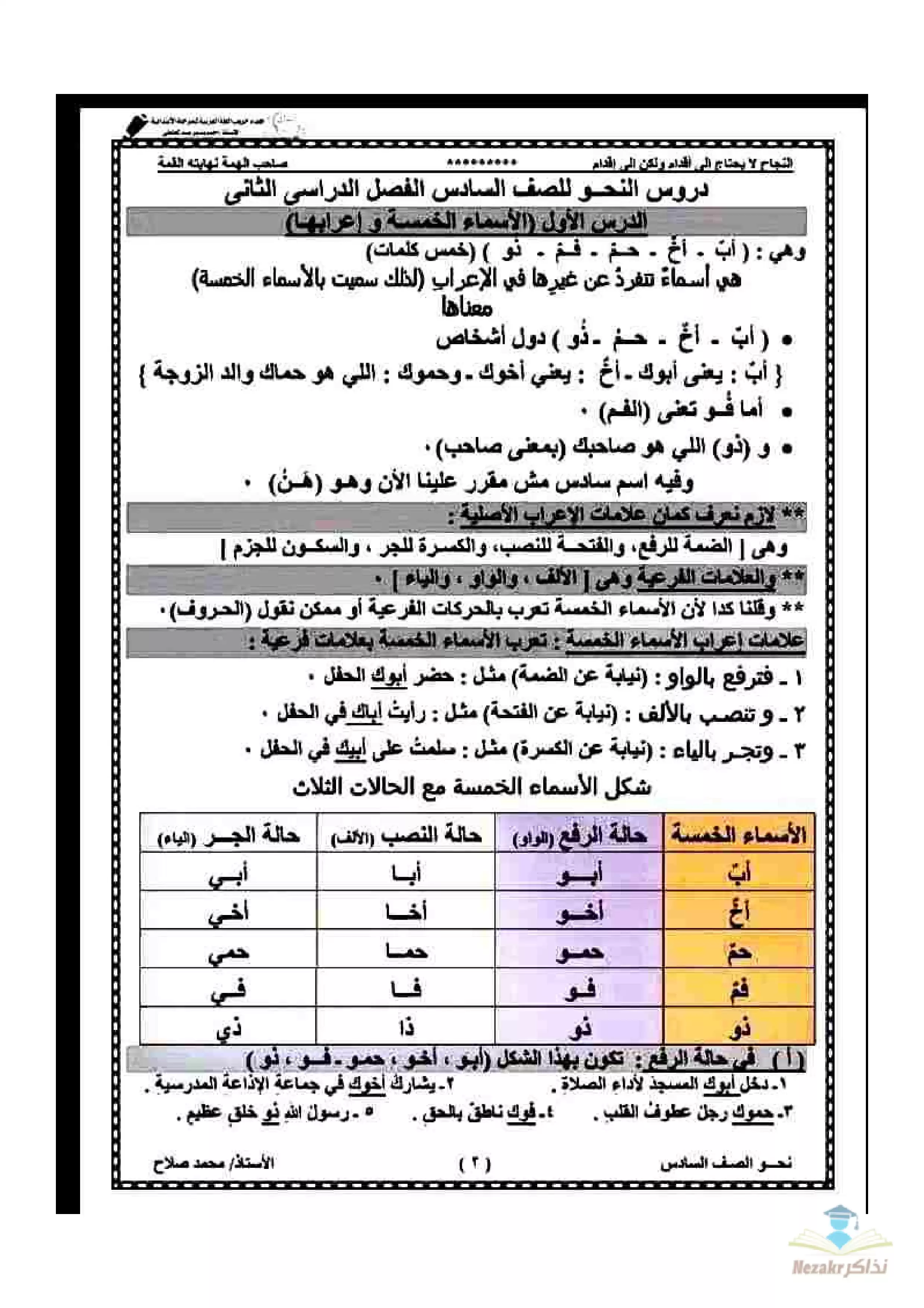 أقوى مذكرة نحو للصف السادس الابتدائي الفصل الدراسي الثاني - Nezakr |