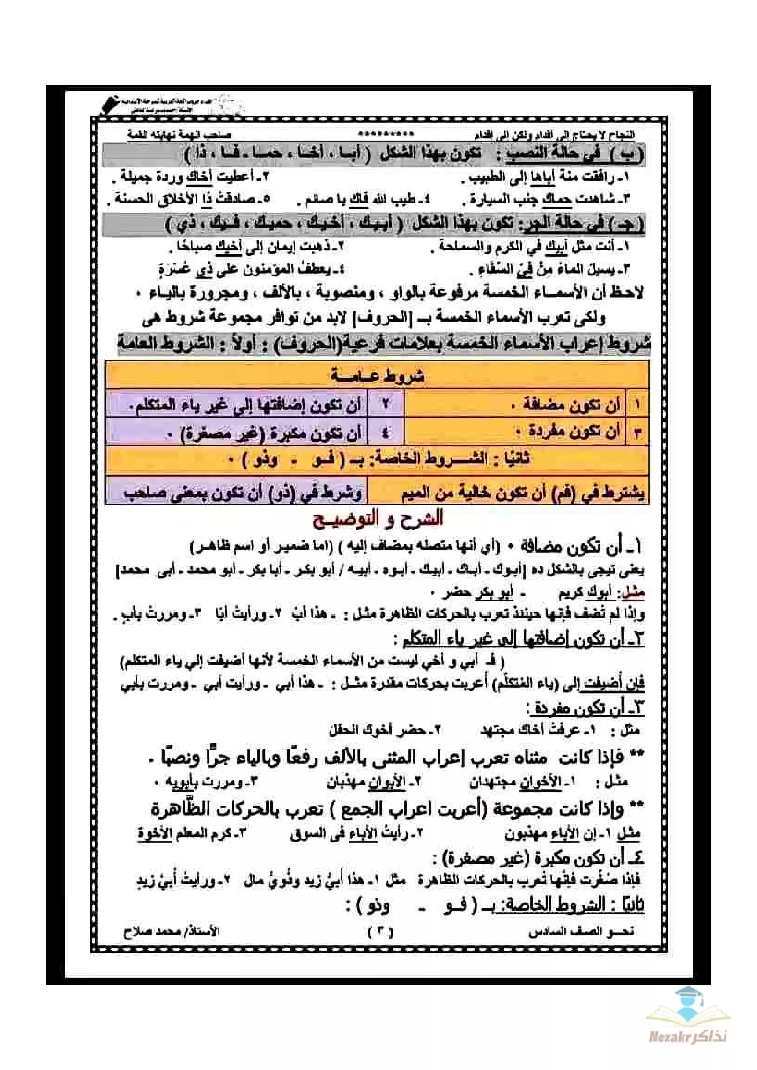 صفحة 3 من 14 صفحة من ملف: أقوى مذكرة نحو للصف السادس الابتدائي الفصل الدراسي الثاني - Nezakr