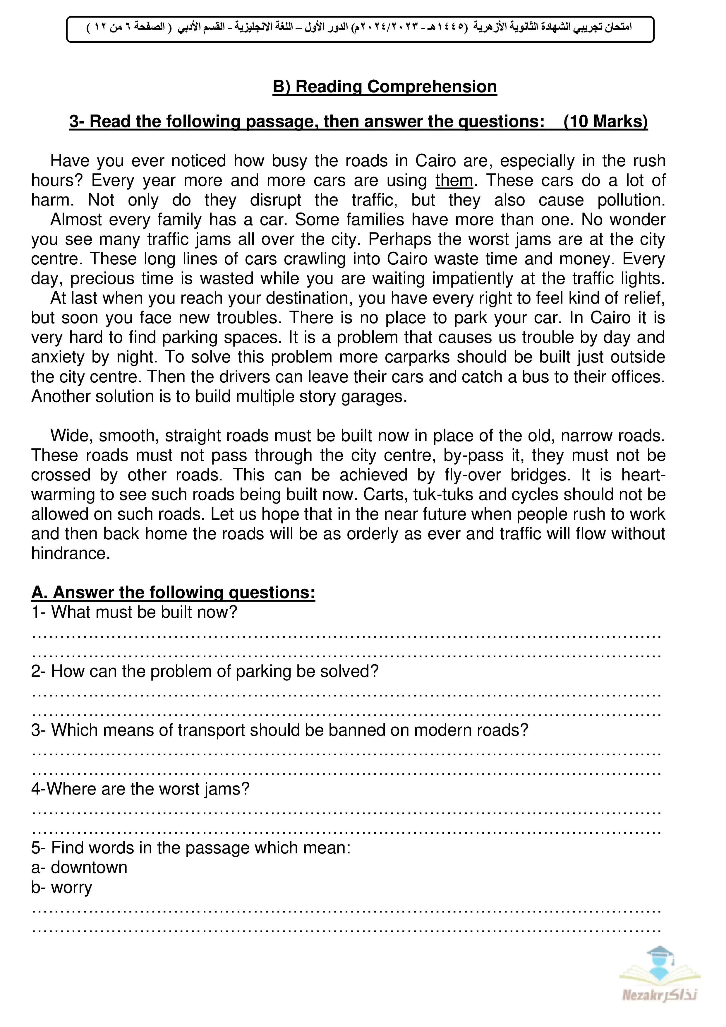 صفحة 6 من 12 صفحة من ملف: امتحان البوكليت التجريبي في اللغة الإنجليزية أدبي للشهادة الثانوية الأزهرية 2024 - Nezakr