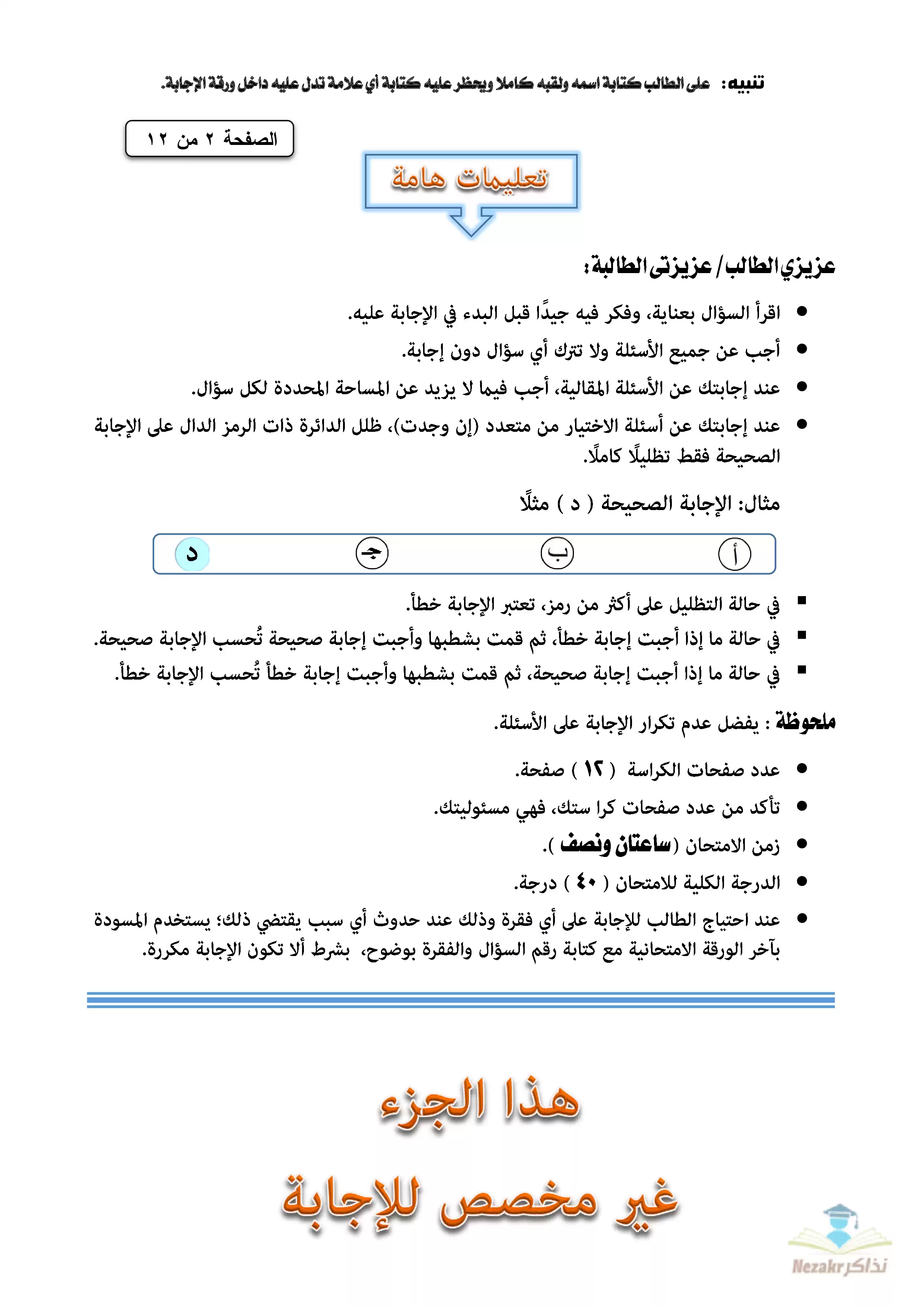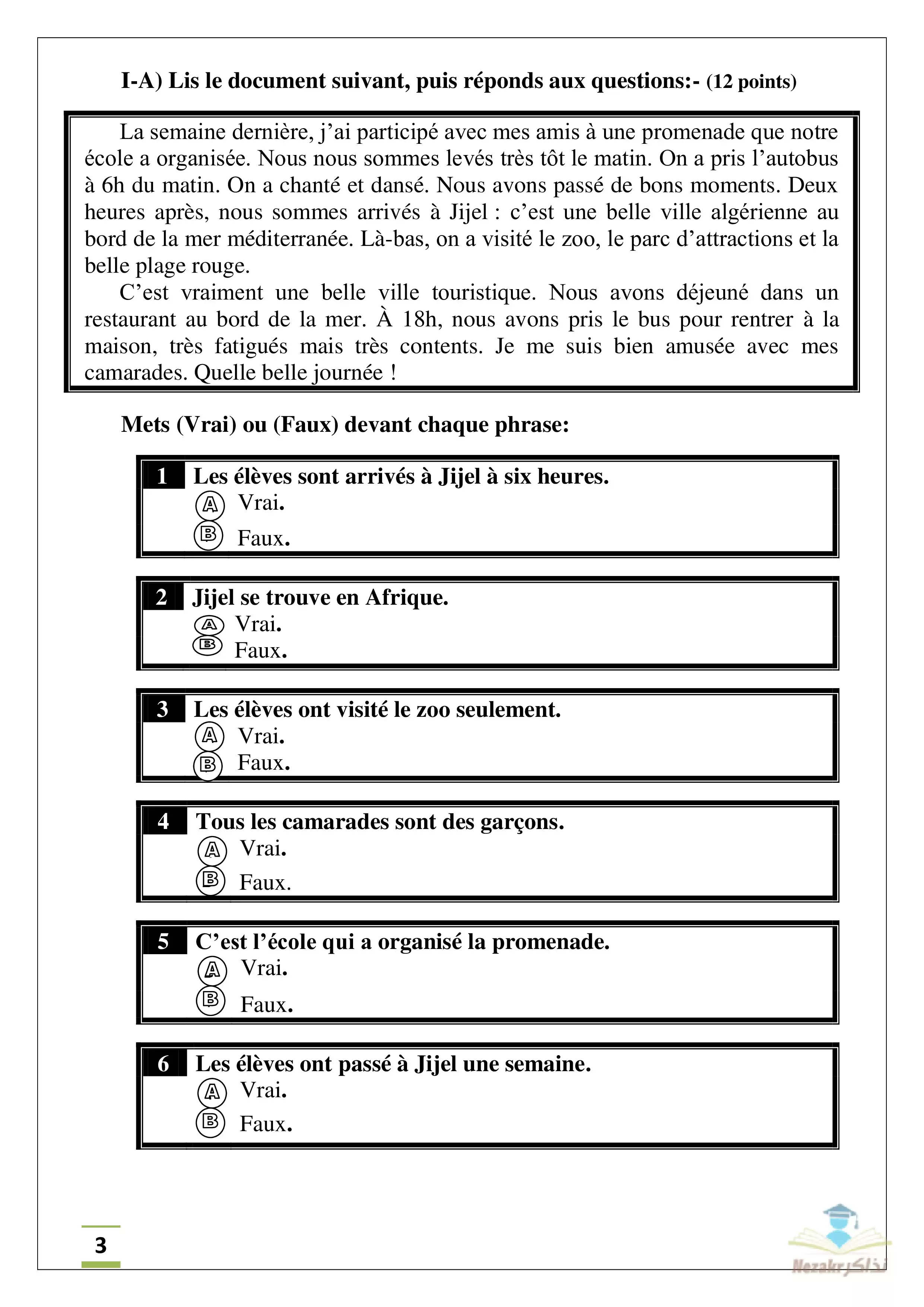 | بيانات الملف: (الامتحان التجريبي في اللغة الفرنسية للشهادة الثانوية الأزهرية 2024 - Nezakr) | |