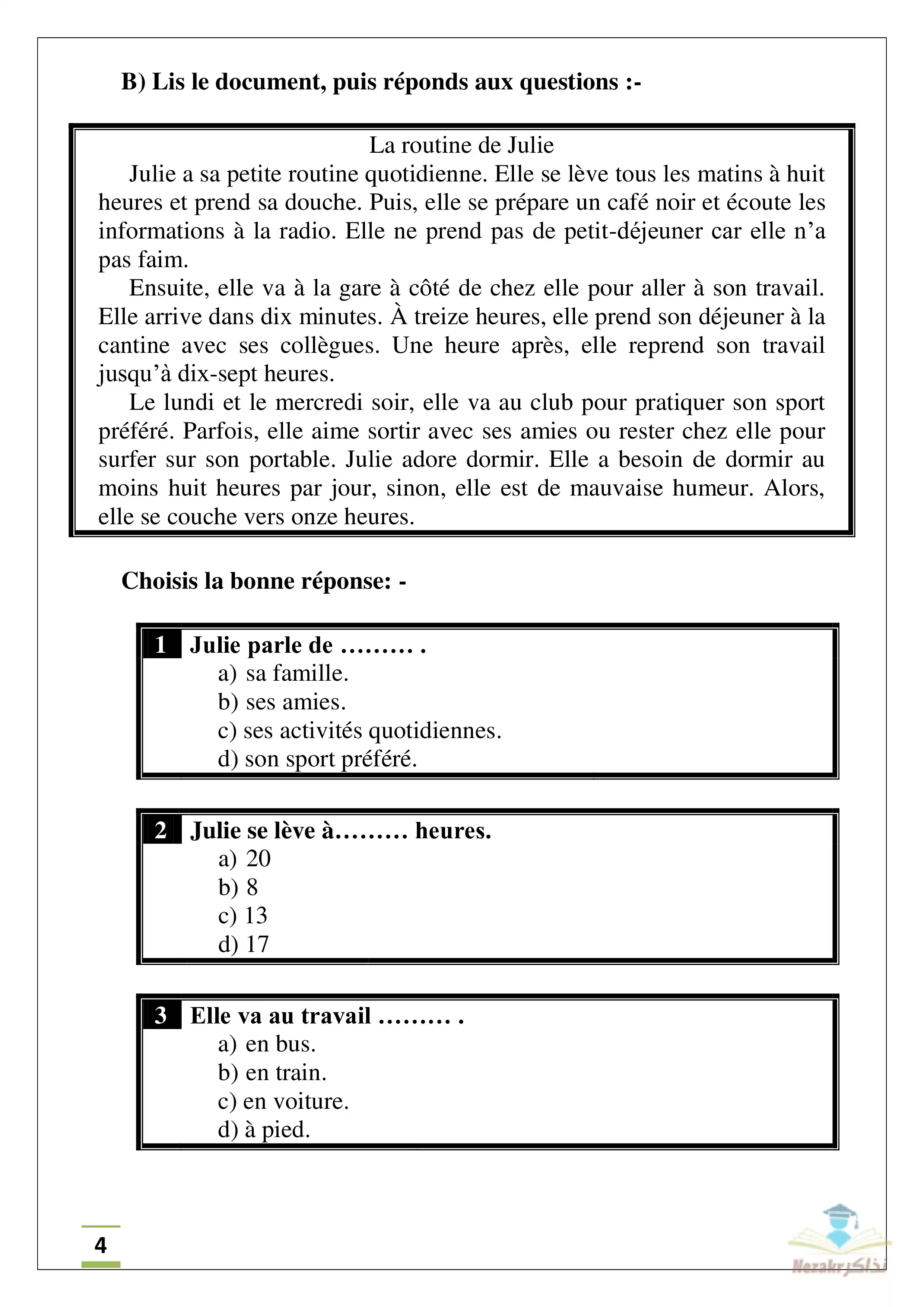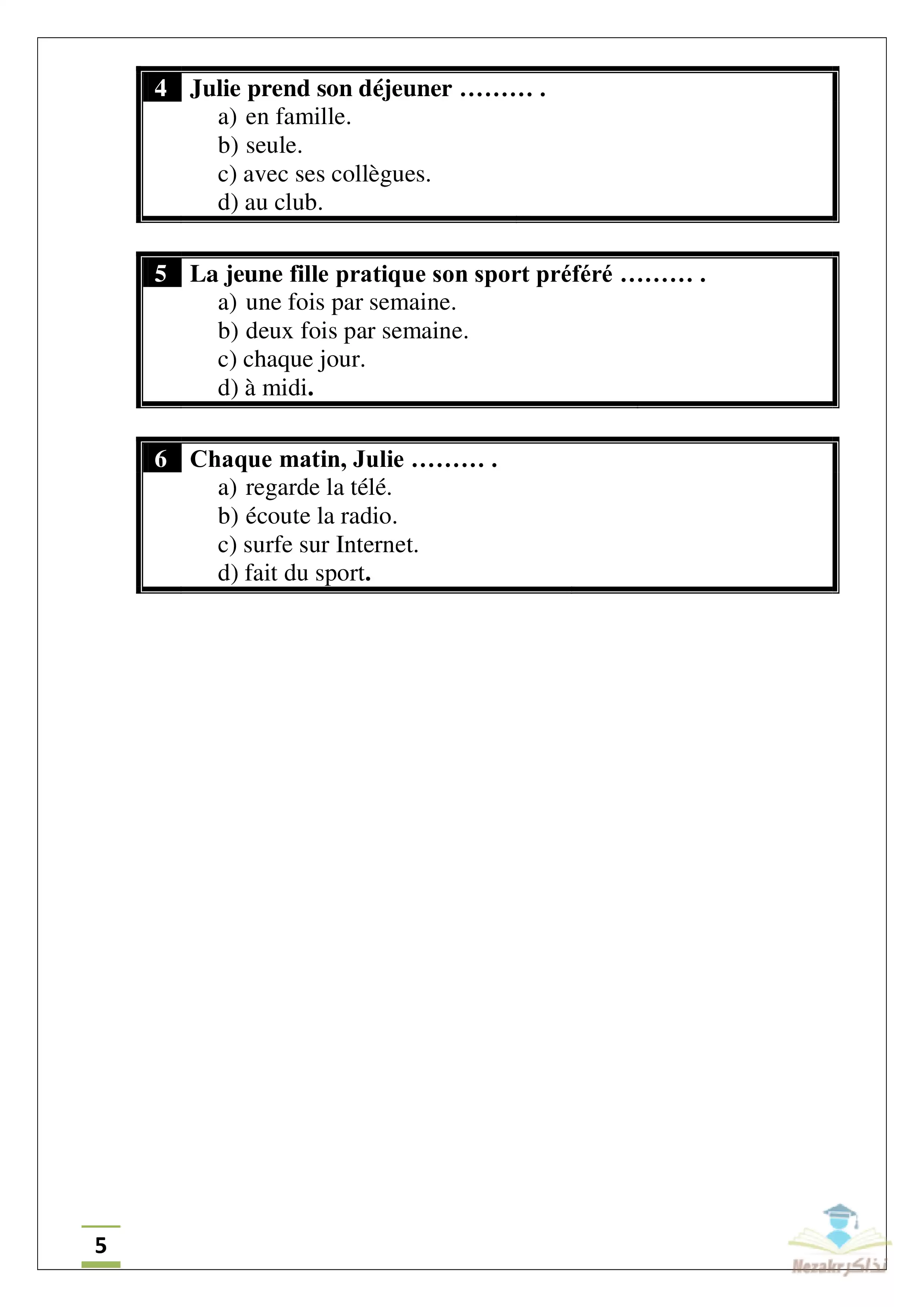 مرحباً بجميع طلاب الصف الثالث الثانوي الأزهري الشعبة الأدبية، نقدم لكم الامتحان التجريبي للثانوية الأزهرية في مادة اللغة الفرنسية أدبي من إعداد الأزهر الشريف، الامتحان بطريقة وشكل البوكليت ويهدف إلى تدريب الطلاب علي طريقة وشكل وأسلوب وأسئلة امتحان اللغة الفرنسية آخر العام الدراسي للشهادة الثانوية، وذلك للتدرب على الامتحان ودفع القلق والتوتر بعد التجربة.