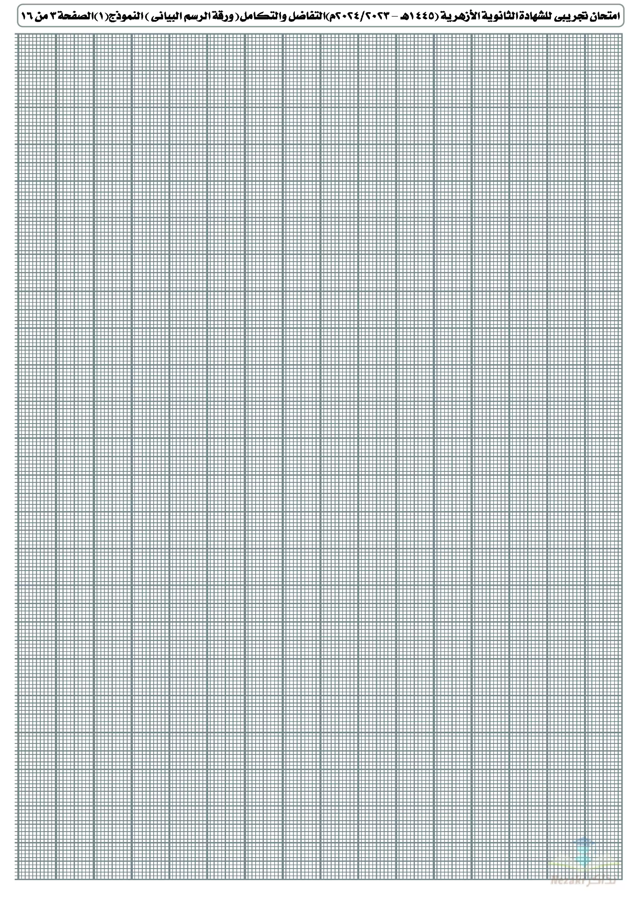 صفحة 3 من 16 صفحة من ملف: الامتحان التجريبي في التفاضل والتكامل للشهادة الثانوية الأزهرية 2024 - Nezakr