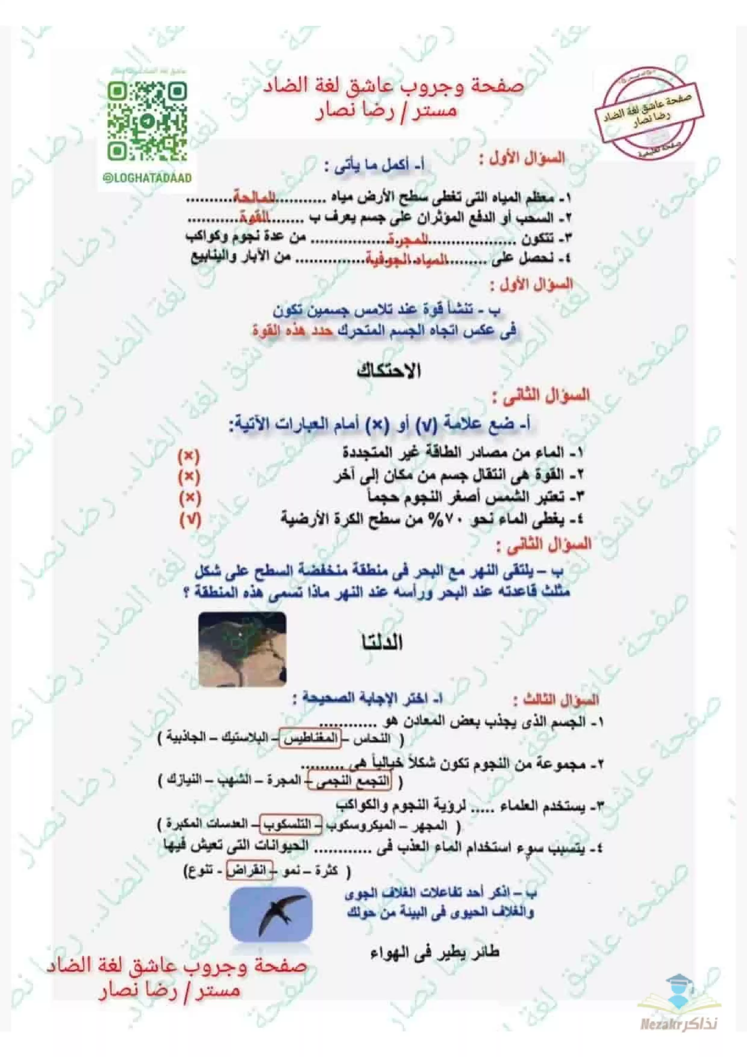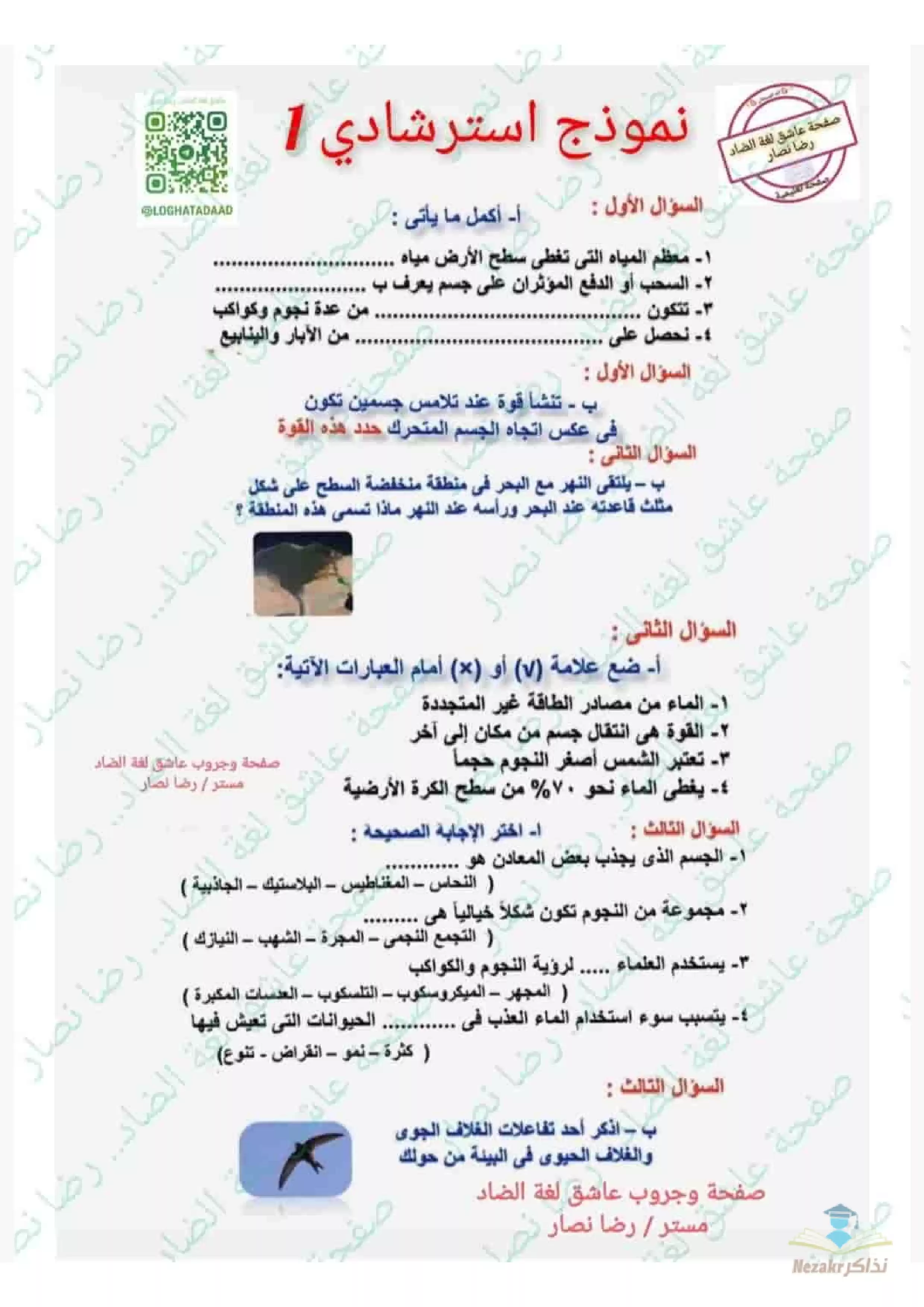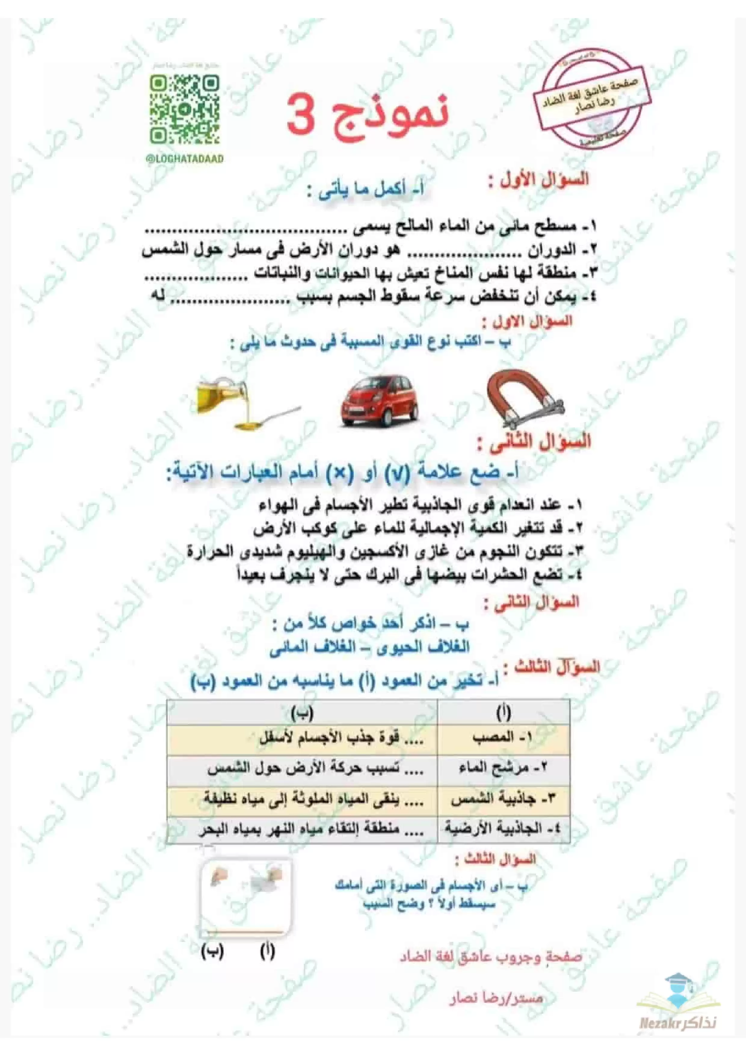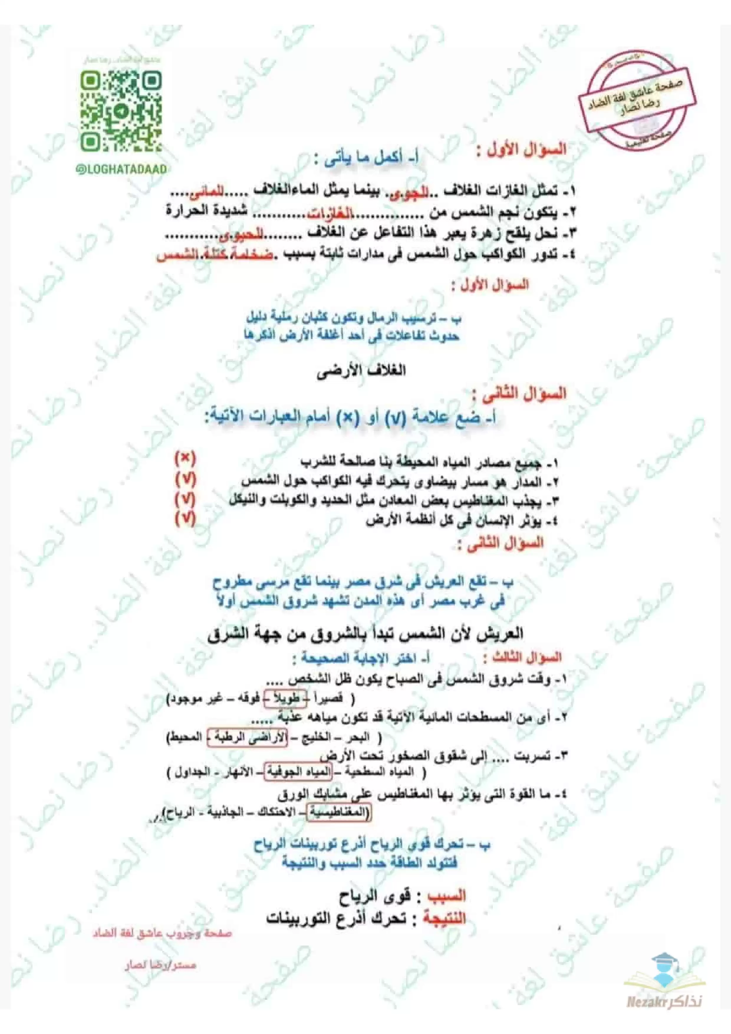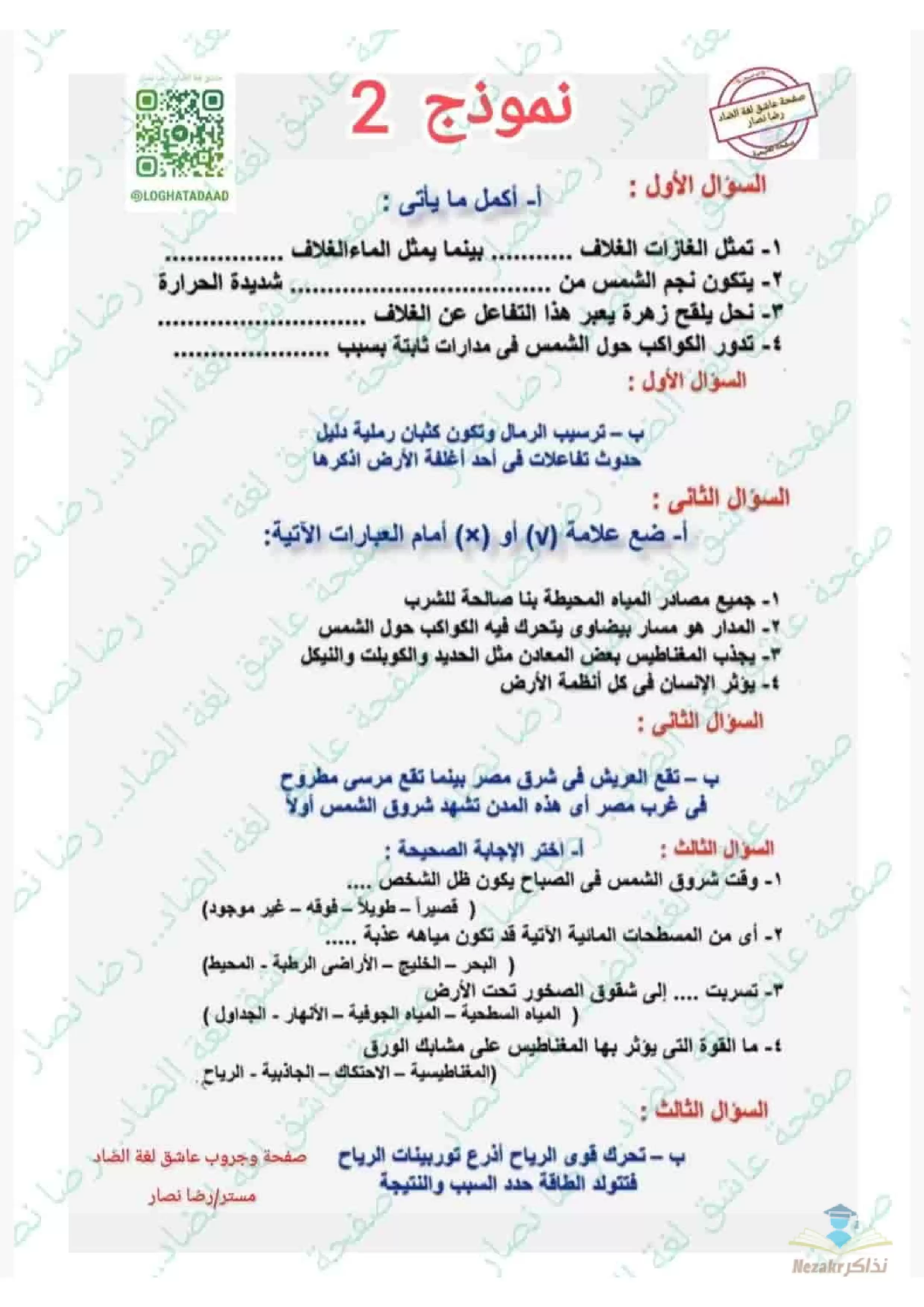 بيانات الملف: (مراجعة ونماذج اختبارات الوزارة في العلوم خامسة ابتدائي ترم 2 - Nezakr)