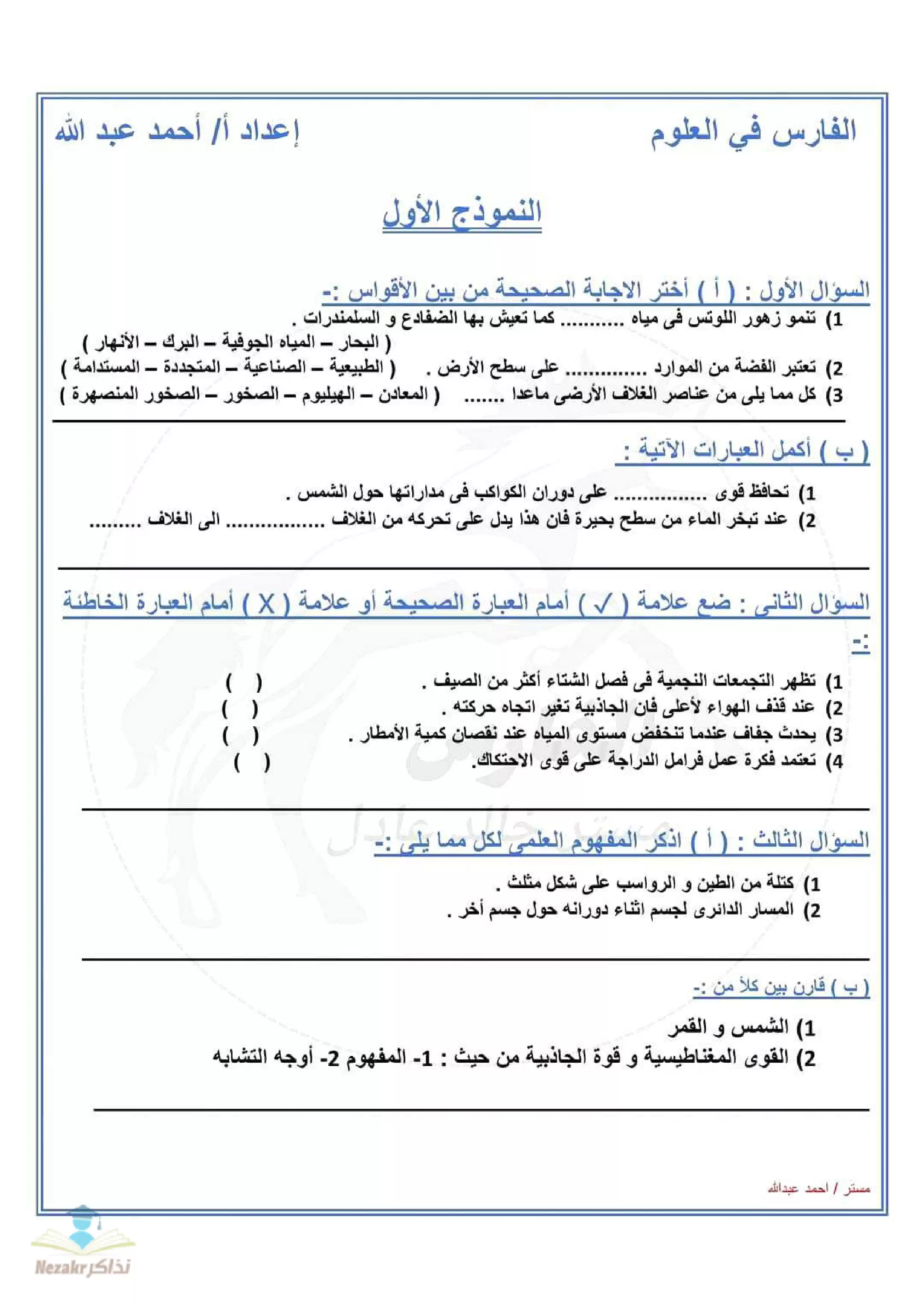 بنك أسئلة الفارس في العلوم الصف الخامس الابتدائي الترم الثاني - Nezakr |