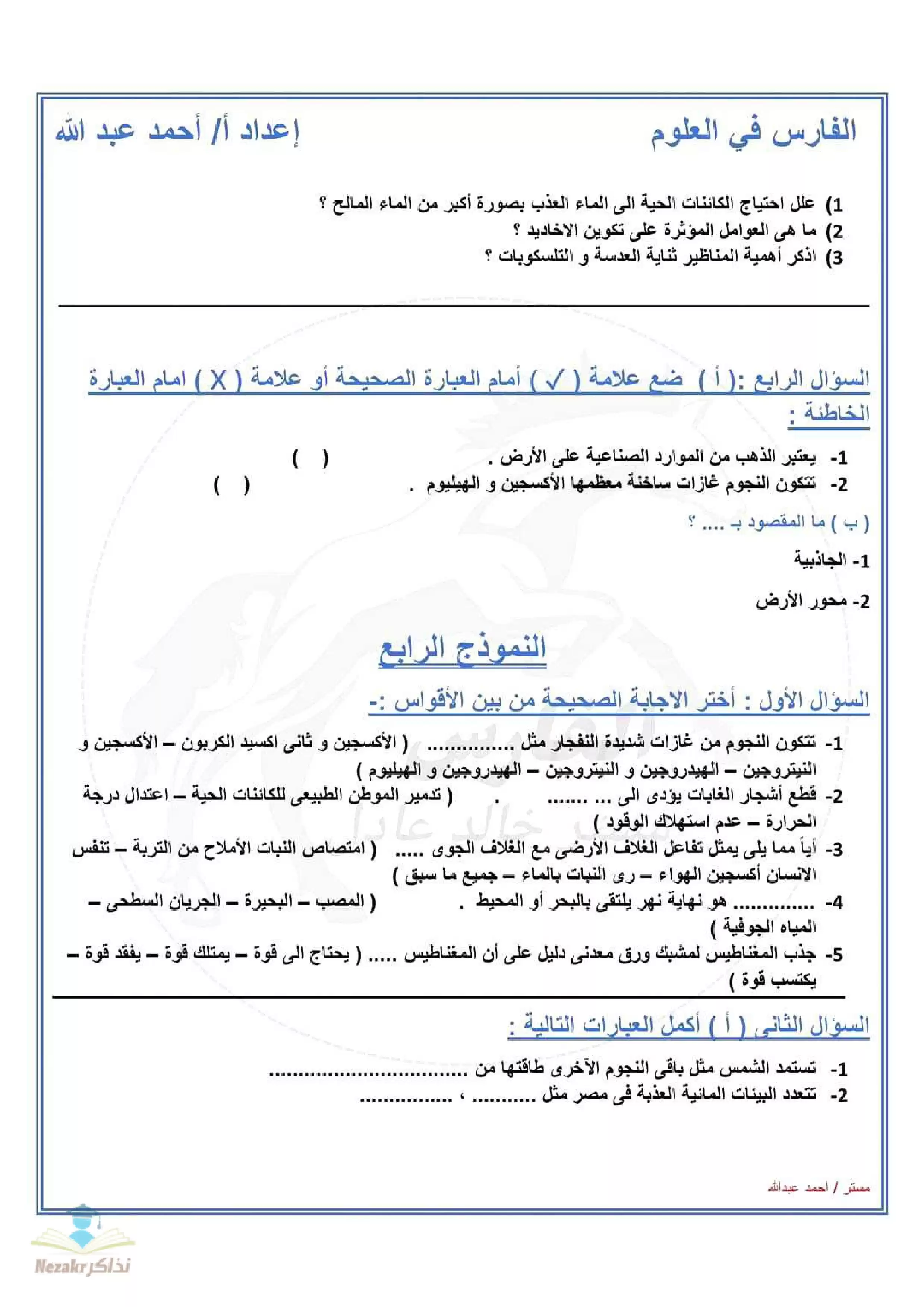 صفحة 4 من 25 صفحة من ملف: بنك أسئلة الفارس في العلوم الصف الخامس الابتدائي الترم الثاني - Nezakr