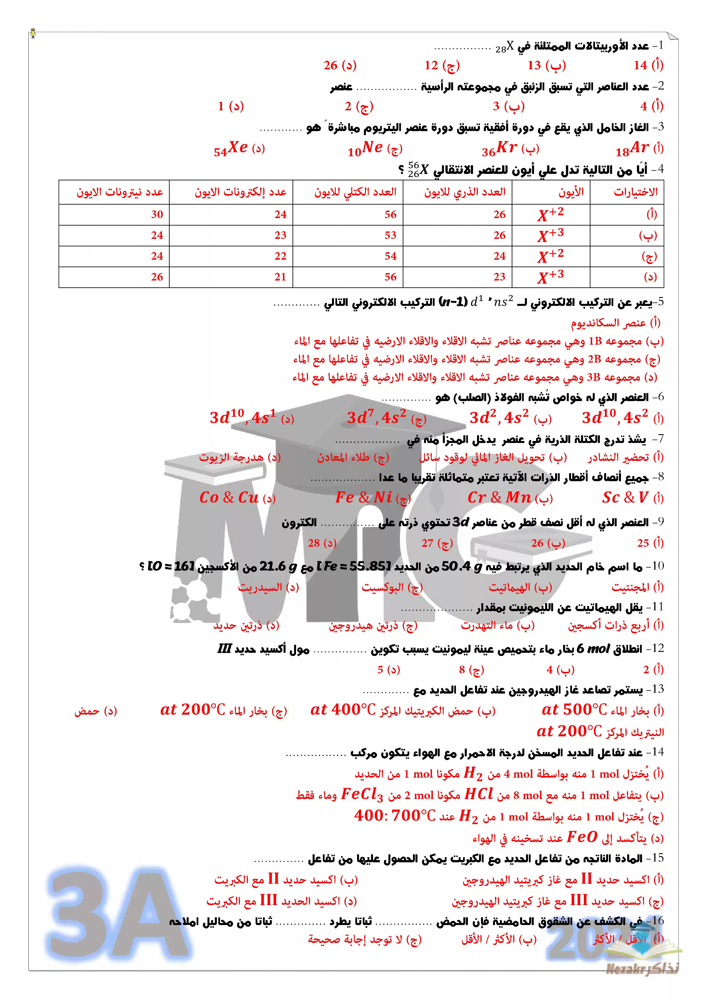 | بيانات الملف: (مجمع امتحانات 100 سؤال مع إجاباتها النموذجية في الكيمياء للثانوية العامة أ محمد عبدالجواد - Nezakr) | |