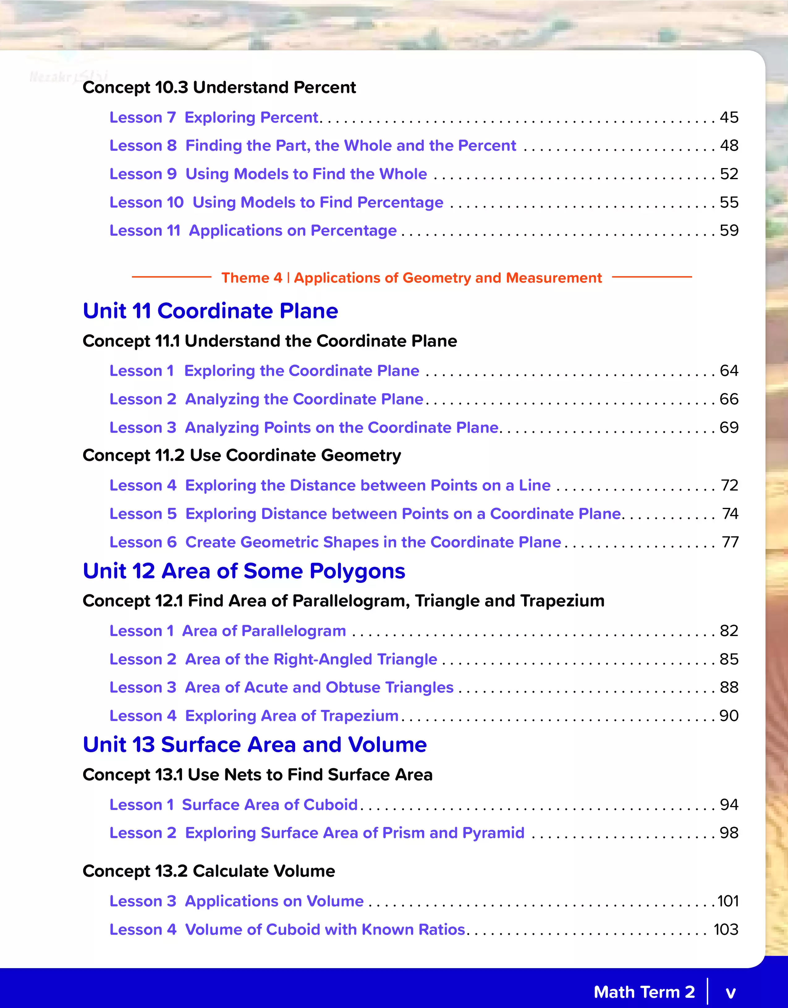 وعن محتوى منهج الماث للصف السادس الابتدائي للفصل الدراسي الثاني فقد تم تضمين الموضوعات التالية ضمن المنهج الجديد لمادة Math لساتة ابتدائي وهي: