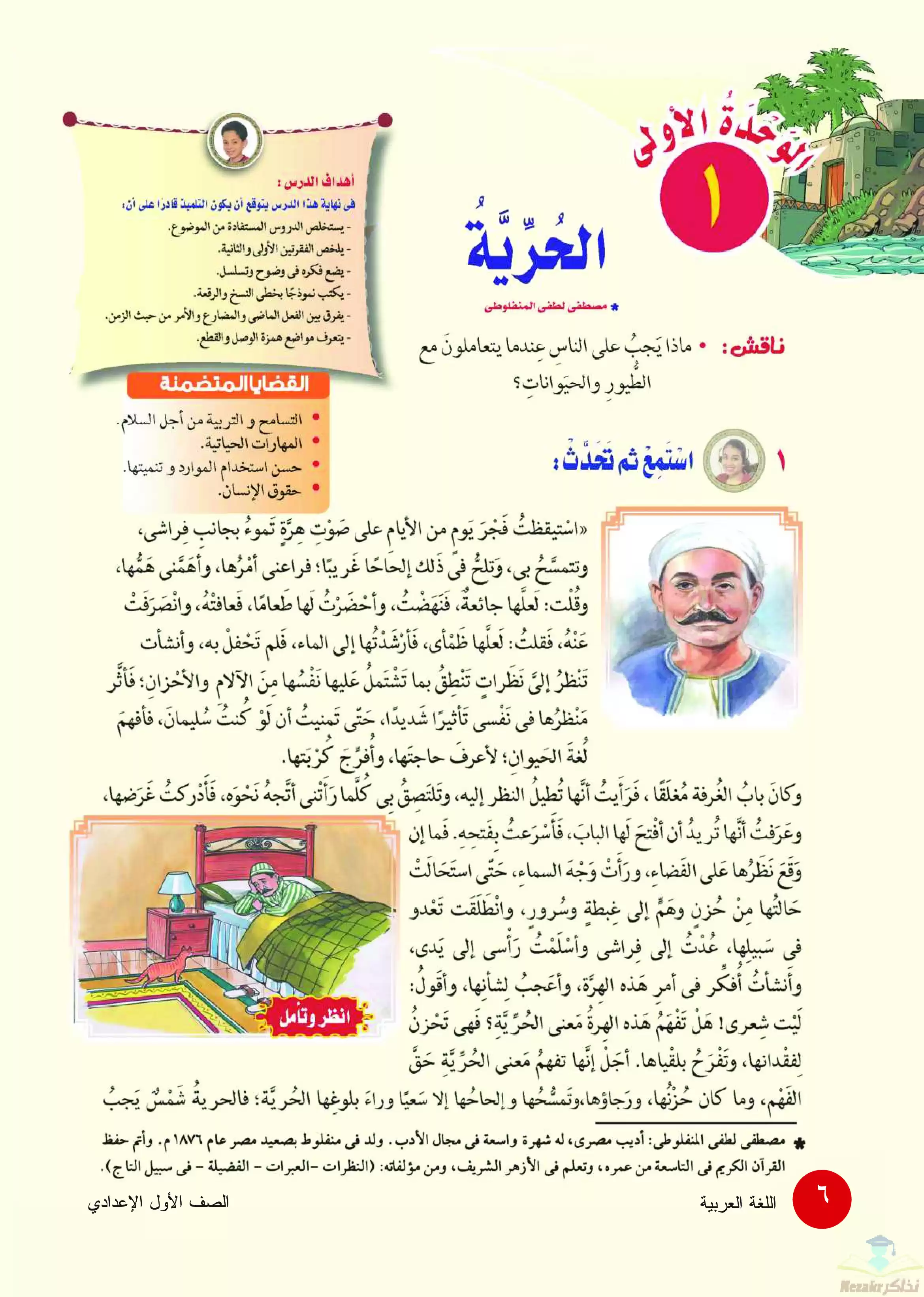 وعن محتوى منهج اللغة العربية للصف الأول الإعدادي فقد تم تضمين الموضوعات التالية ضمن المنهج الجديد لمادة اللغة العربية لاولى اعدادي وهي: