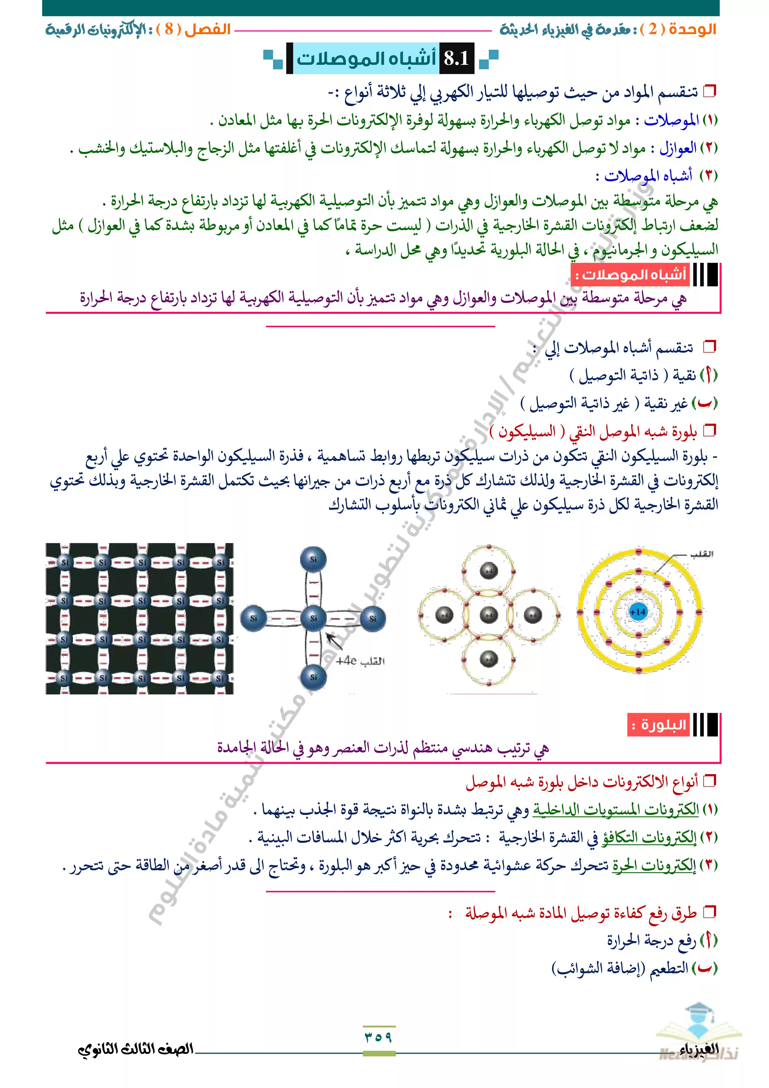 • كتاب مفاهيم ومصطلحات وأسئلة الوزارة في الفيزياء للصف الثالث الثانوي (الفصل الثامن الإلكترونيات الحديثة)