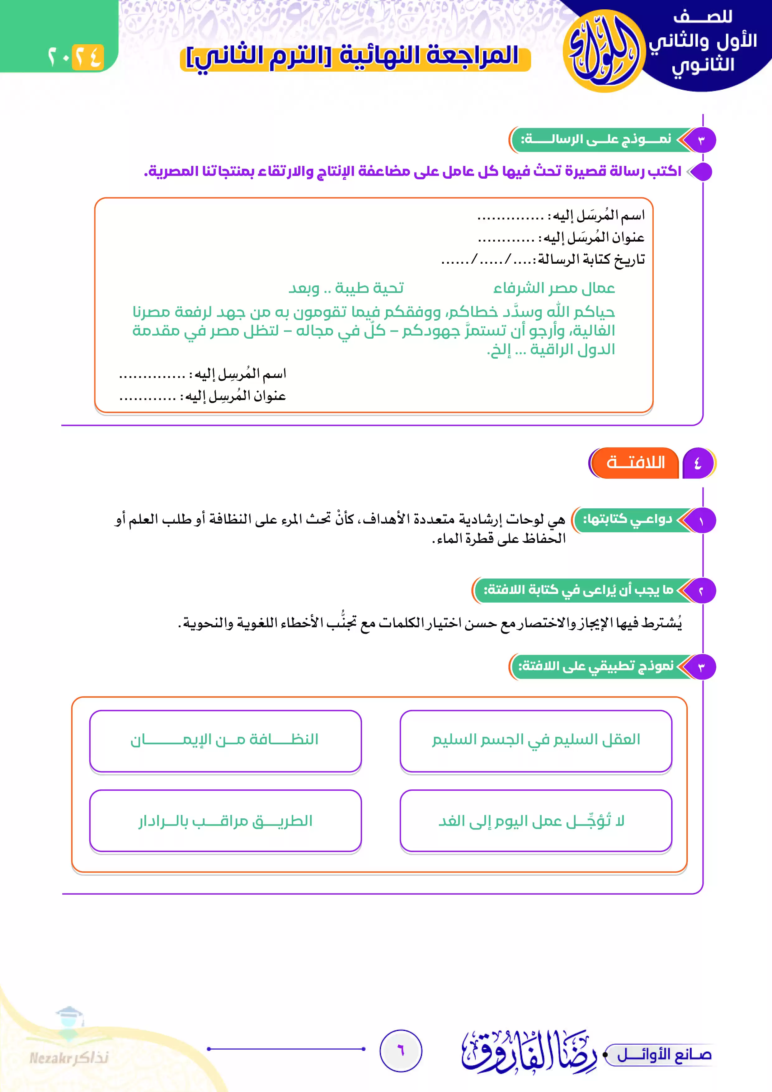 | بيانات الملف: (ملزمة ليلة الامتحان في التعبير للصفين الأول والثاني الثانوي (اللواء - رضا الفاروق صانع الأوائل) - Nezakr) | |