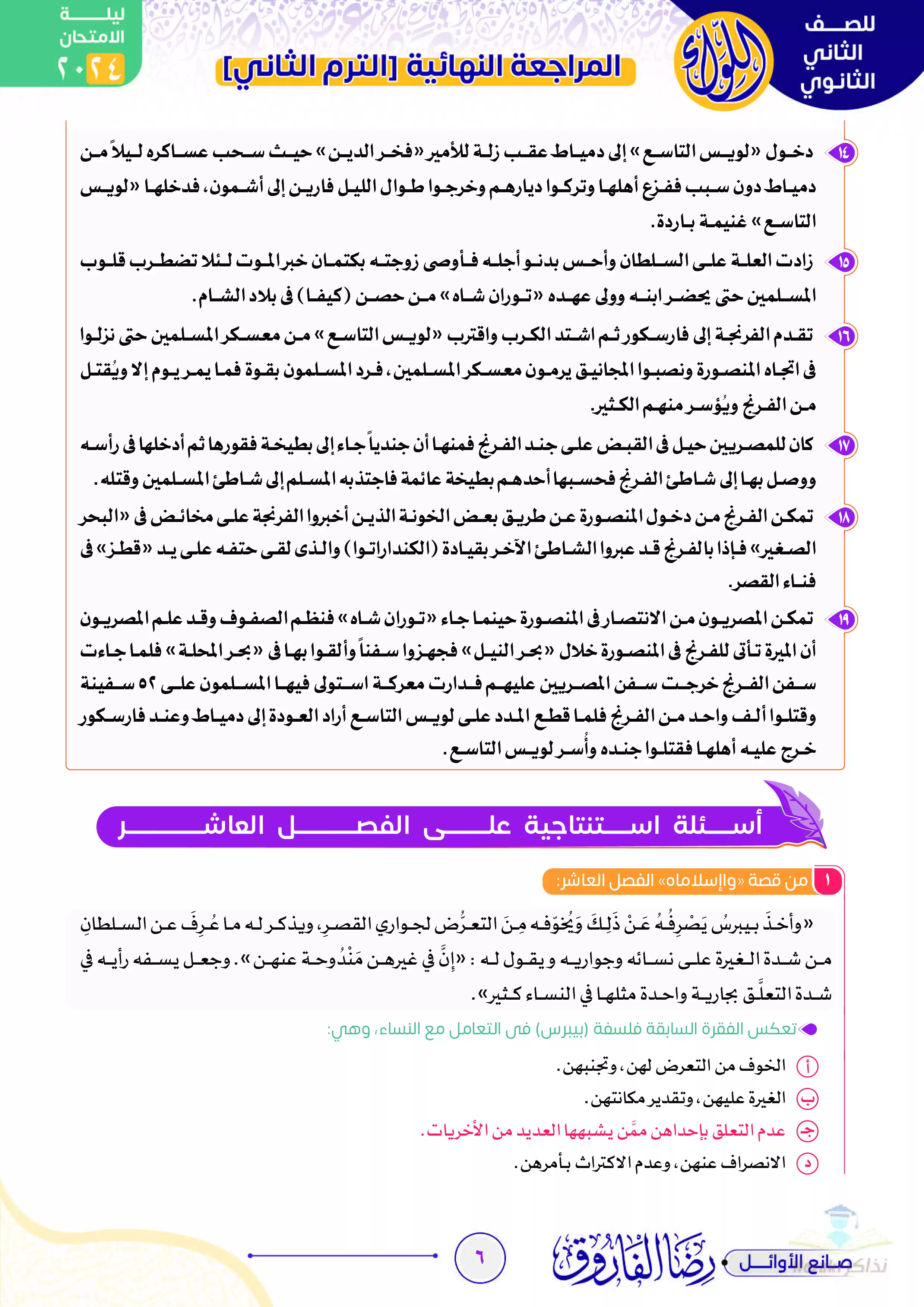 صفحة 6 من 22 صفحة من ملف: مراجعة وأسئلة ليلة الامتحان في قصة واإسلاماه للصف الثاني الثانوي الترم الثاني (رضا الفاروق)