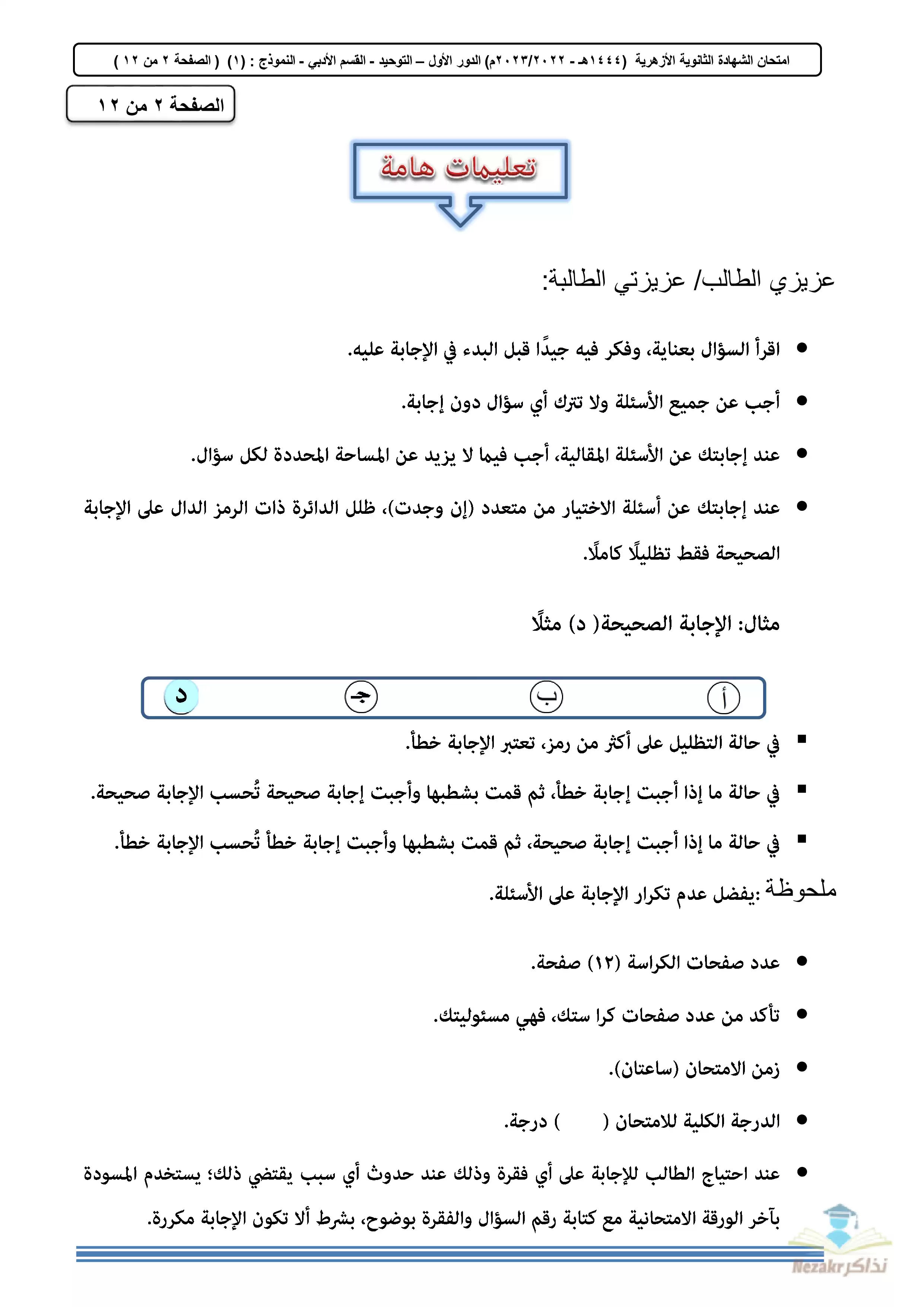 صفحة 2 من 84 صفحة من ملف: تجميع الامتحان التجريبي في المواد الشرعية للثانوية الأزهرية القسم الأدبي 2023 - Nezakr