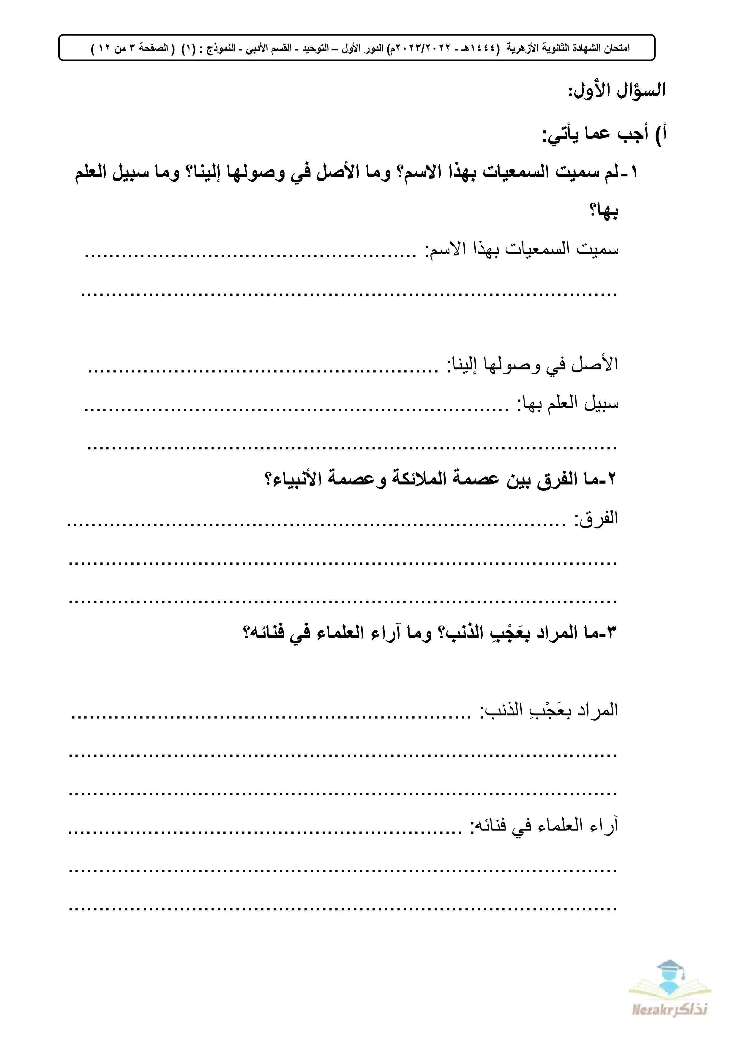 صفحة 3 من 84 صفحة من ملف: تجميع الامتحان التجريبي في المواد الشرعية للثانوية الأزهرية القسم الأدبي 2023 - Nezakr