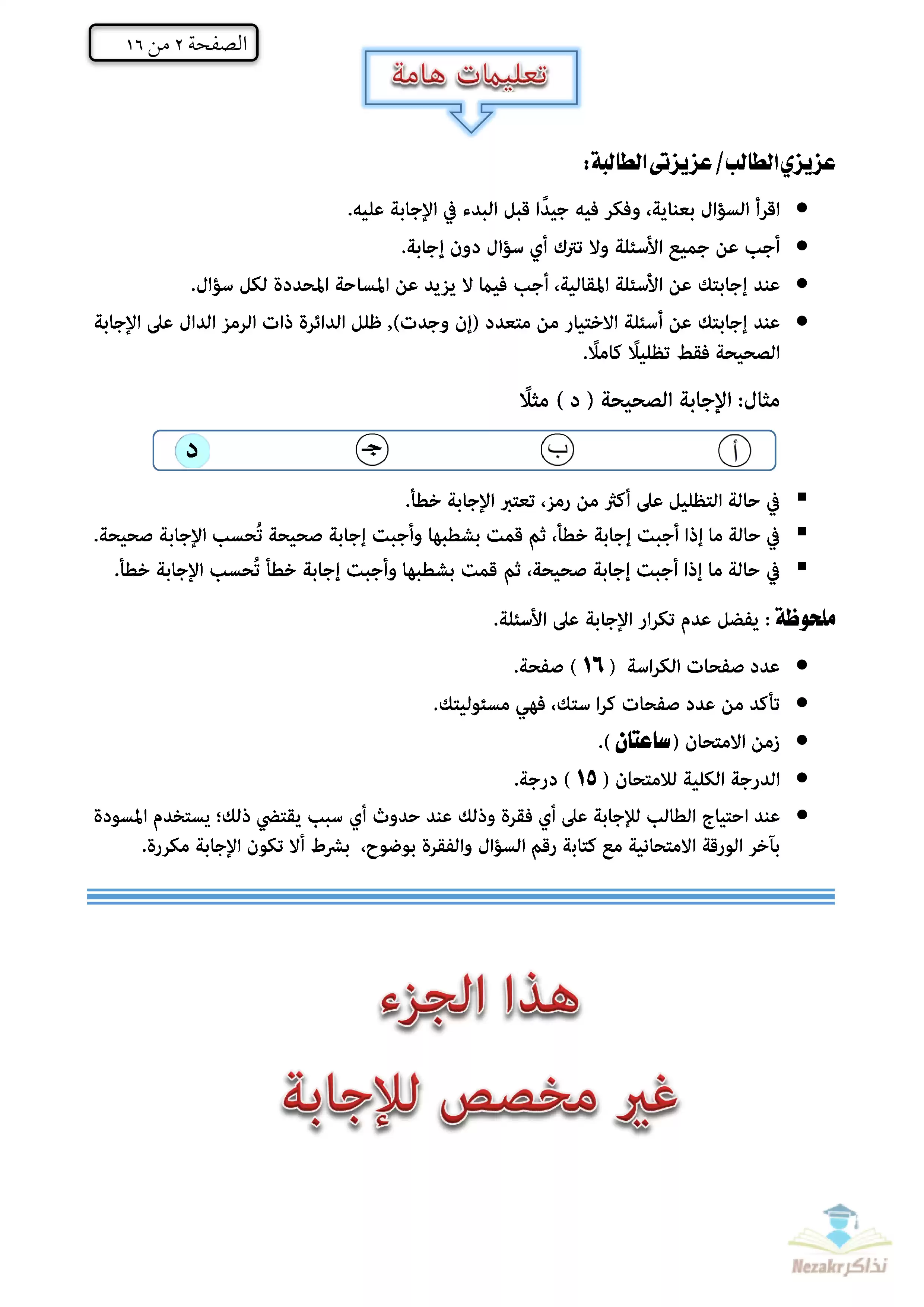 صفحة 2 من 16 صفحة من ملف: الامتحان التجريبي في التفاضل والتكامل للشهادة الثانوية الأزهرية 2023 - Nezakr