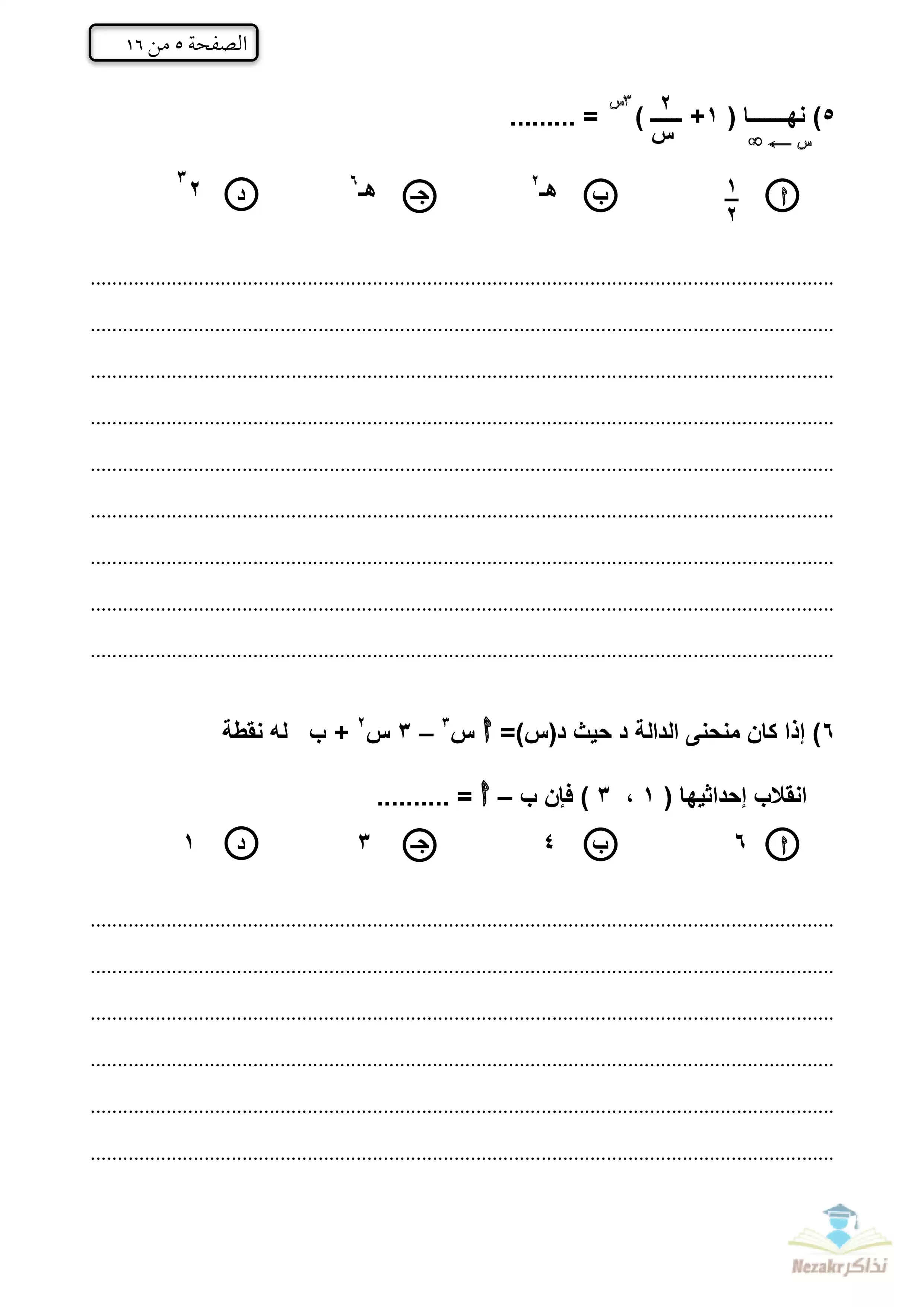 صفحة 5 من 16 صفحة من ملف: الامتحان التجريبي في التفاضل والتكامل للشهادة الثانوية الأزهرية 2023 - Nezakr