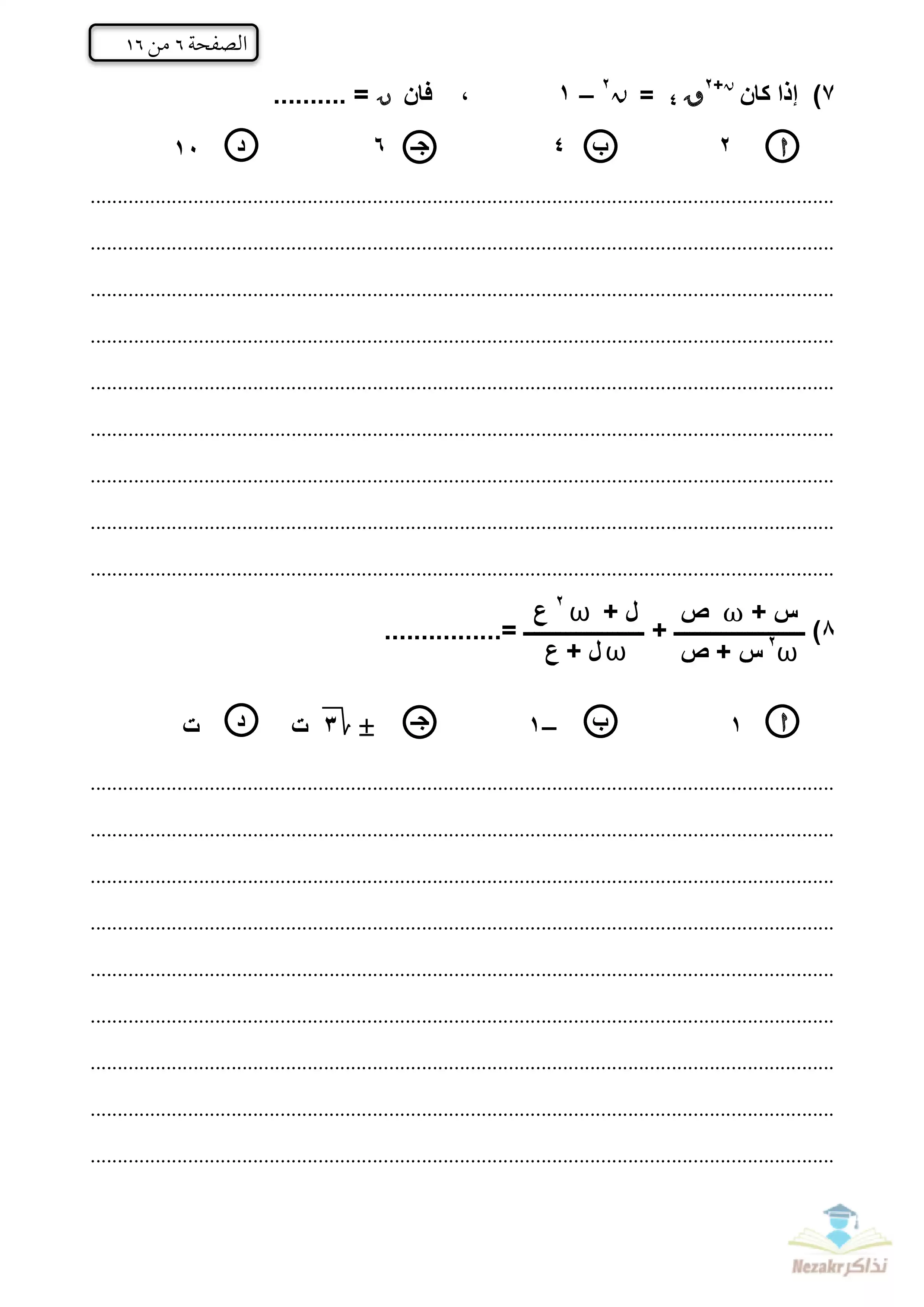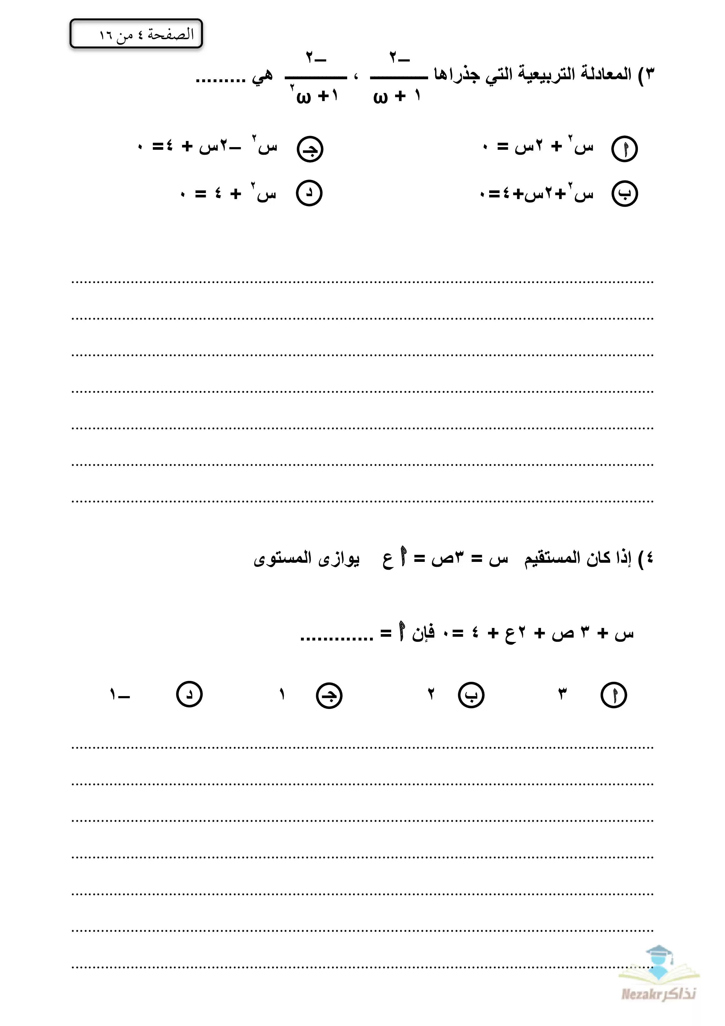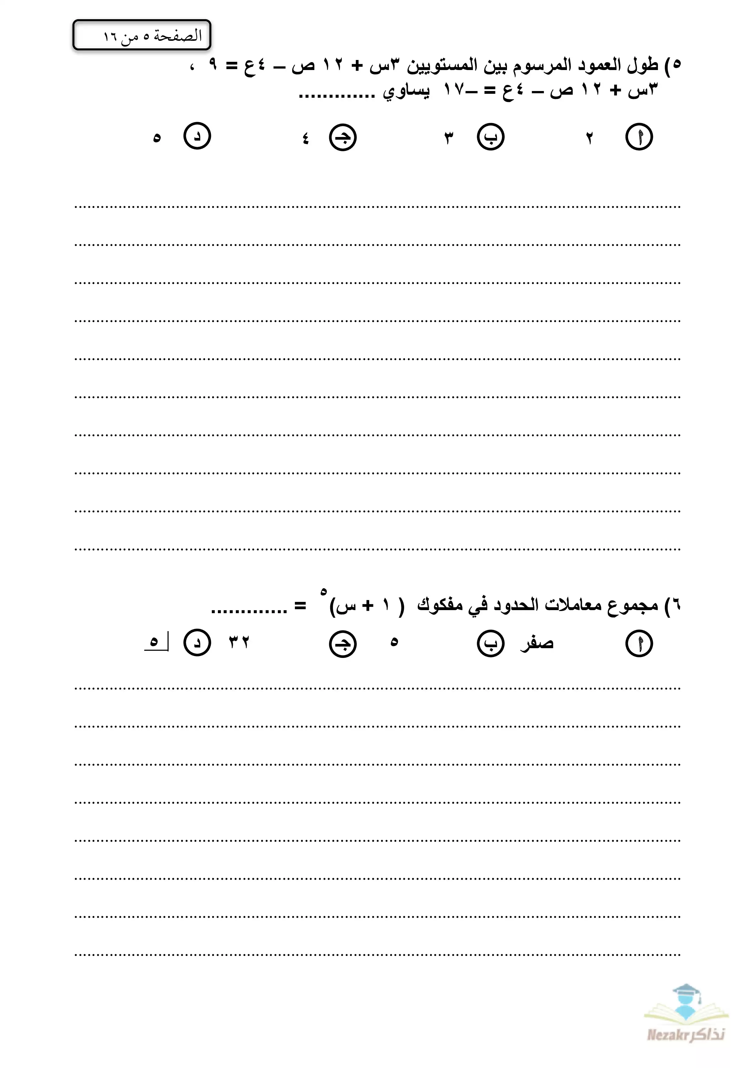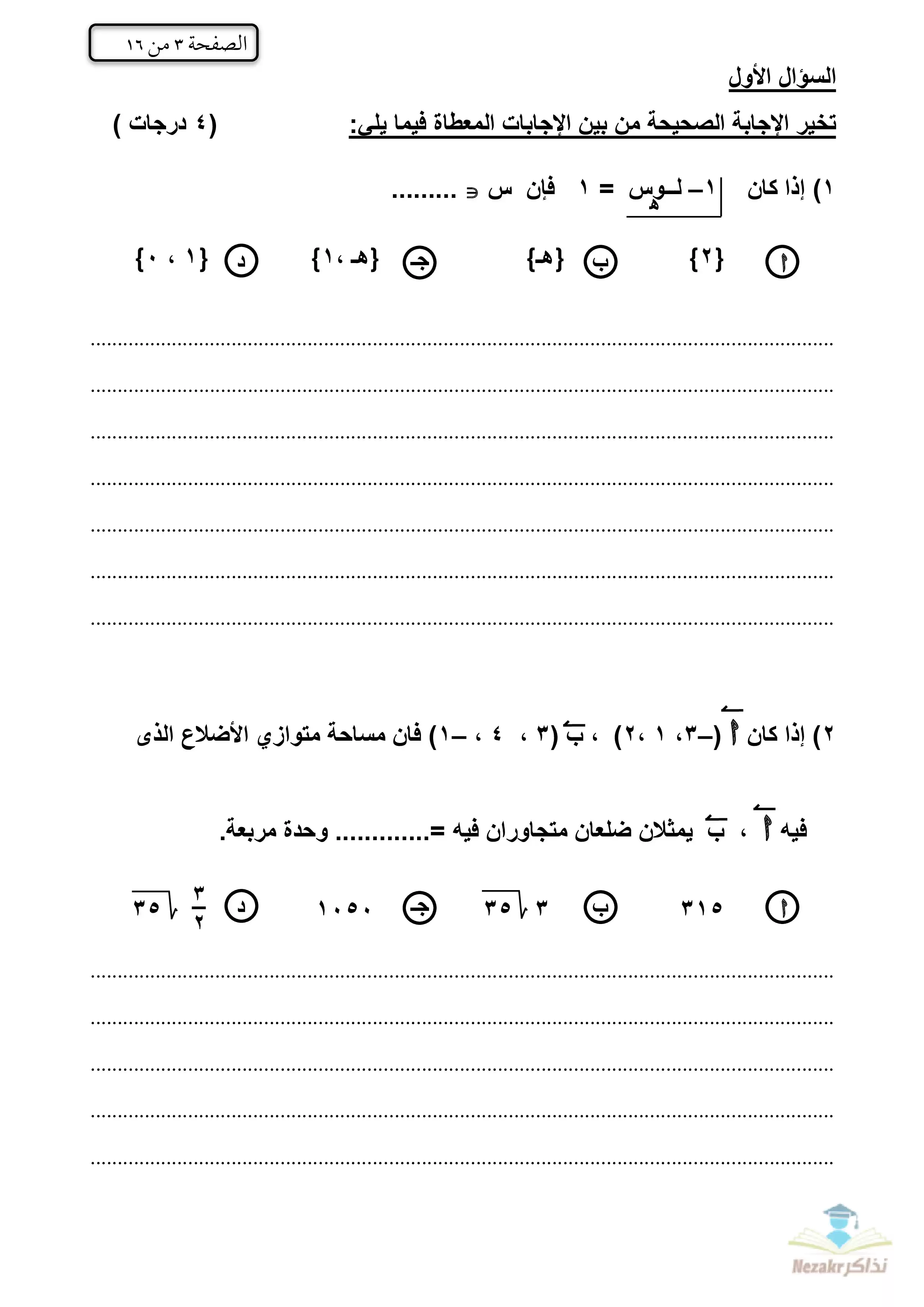 | بيانات الملف: (الامتحان التجريبي في الجبر والهندسة الفراغية للشهادة الثانوية الأزهرية 2023 - Nezakr) | |