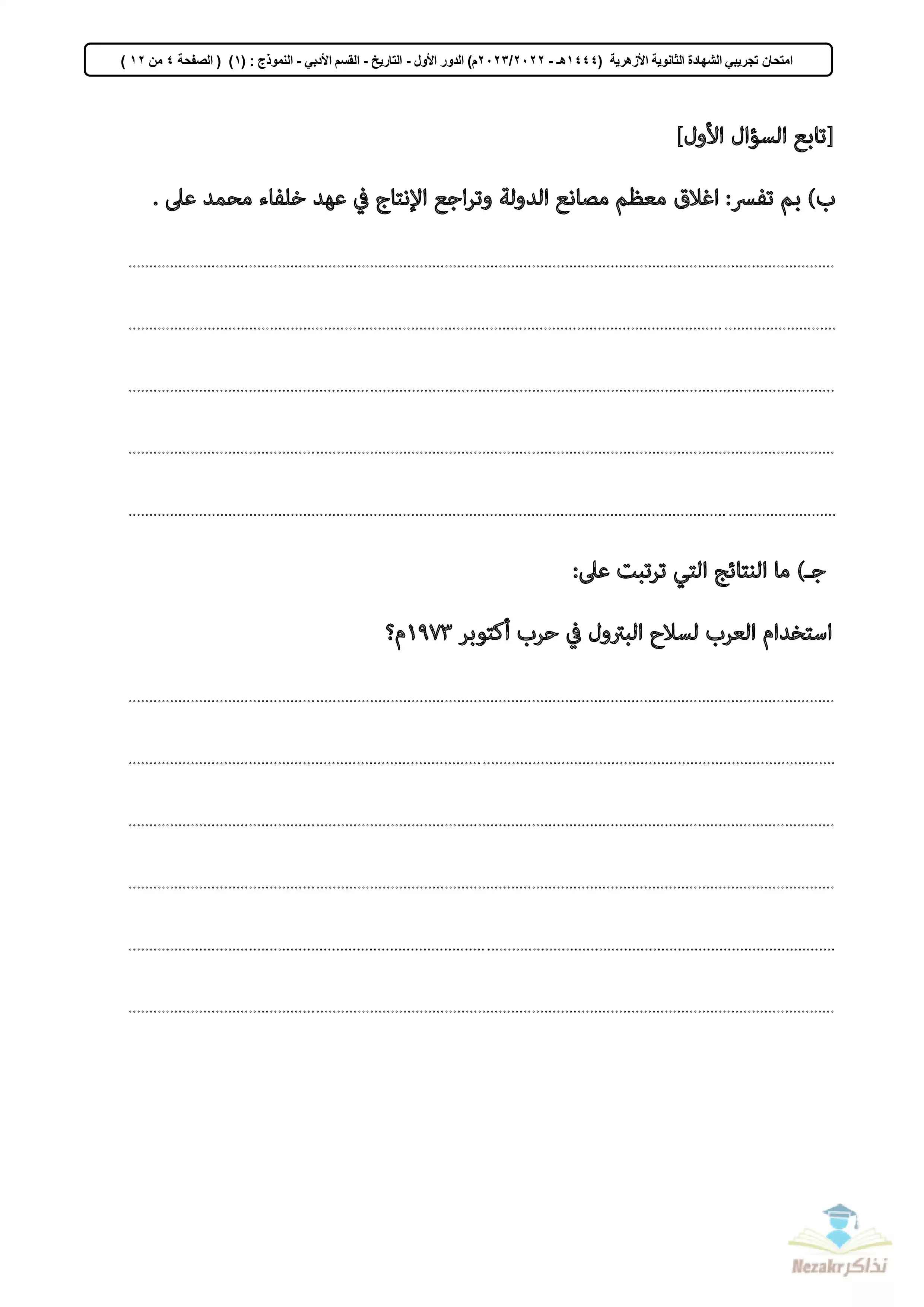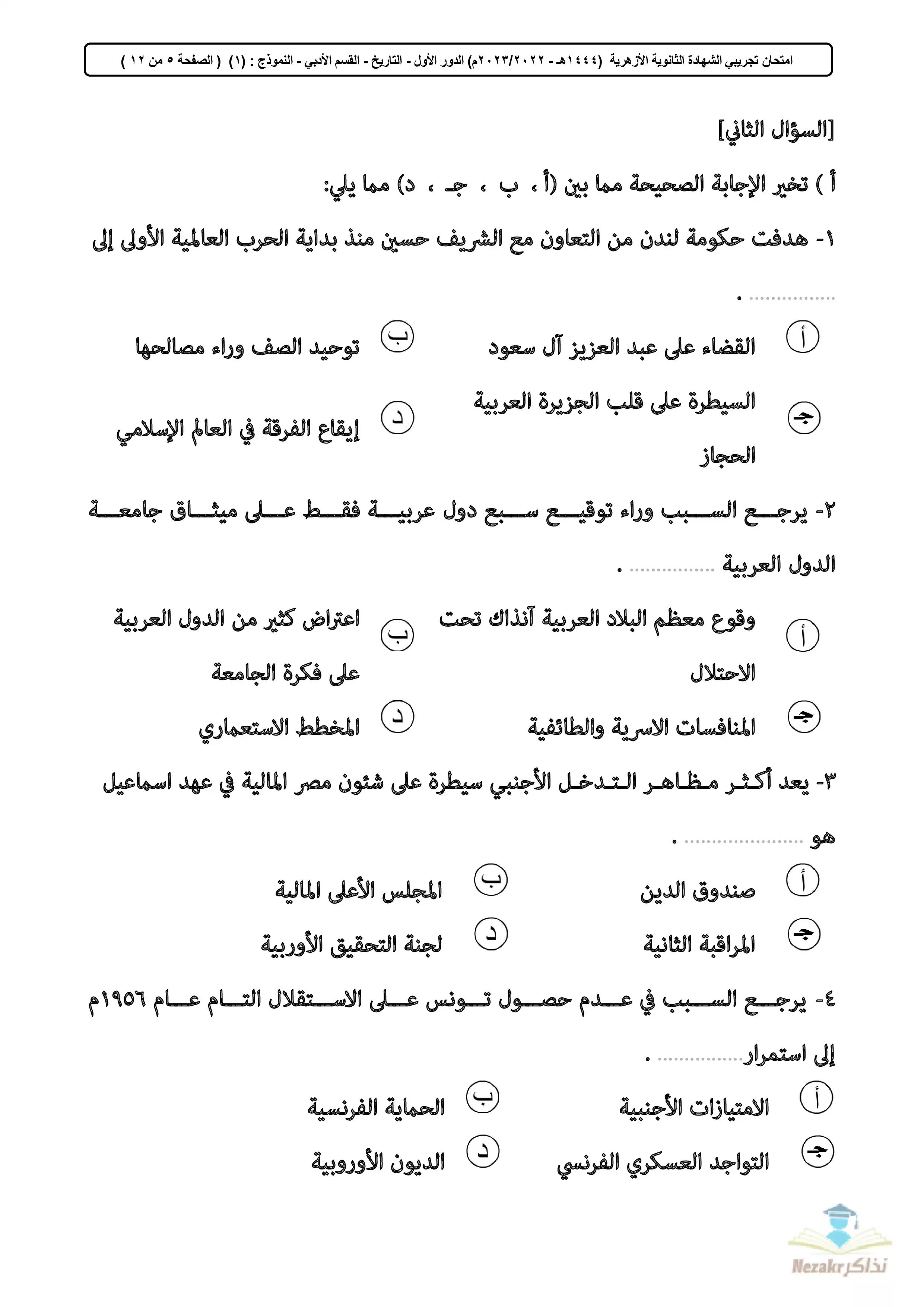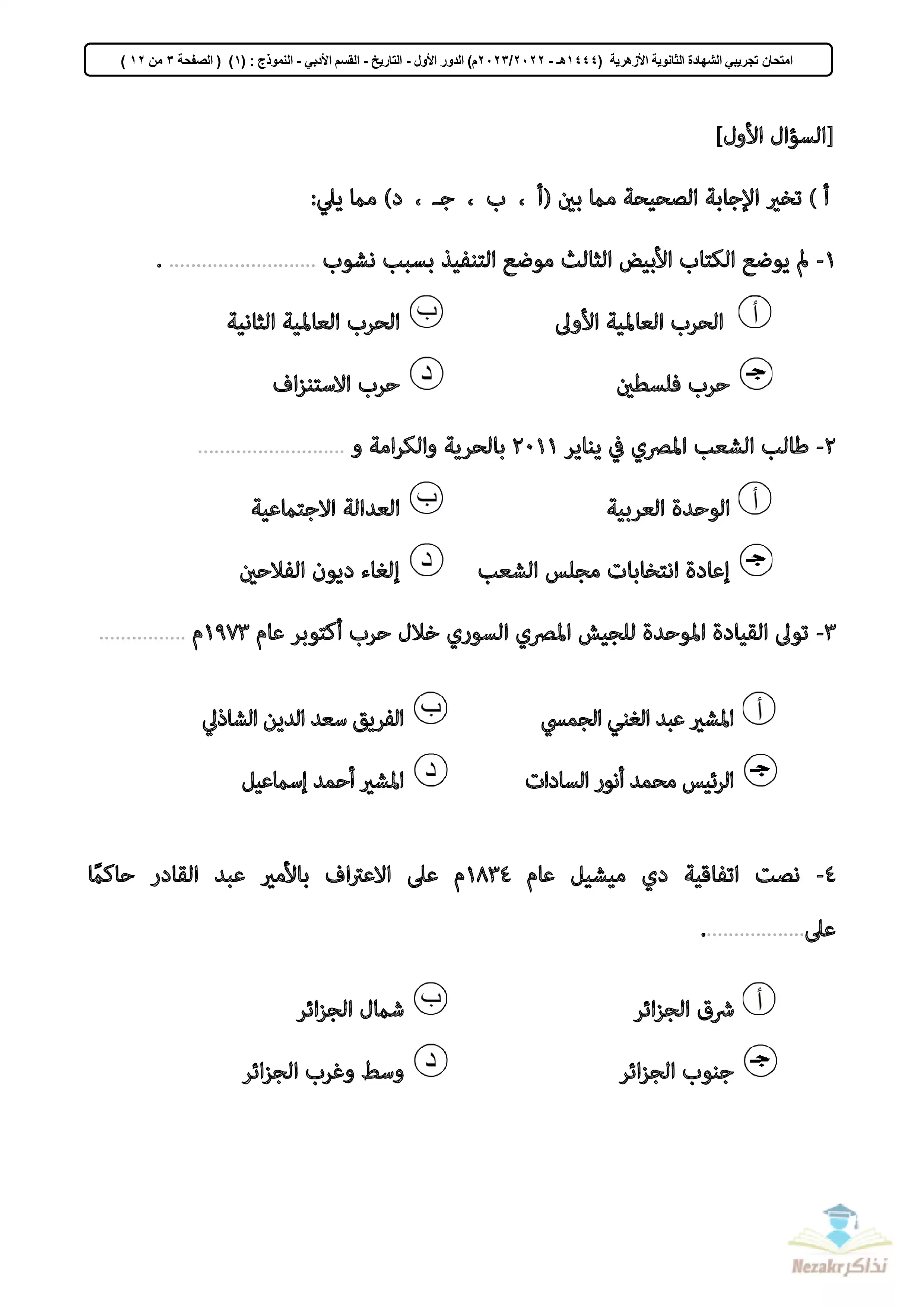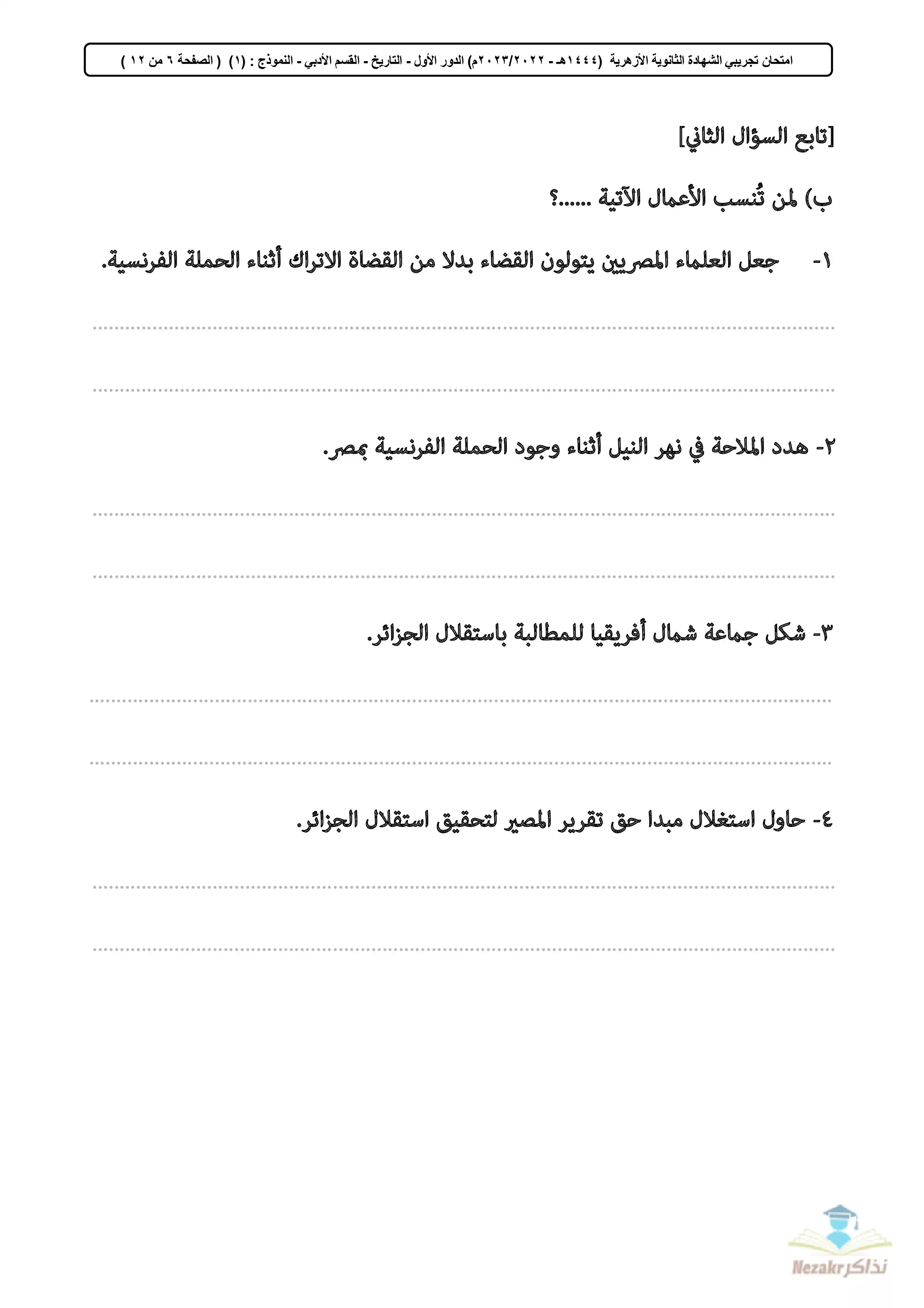 | بيانات الملف: (الامتحان التجريبي في التاريخ للشهادة الثانوية الأزهرية 2023 - Nezakr) | |