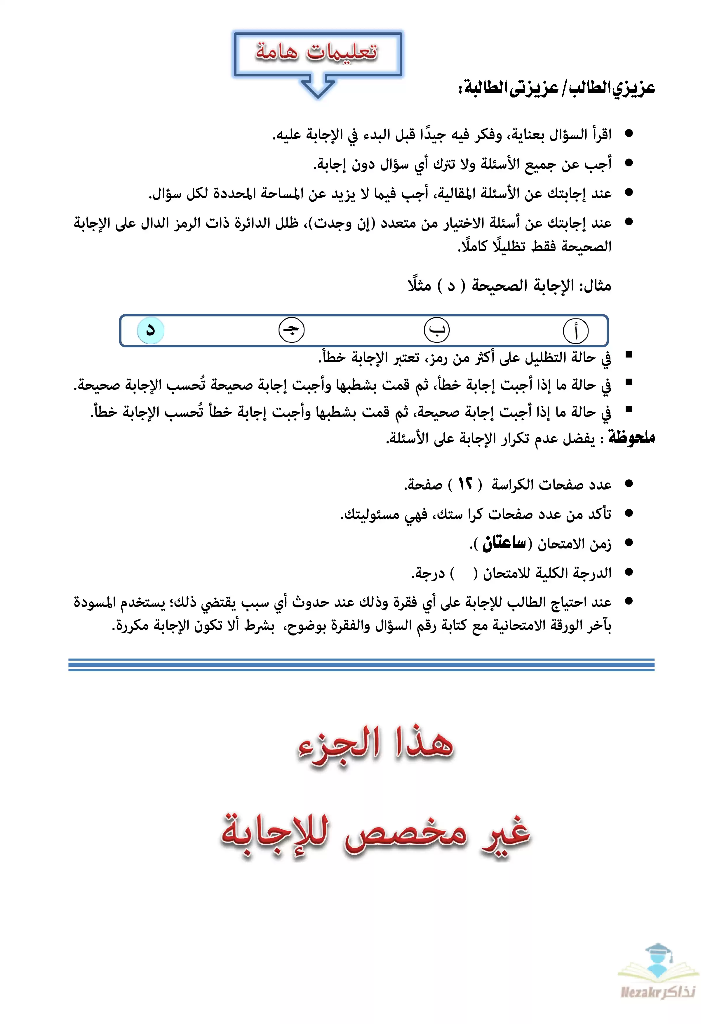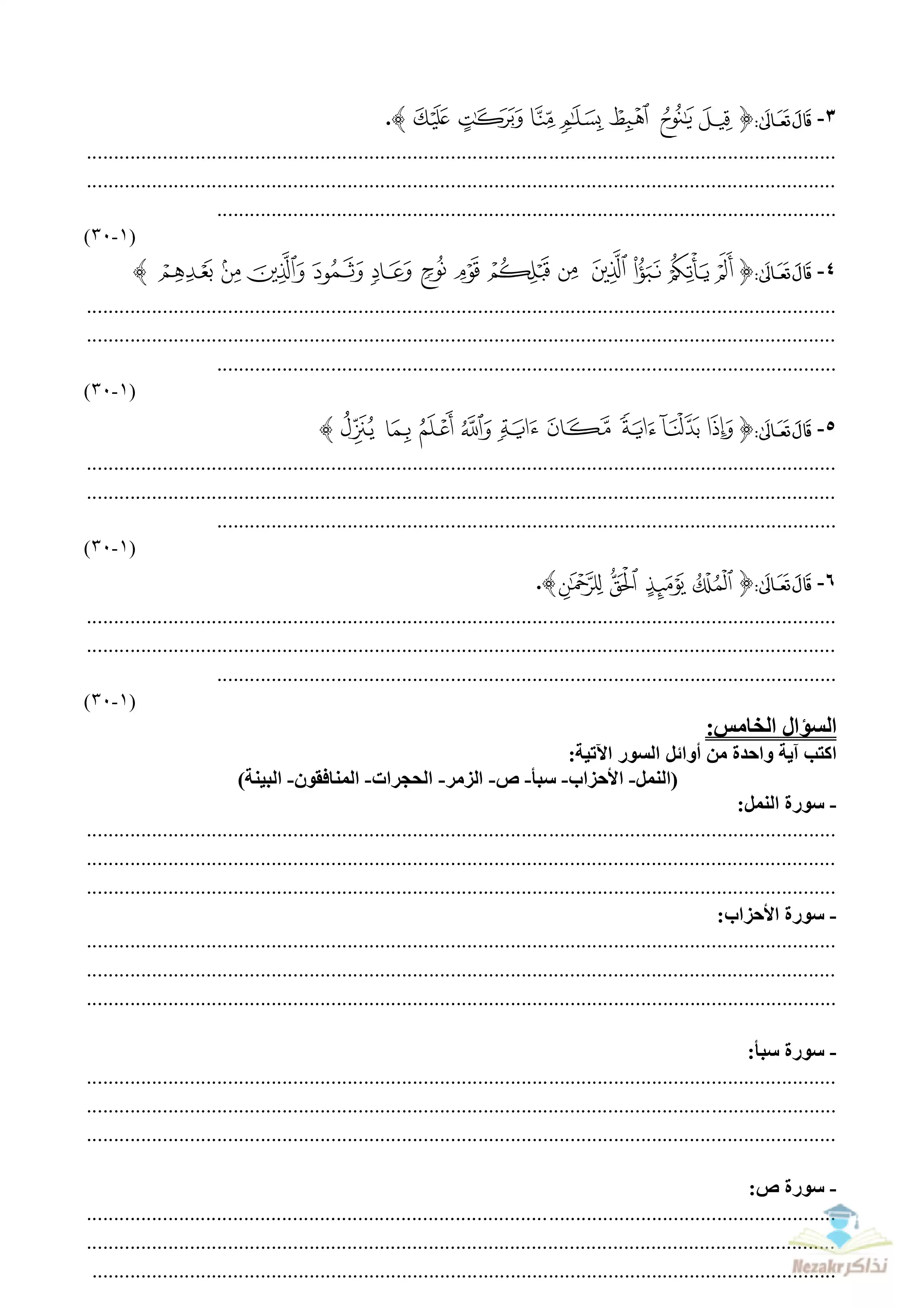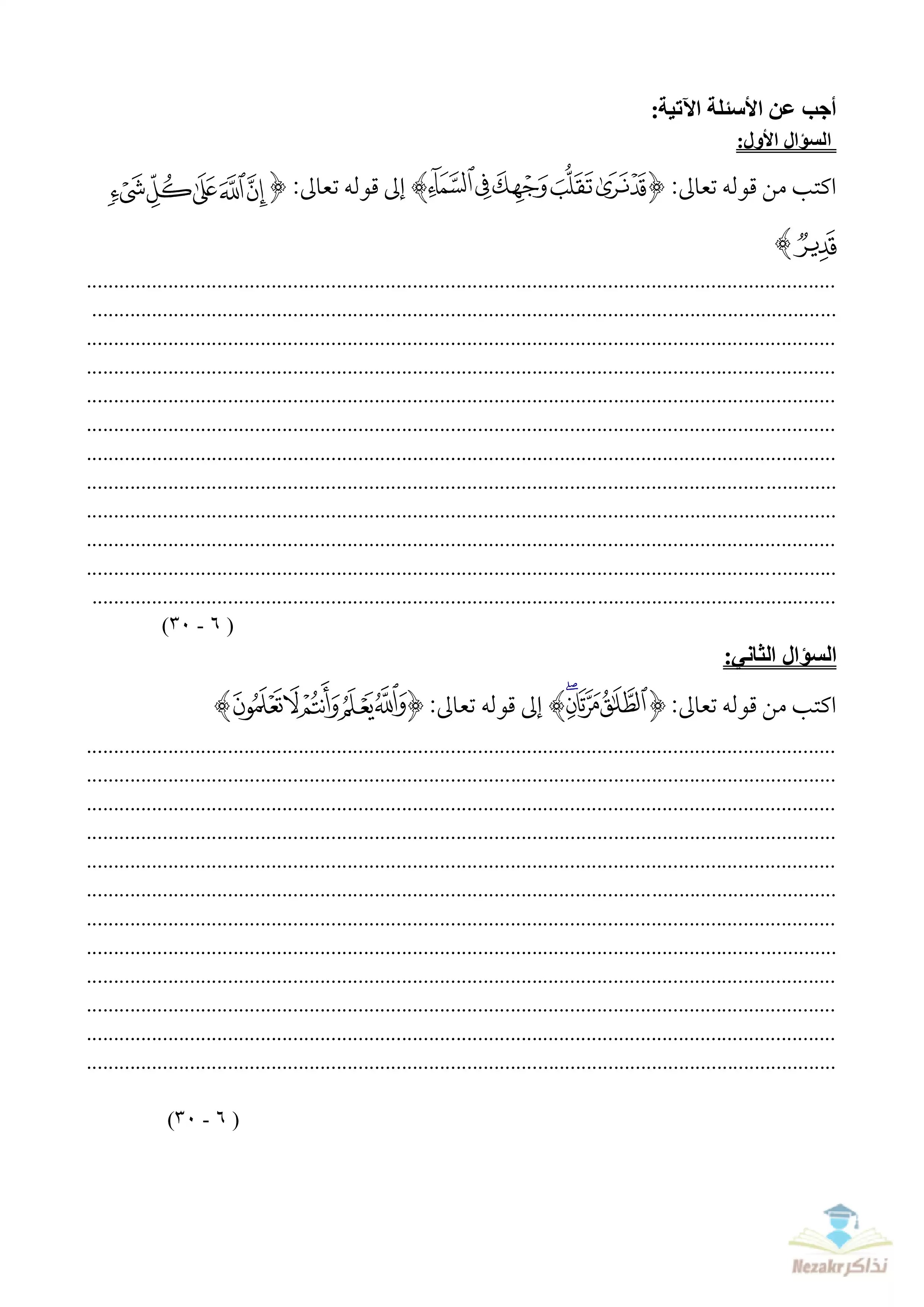 | بيانات الملف: (الامتحان التجريبي في القرآن الكريم للشهادة الثانوية الأزهرية 2023 - Nezakr) | |