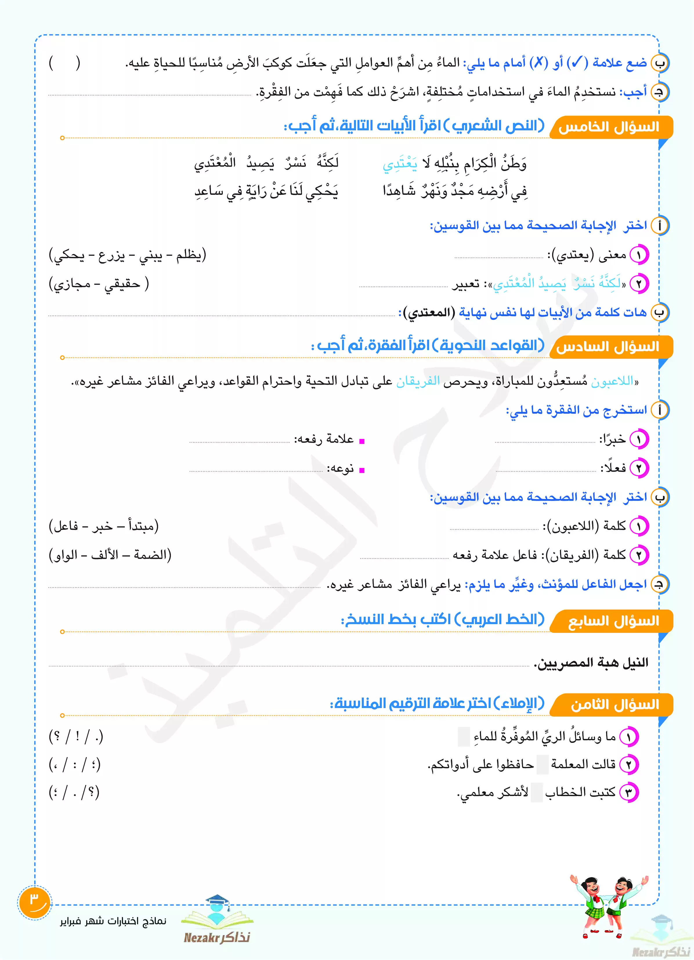 صفحة 3 من 155 صفحة من ملف: مراجعة مادة اللغة العربية للصف الرابع الابتدائي شهر فبراير 2024