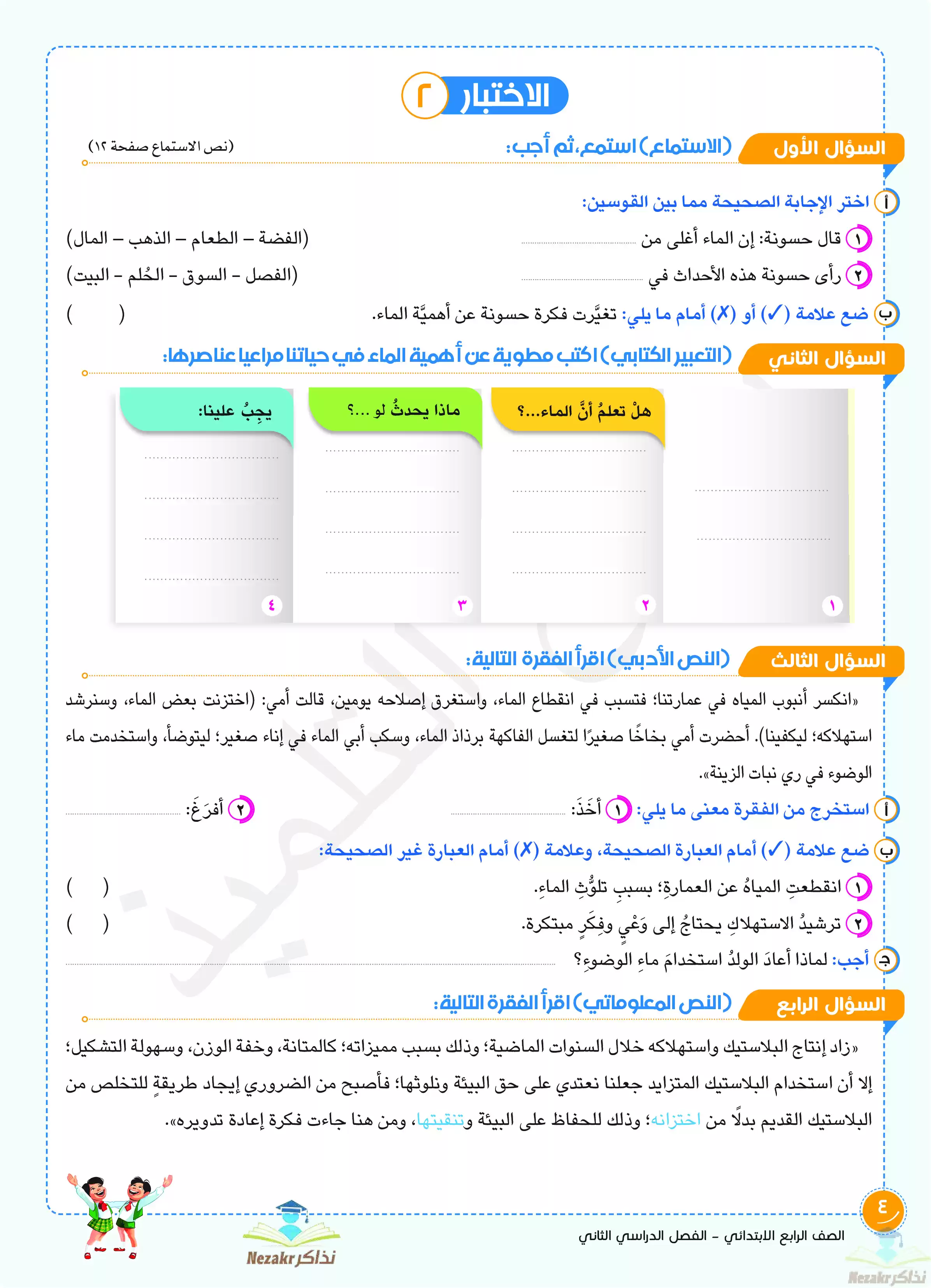صفحة 4 من 155 صفحة من ملف: مراجعة مادة اللغة العربية للصف الرابع الابتدائي شهر فبراير 2024