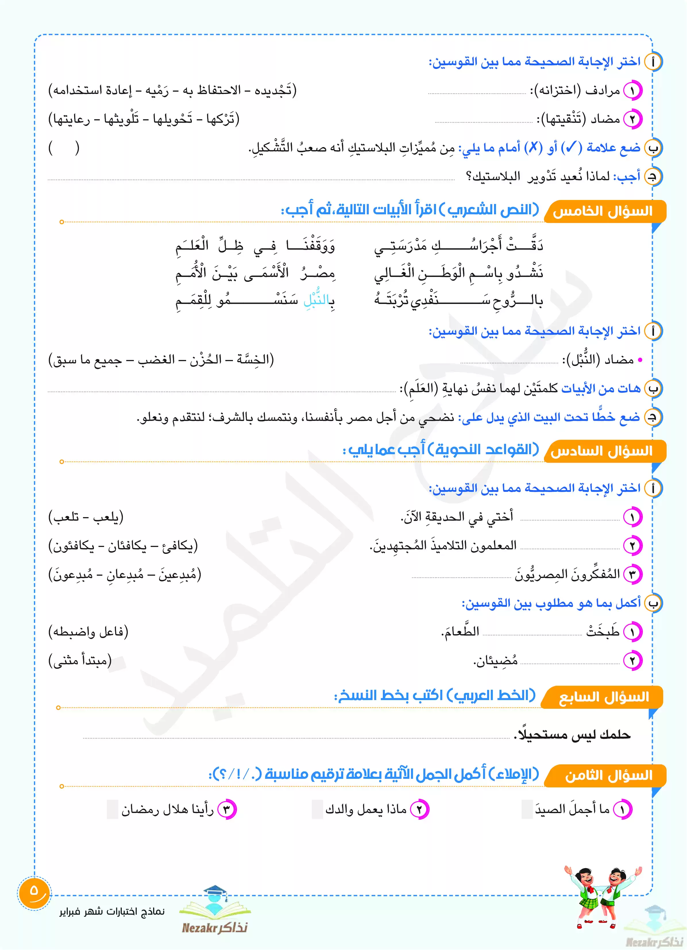 5. الشاطر مراجعة شهر فبراير لغة عربية.
