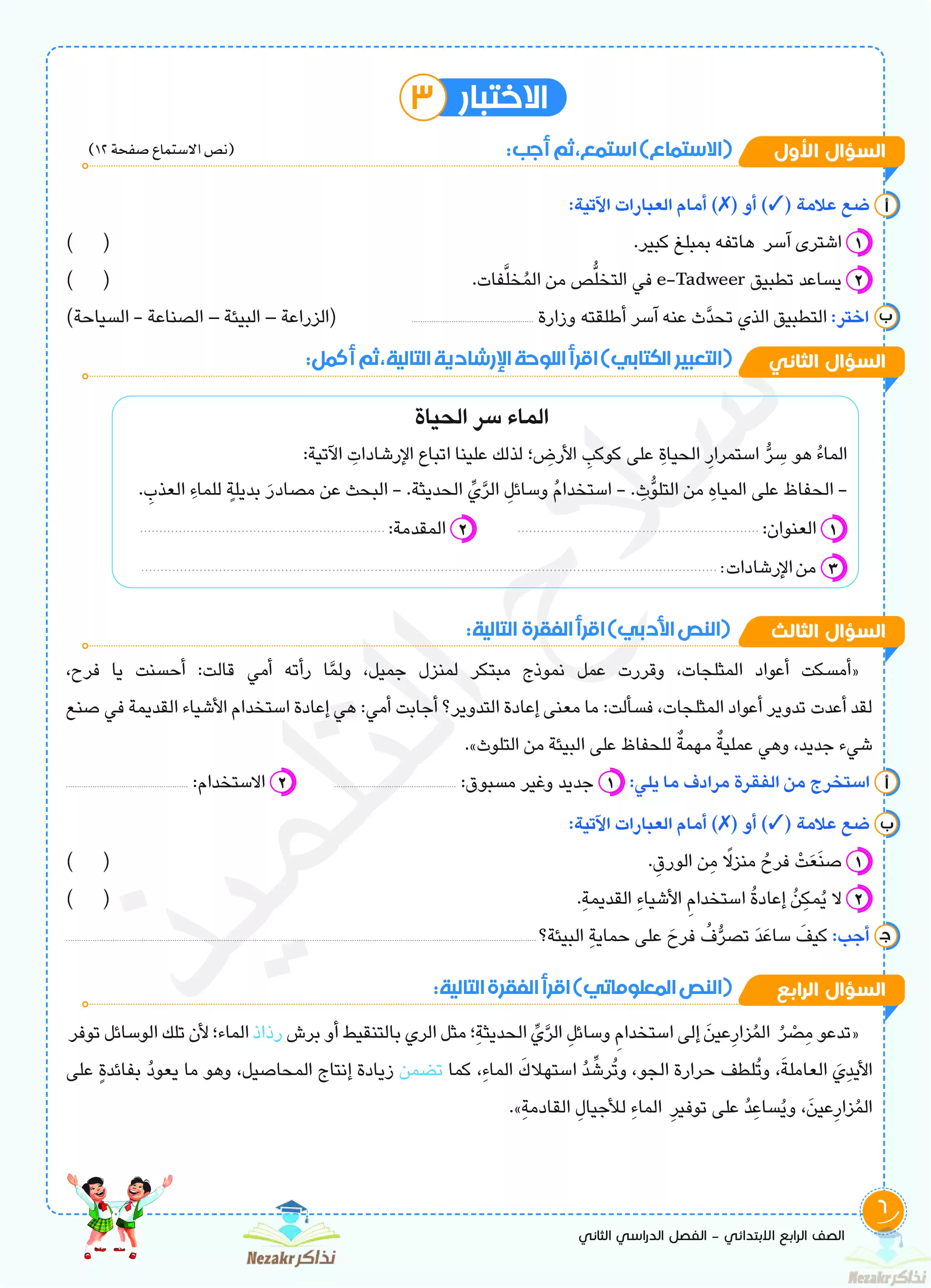 صفحة 6 من 155 صفحة من ملف: مراجعة مادة اللغة العربية للصف الرابع الابتدائي شهر فبراير 2024