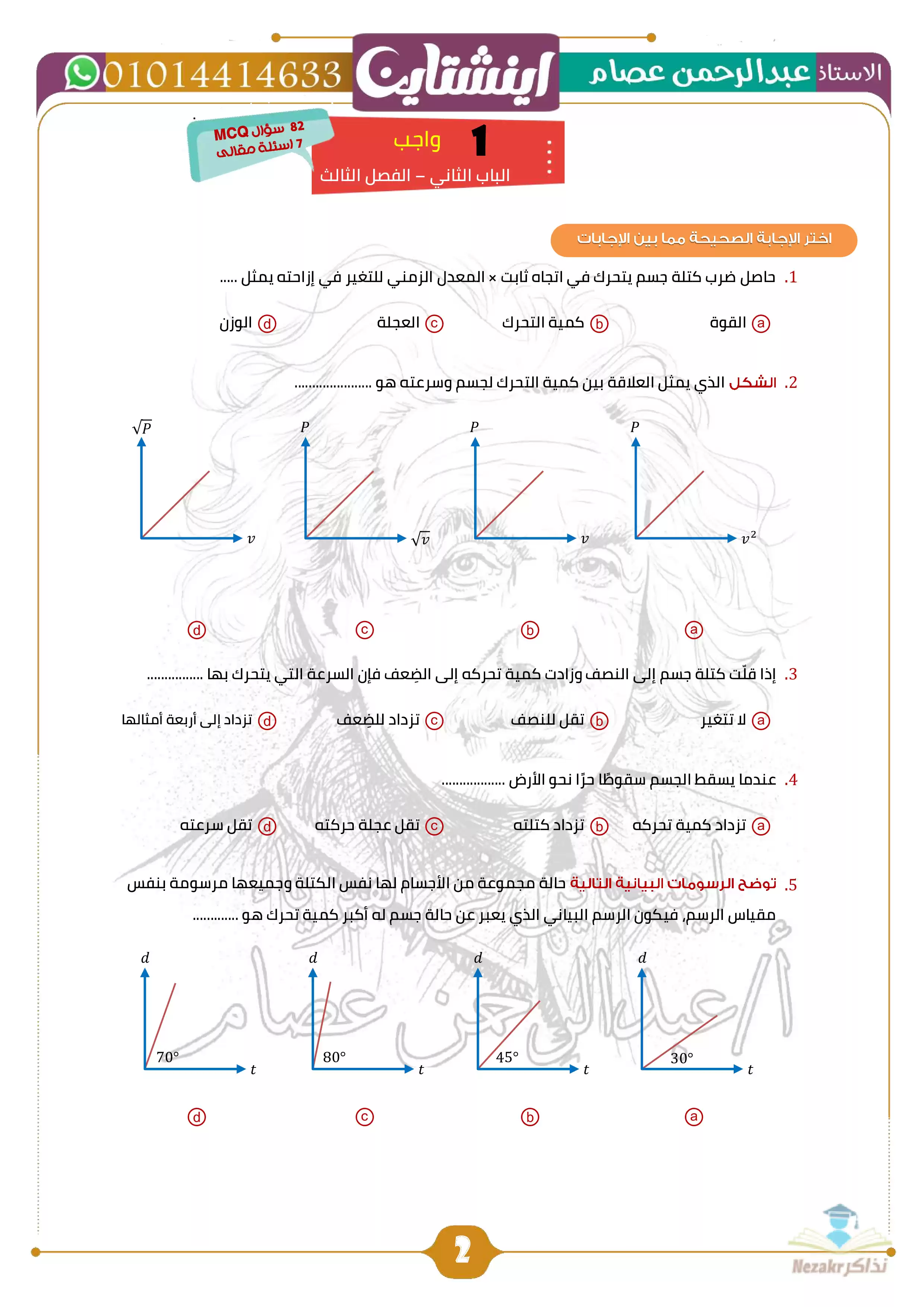 صفحة 2 من 94 صفحة من ملف: مذكرة أينشتاين في الفيزياء جزء التدريبات للصف الأول الثانوي الترم الثاني - Nezakr