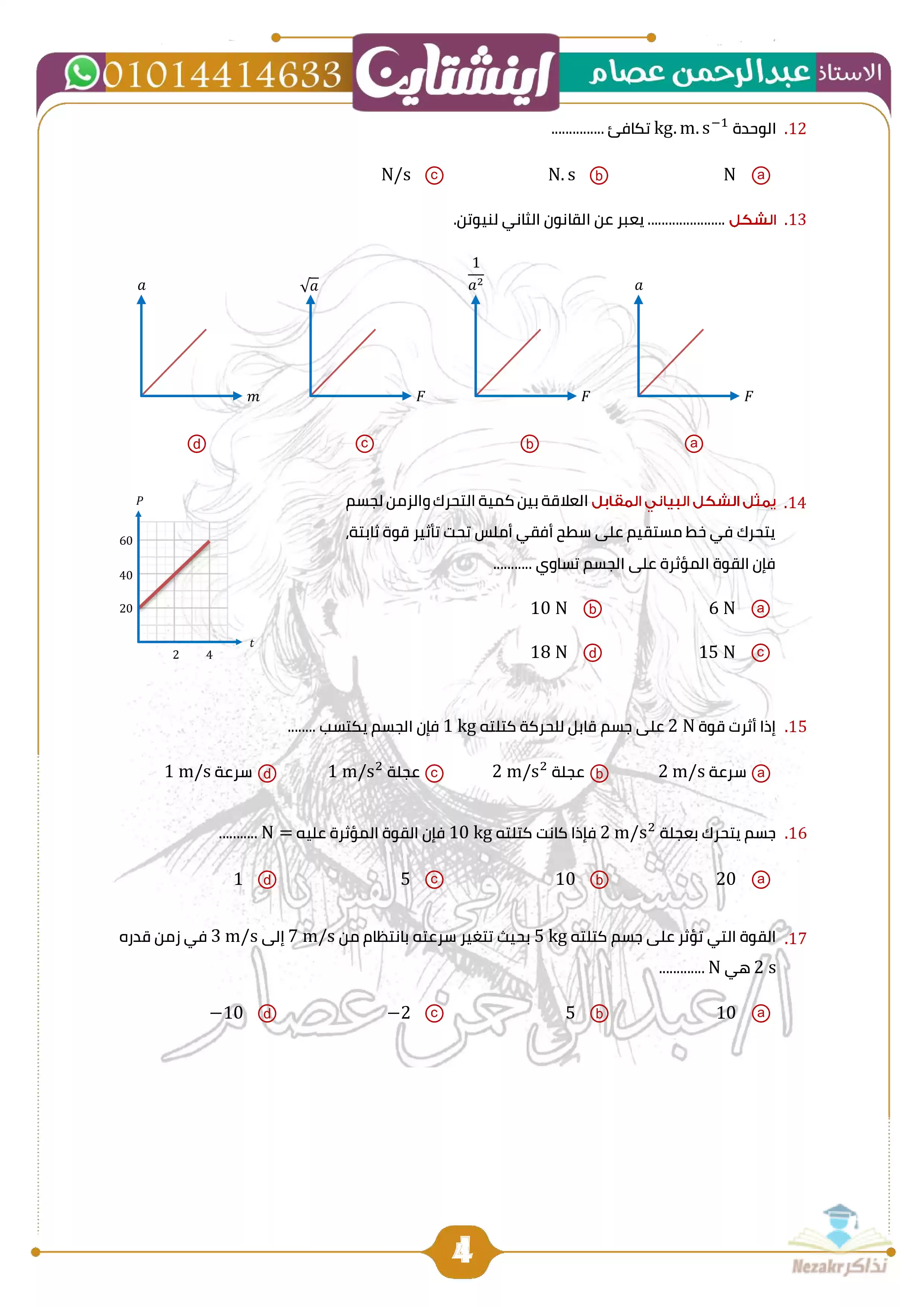 صفحة 4 من 94 صفحة من ملف: مذكرة أينشتاين في الفيزياء جزء التدريبات للصف الأول الثانوي الترم الثاني - Nezakr