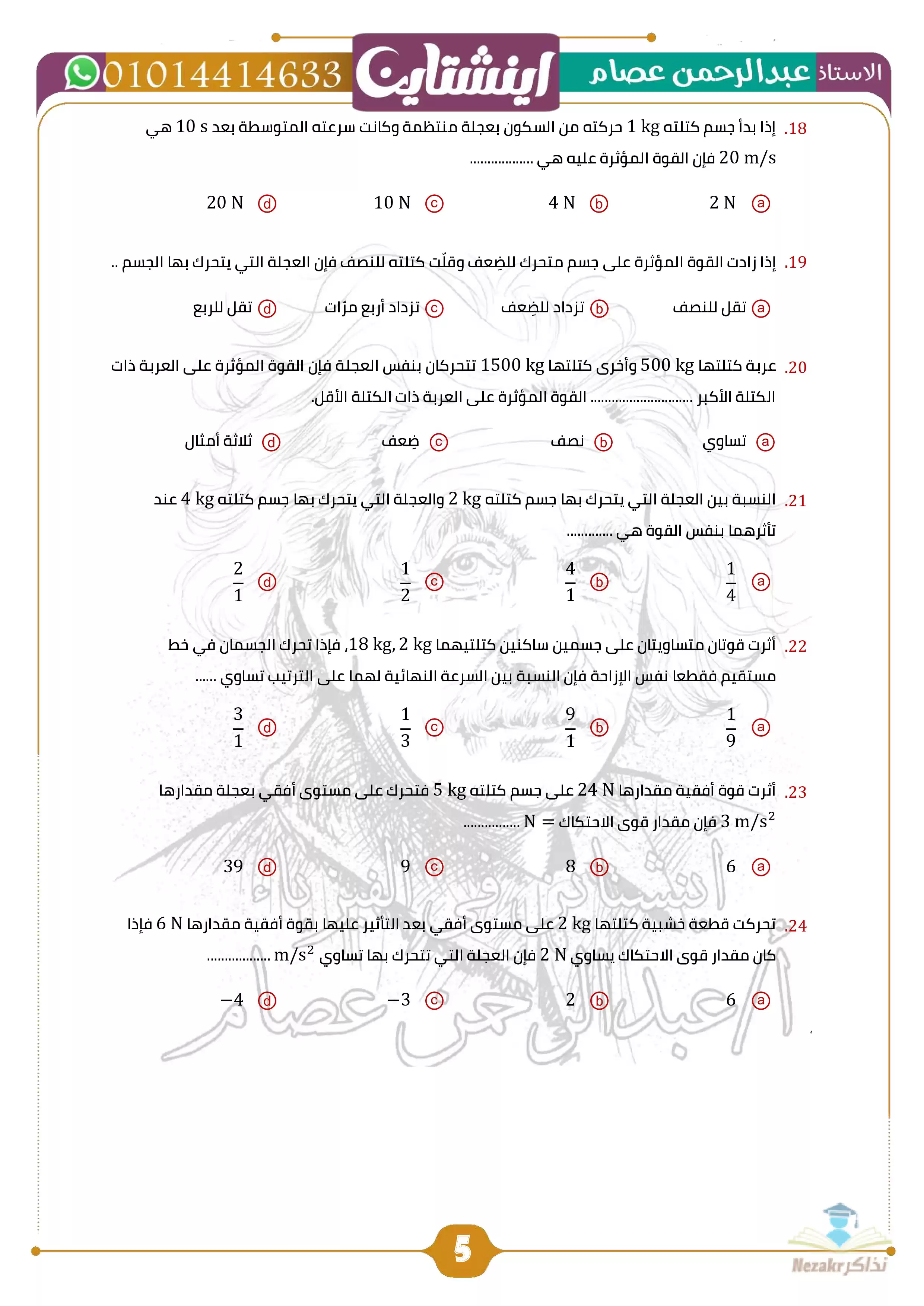 صفحة 5 من 94 صفحة من ملف: مذكرة أينشتاين في الفيزياء جزء التدريبات للصف الأول الثانوي الترم الثاني - Nezakr