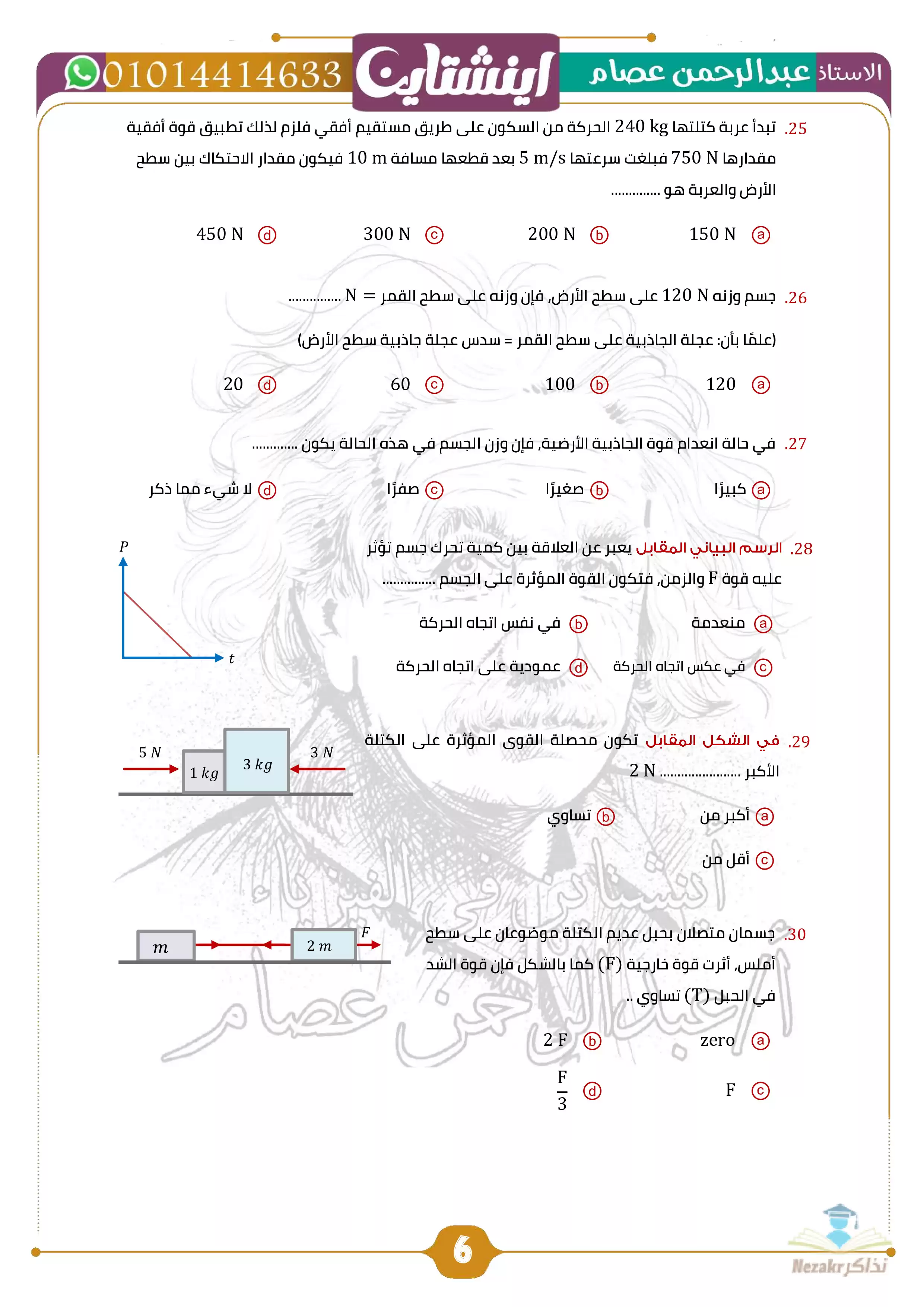 صفحة 6 من 94 صفحة من ملف: مذكرة أينشتاين في الفيزياء جزء التدريبات للصف الأول الثانوي الترم الثاني - Nezakr