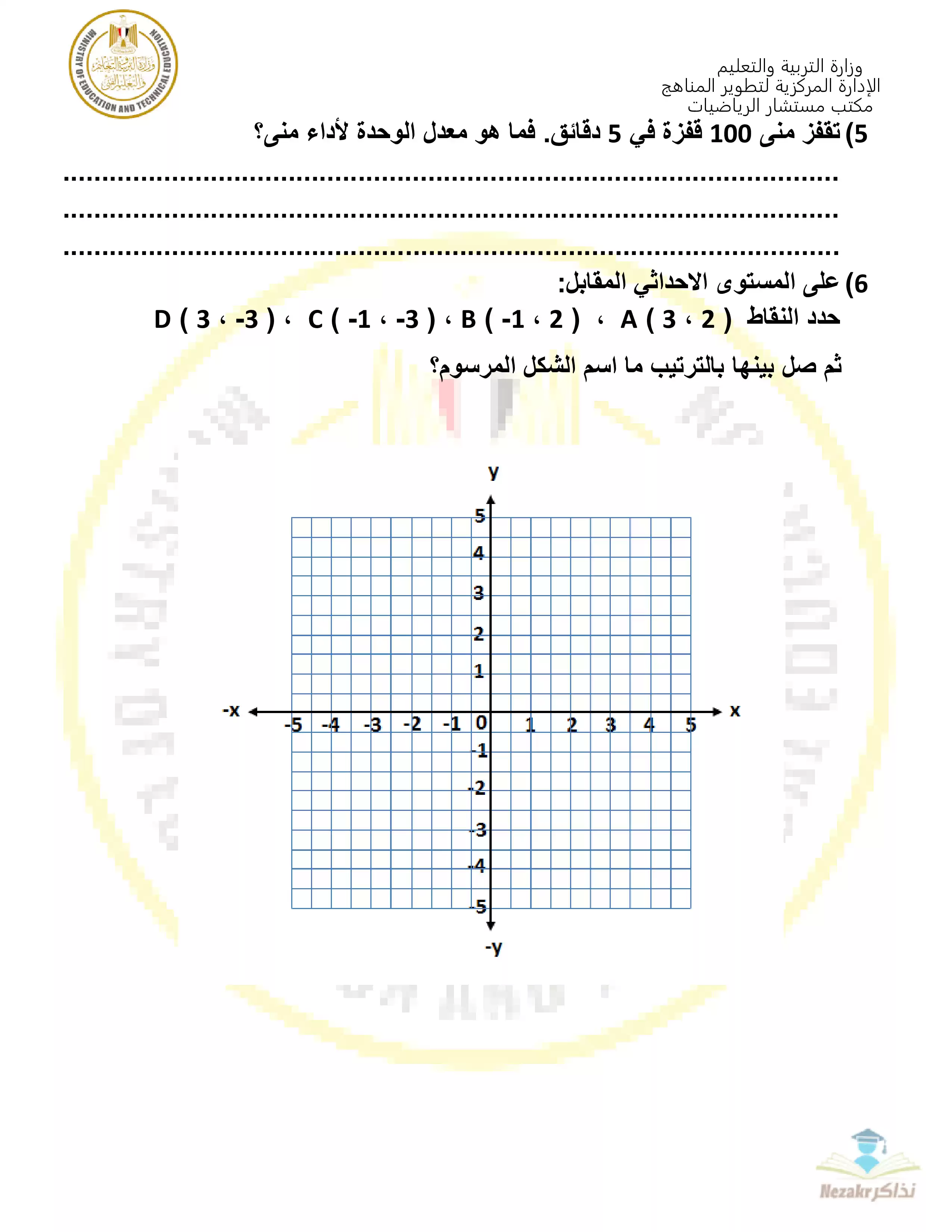 تمارين وزارة التربية والتعليم الاسترشادية في مادة الرياضيات لفئات الدمج للصف السادس الابتدائي الفصل الدراسي الثانى