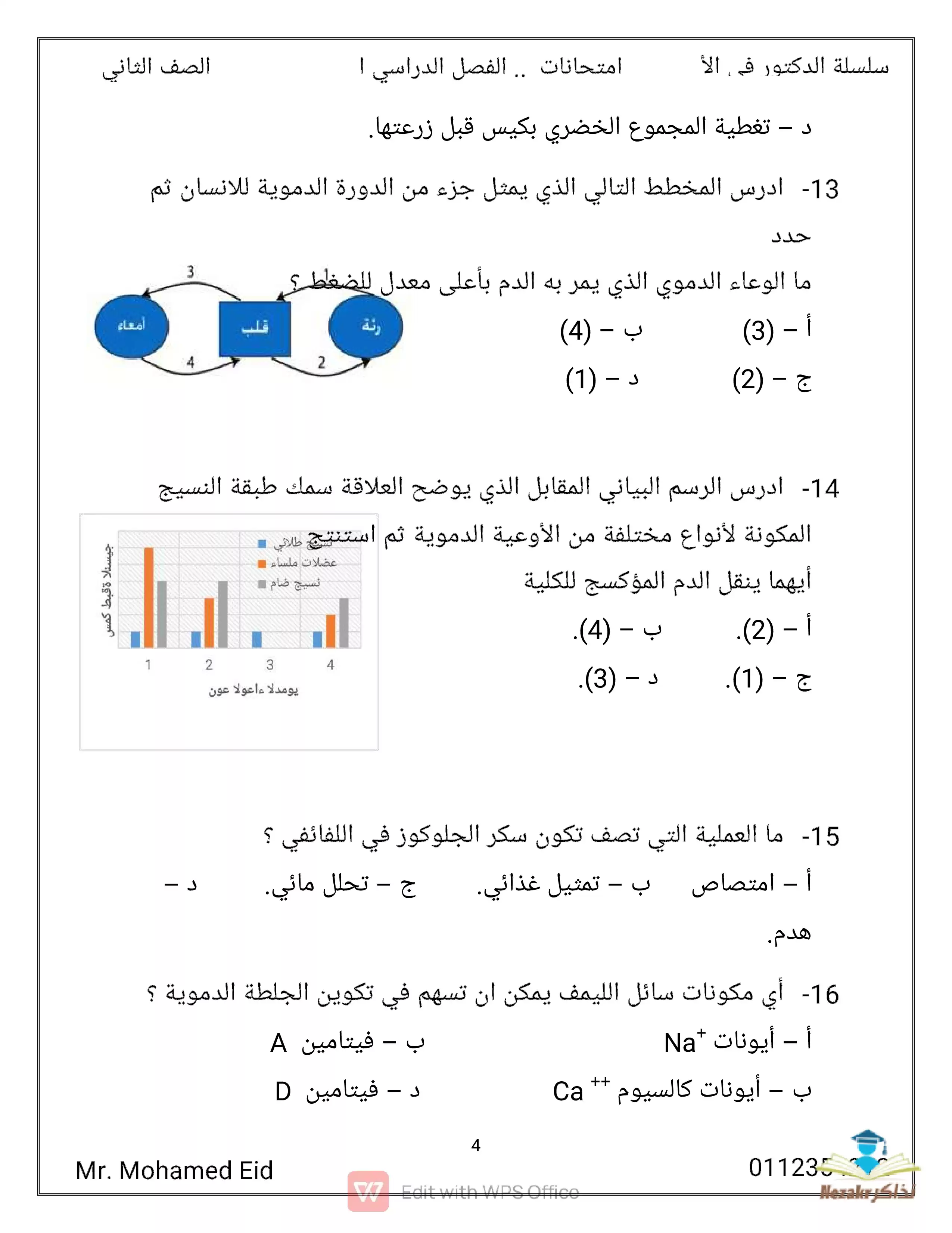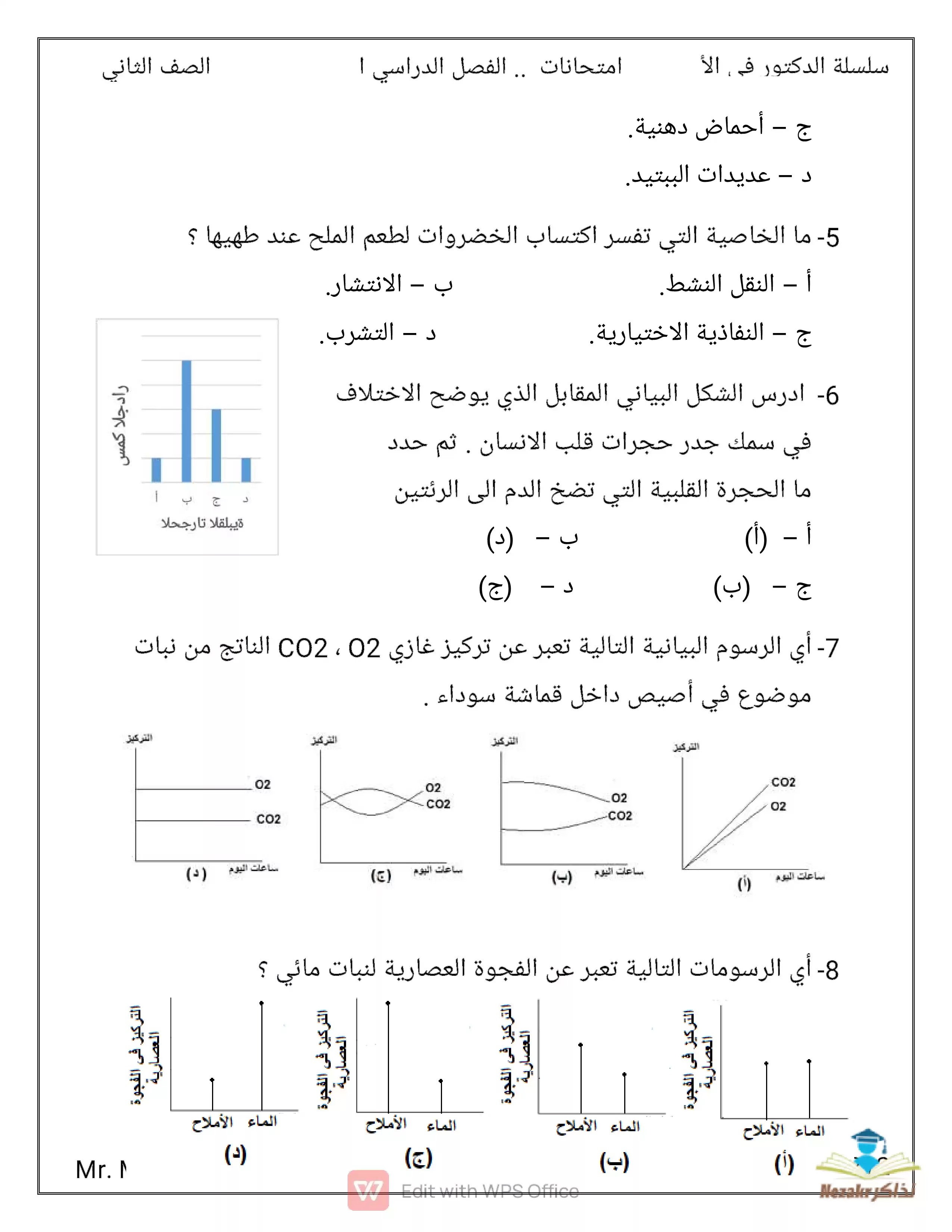 - امتحان الوزارة في مادة الأحياء للصف الثاني الثانوي الترم الثاني
