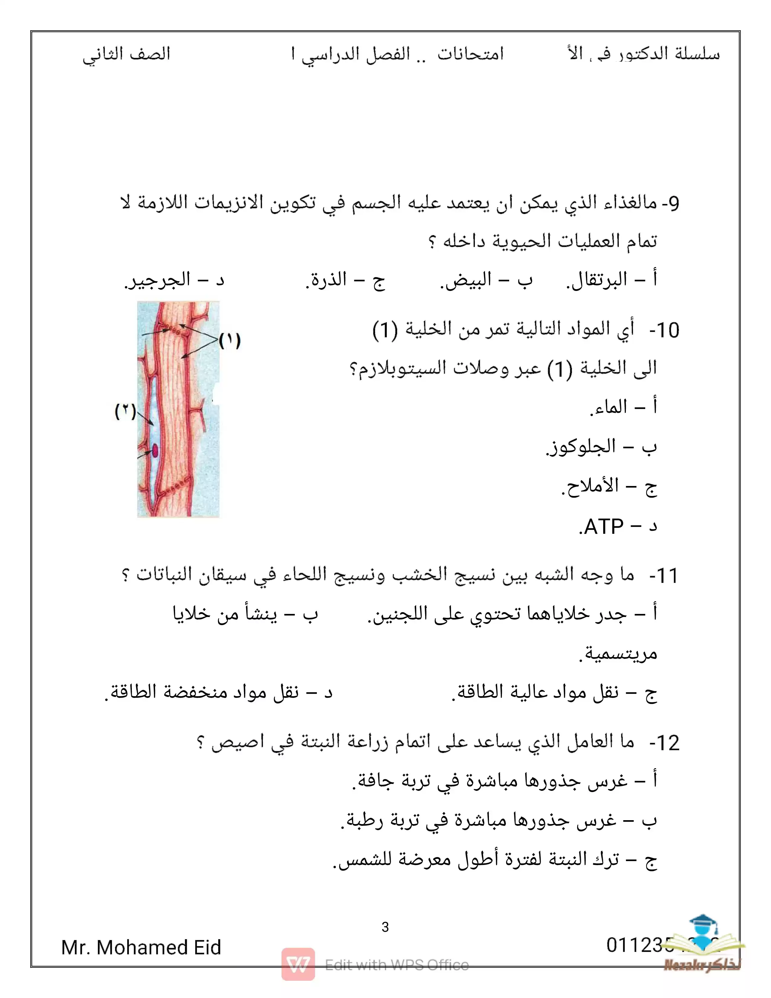 سكرين شوت من الملف: امتحان الوزارة في الأحياء للصف الثاني الثانوي الترم الثاني 2021 - Nezakr