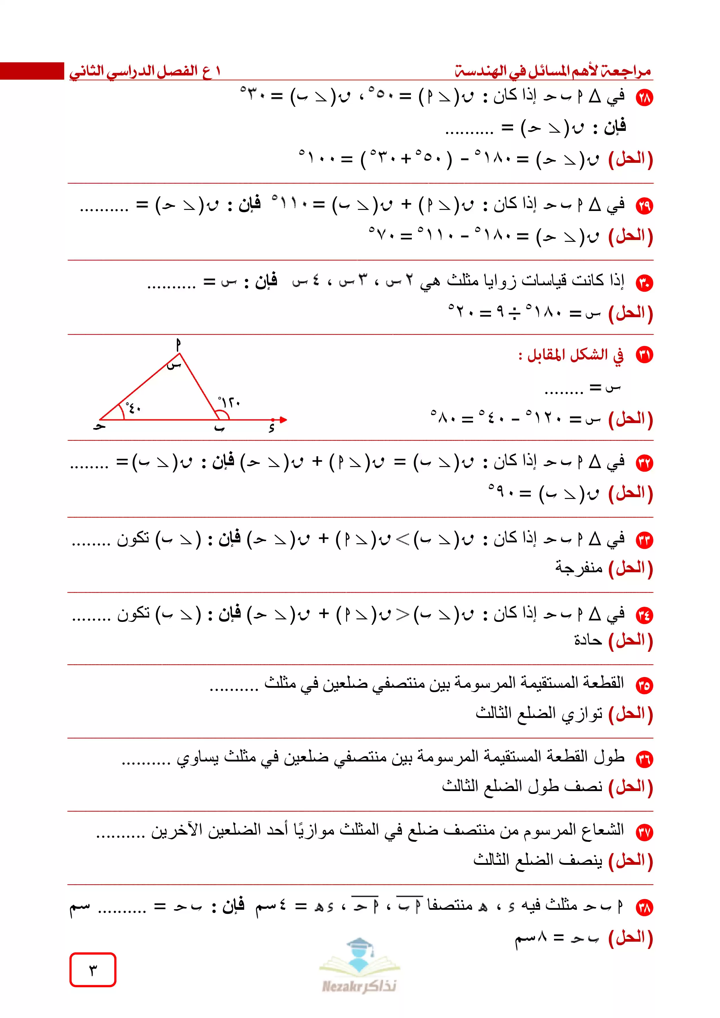 صفحة 3 من 12 صفحة من ملف: مراجعة ليلة الامتحان في الهندسة للصف الأول الإعدادي الفصل الدراسي الثاني - Nezakr