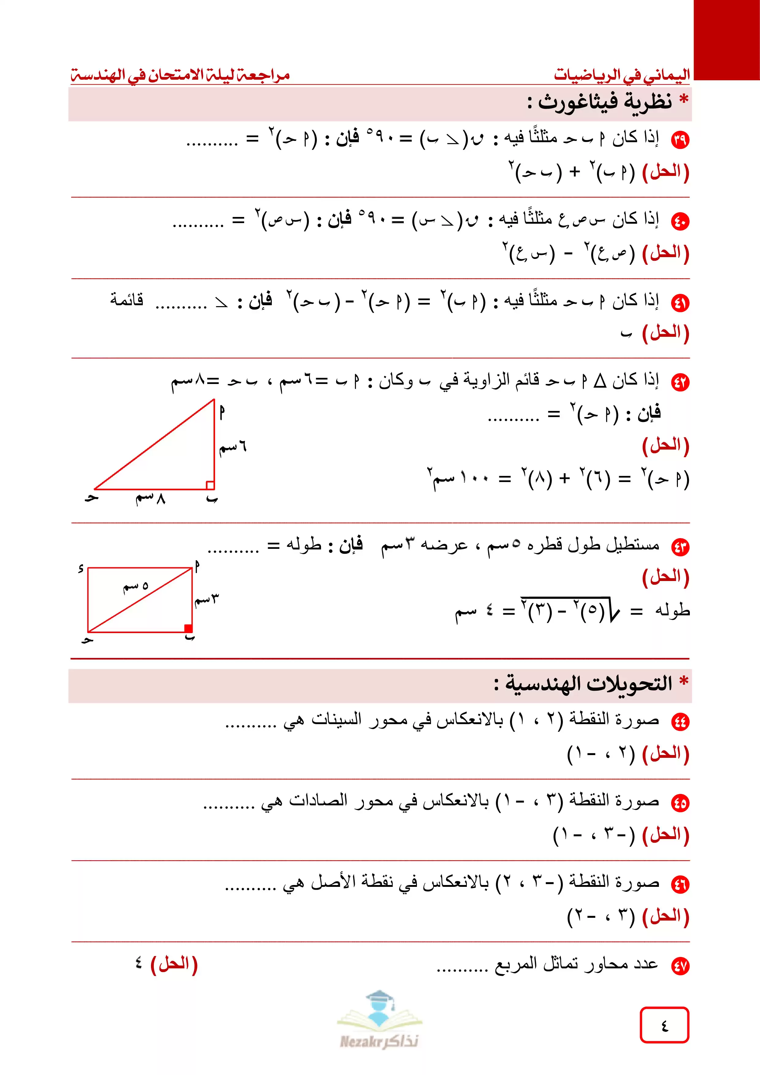 صفحة 4 من 12 صفحة من ملف: مراجعة ليلة الامتحان في الهندسة للصف الأول الإعدادي الفصل الدراسي الثاني - Nezakr