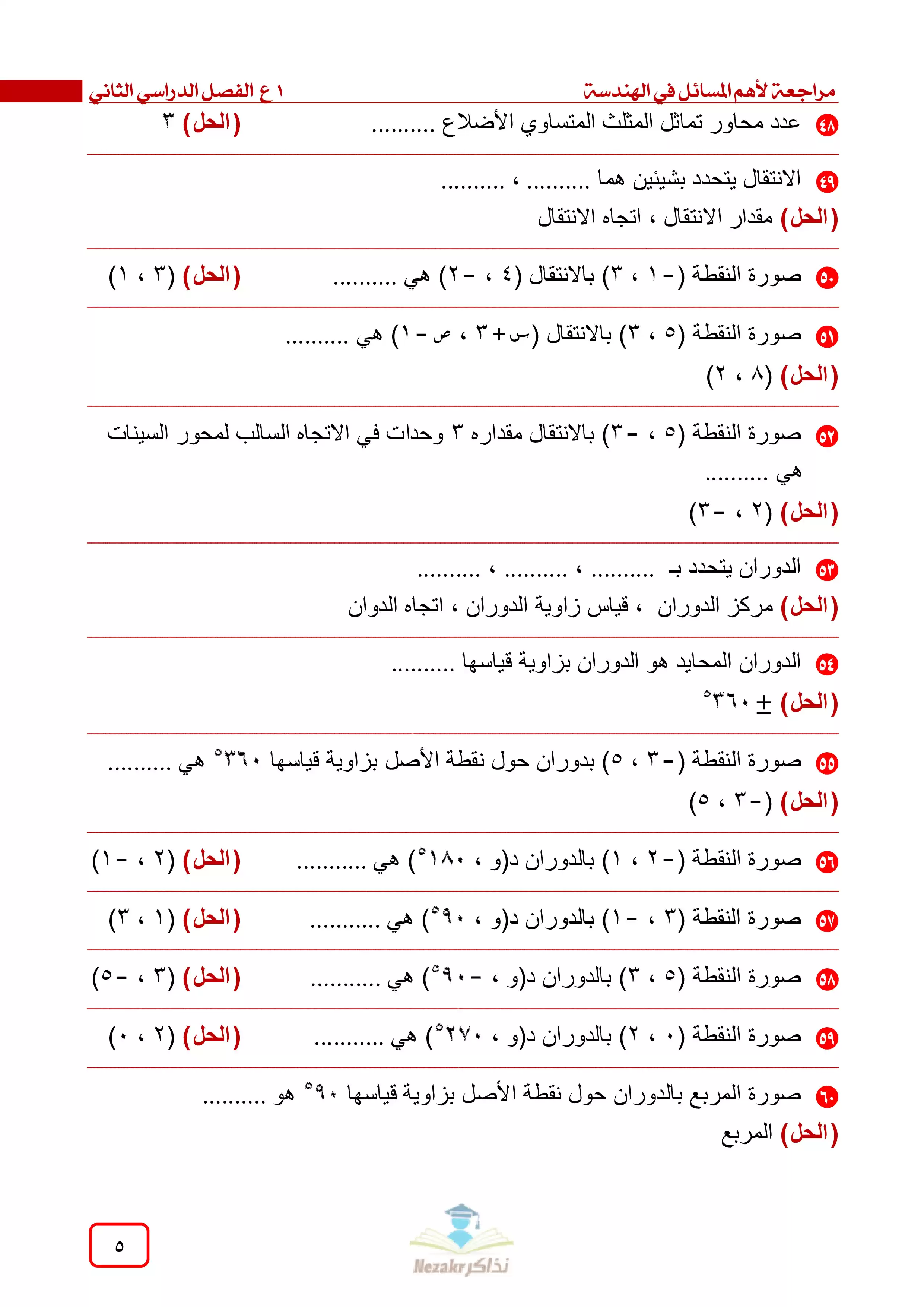صفحة 5 من 12 صفحة من ملف: مراجعة ليلة الامتحان في الهندسة للصف الأول الإعدادي الفصل الدراسي الثاني - Nezakr