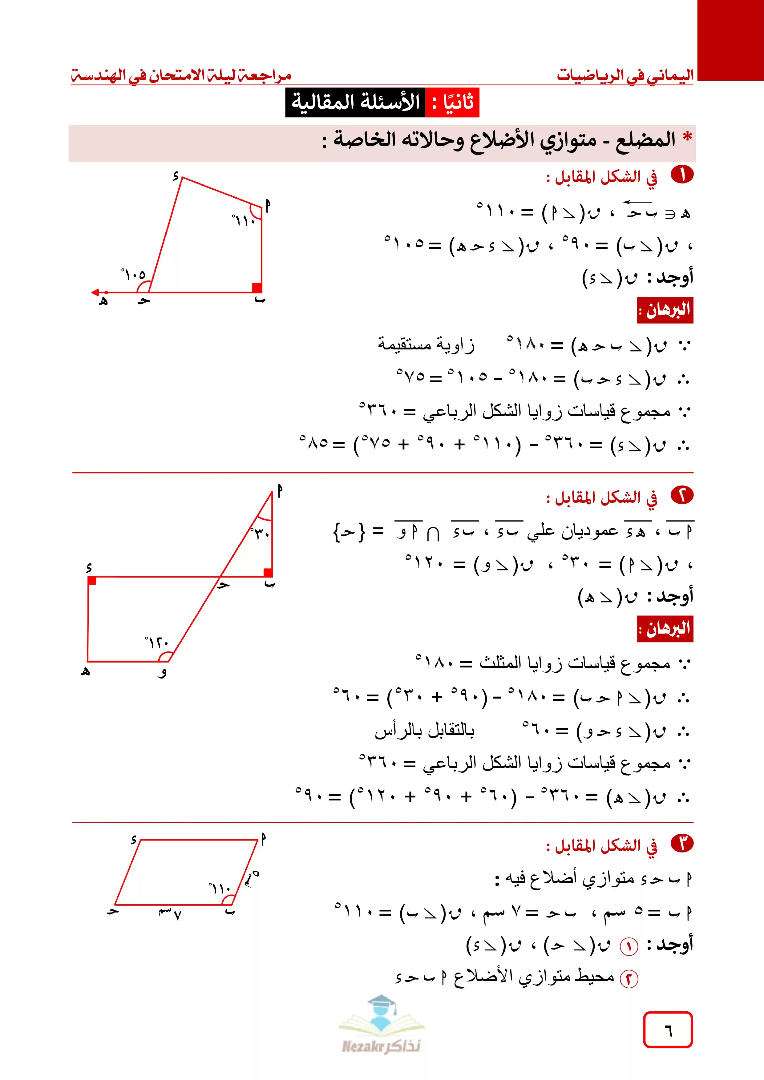 صفحة 6 من 12 صفحة من ملف: مراجعة ليلة الامتحان في الهندسة للصف الأول الإعدادي الفصل الدراسي الثاني - Nezakr